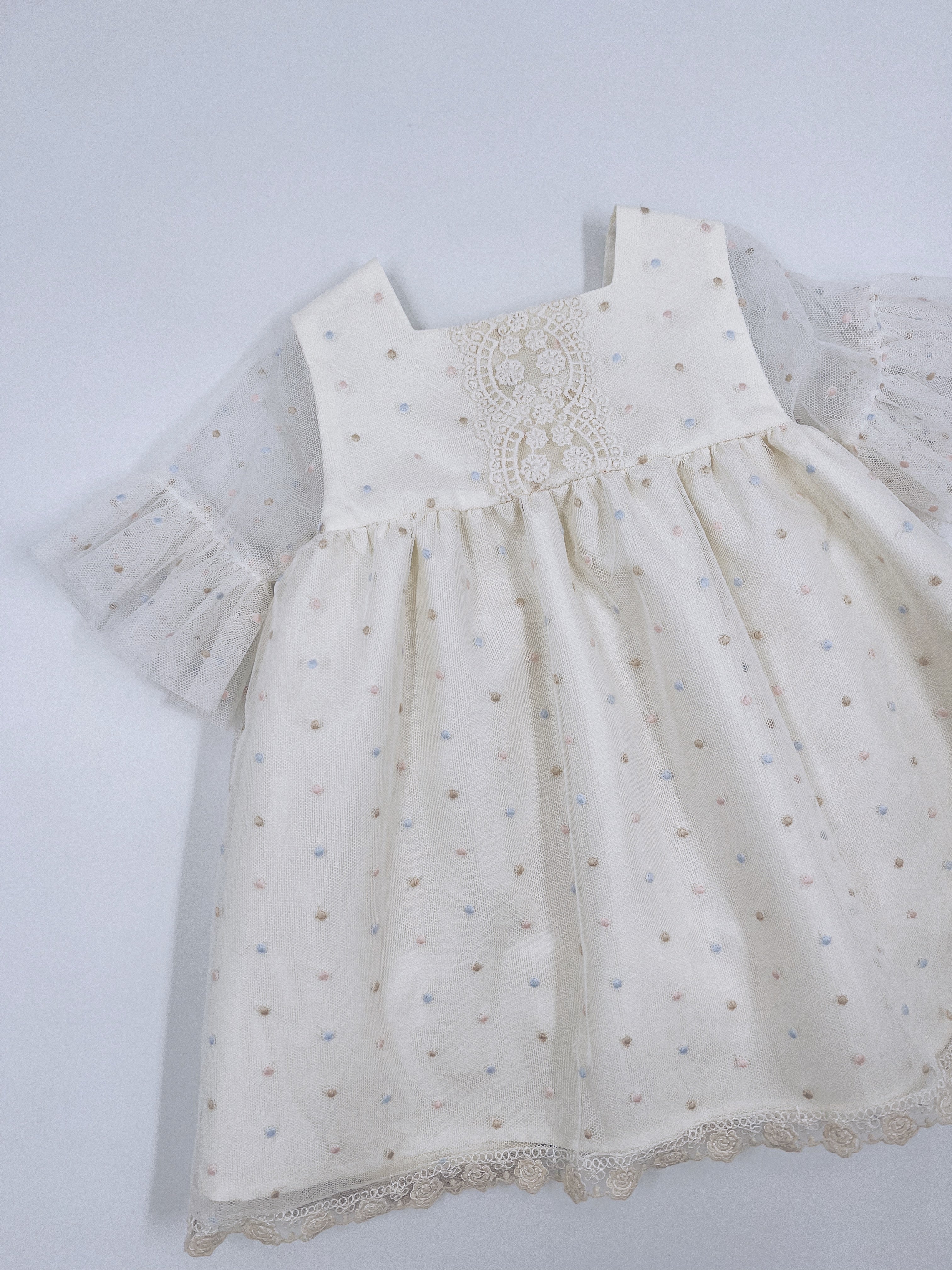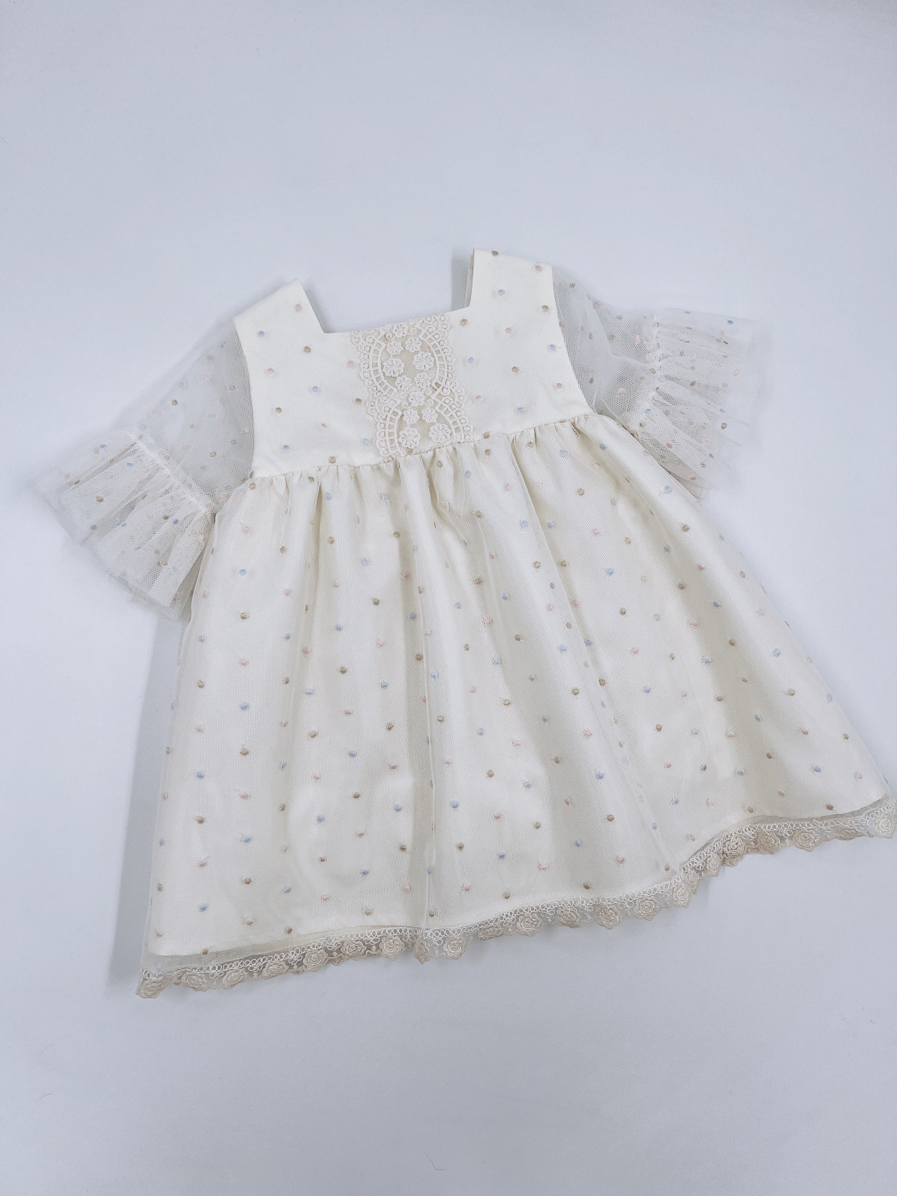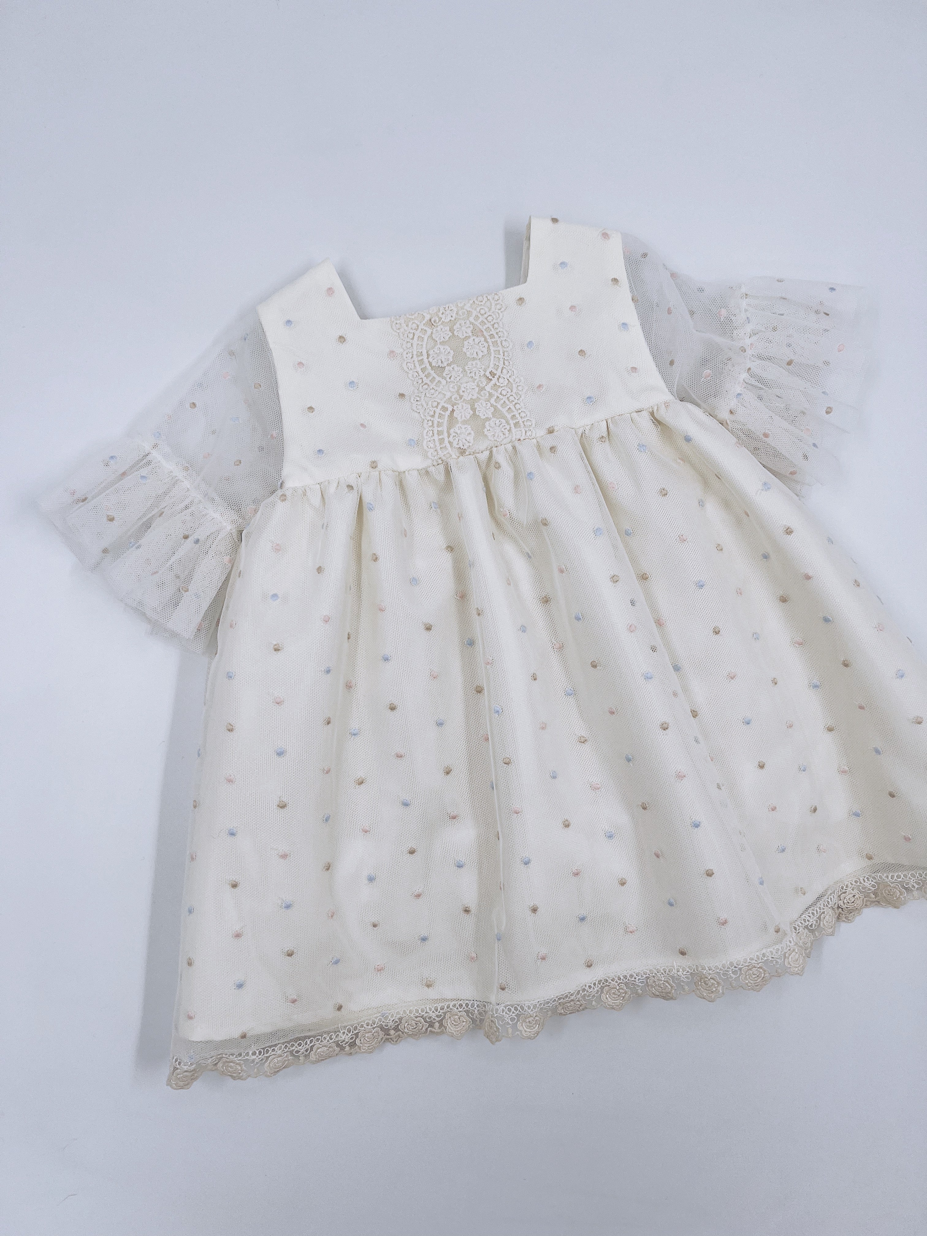 Beautiful Ivory dress with lace and frill details