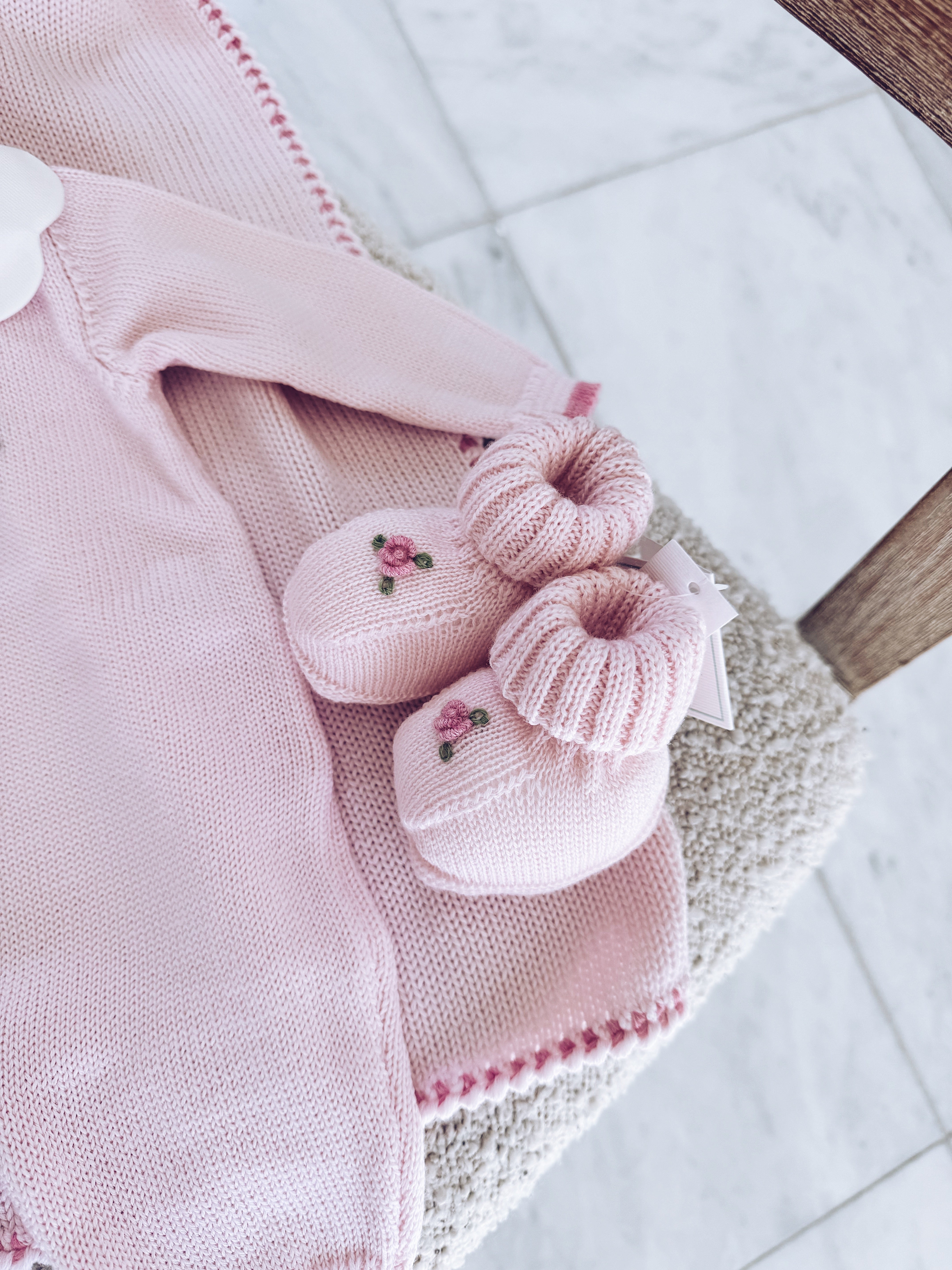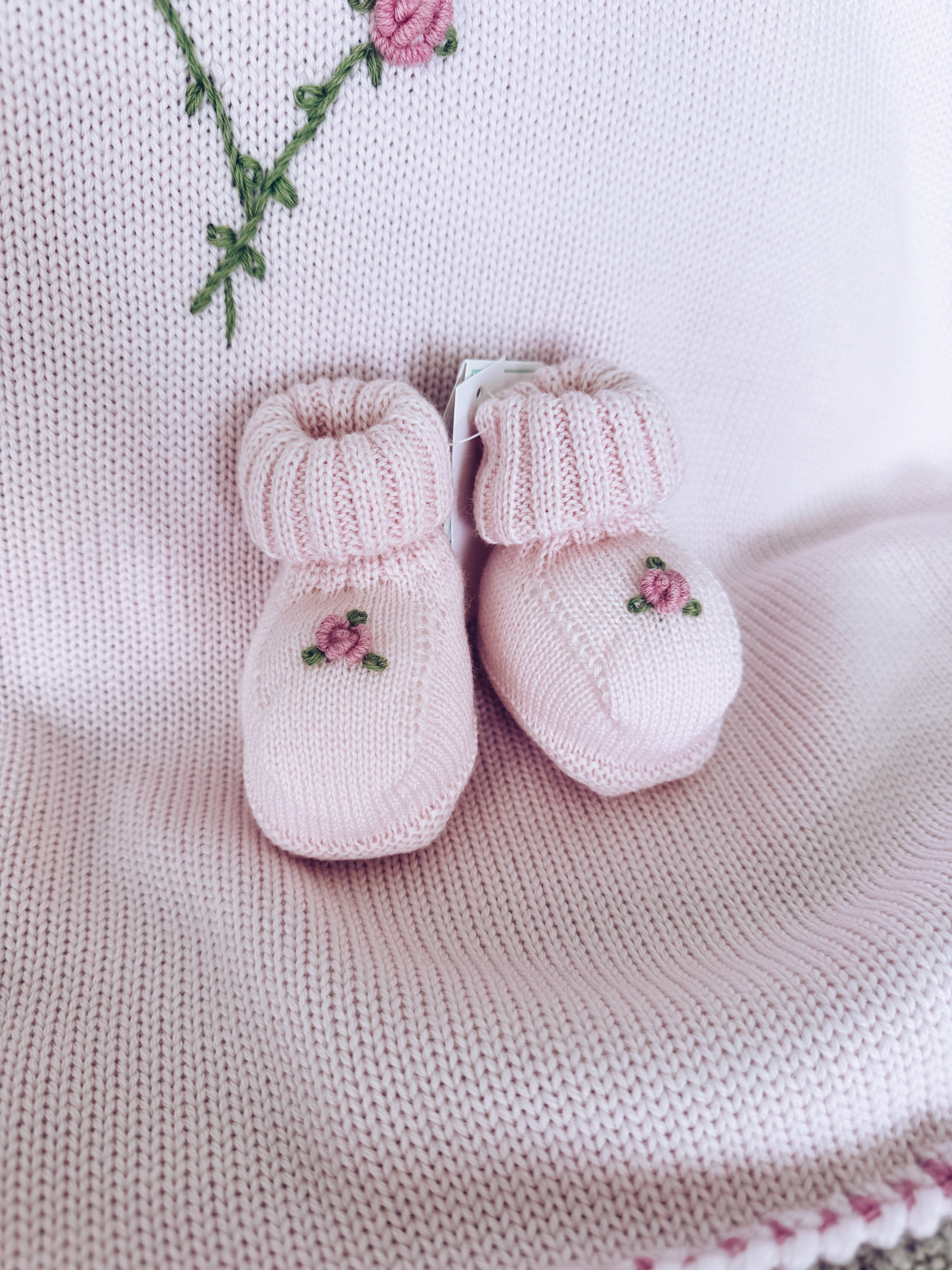 Beautiful knitted Merino Wool Baby Booties with Hand embroidery floral details.