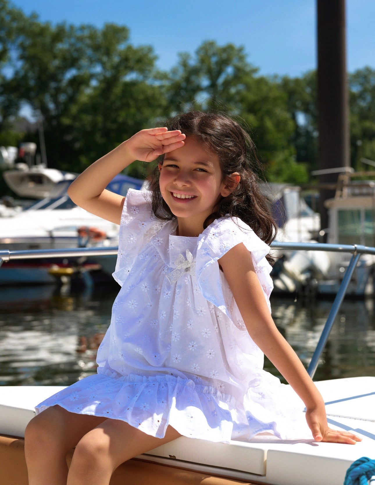Beautiful White Dress with bow and frill details