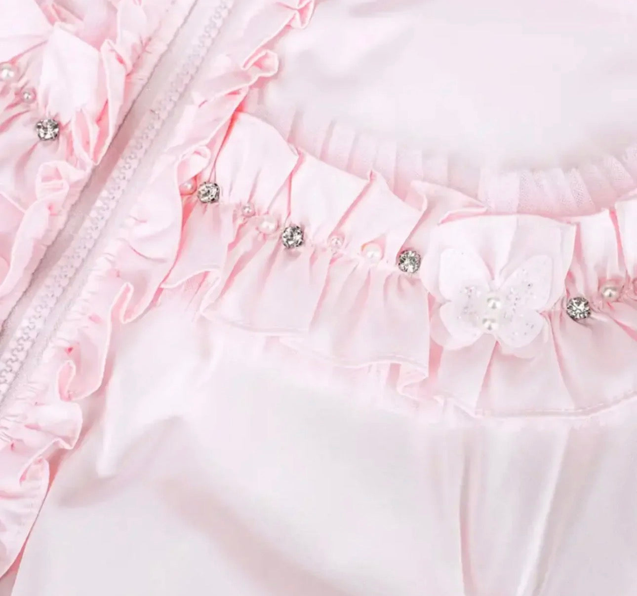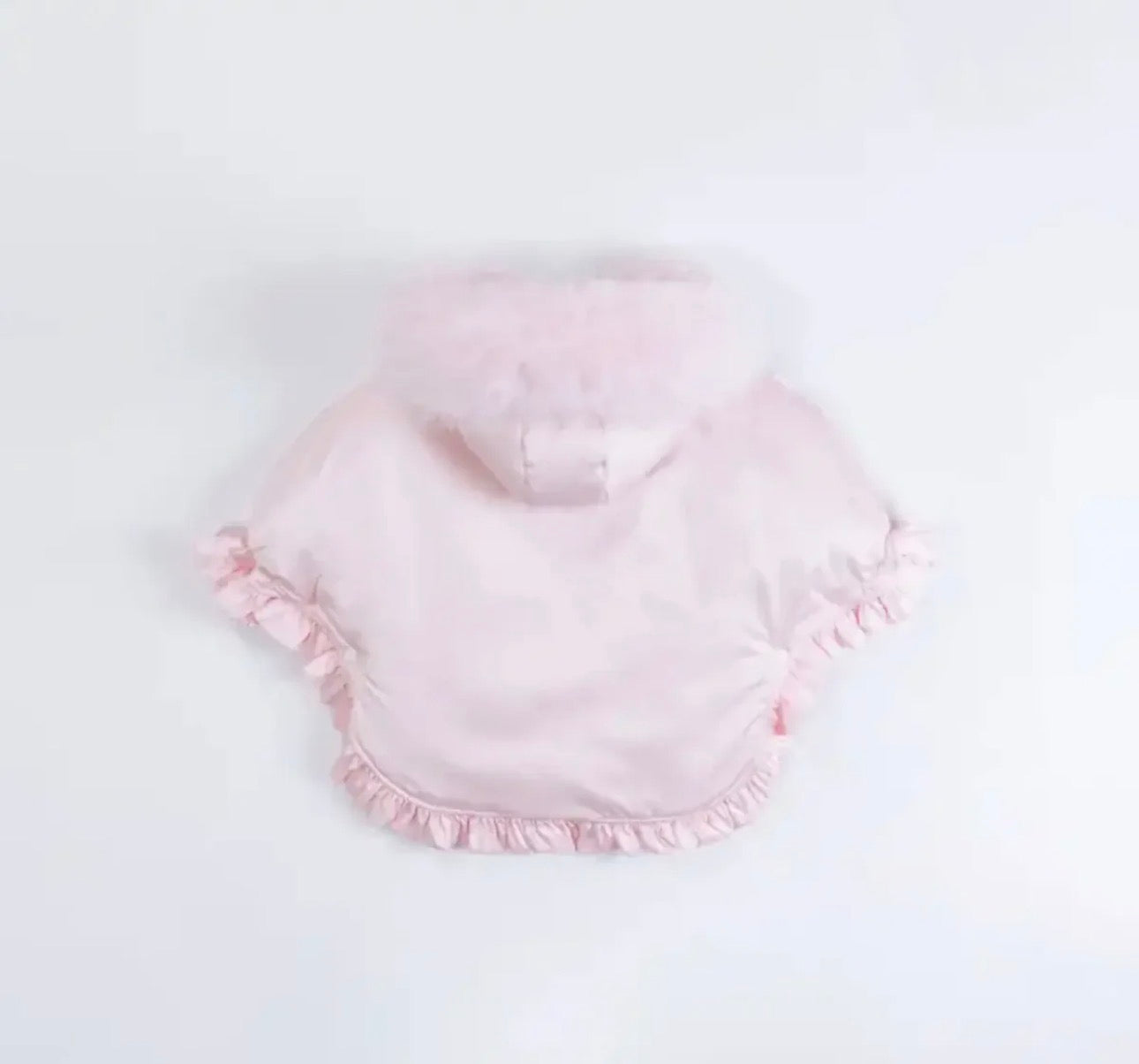 Luxury Baby Girl Puffer Cape with Oversized Faux Fur Hood, Pearl & Diamanté Tulle Chest Ruffles, Satin Bows – Warm Winter Coat