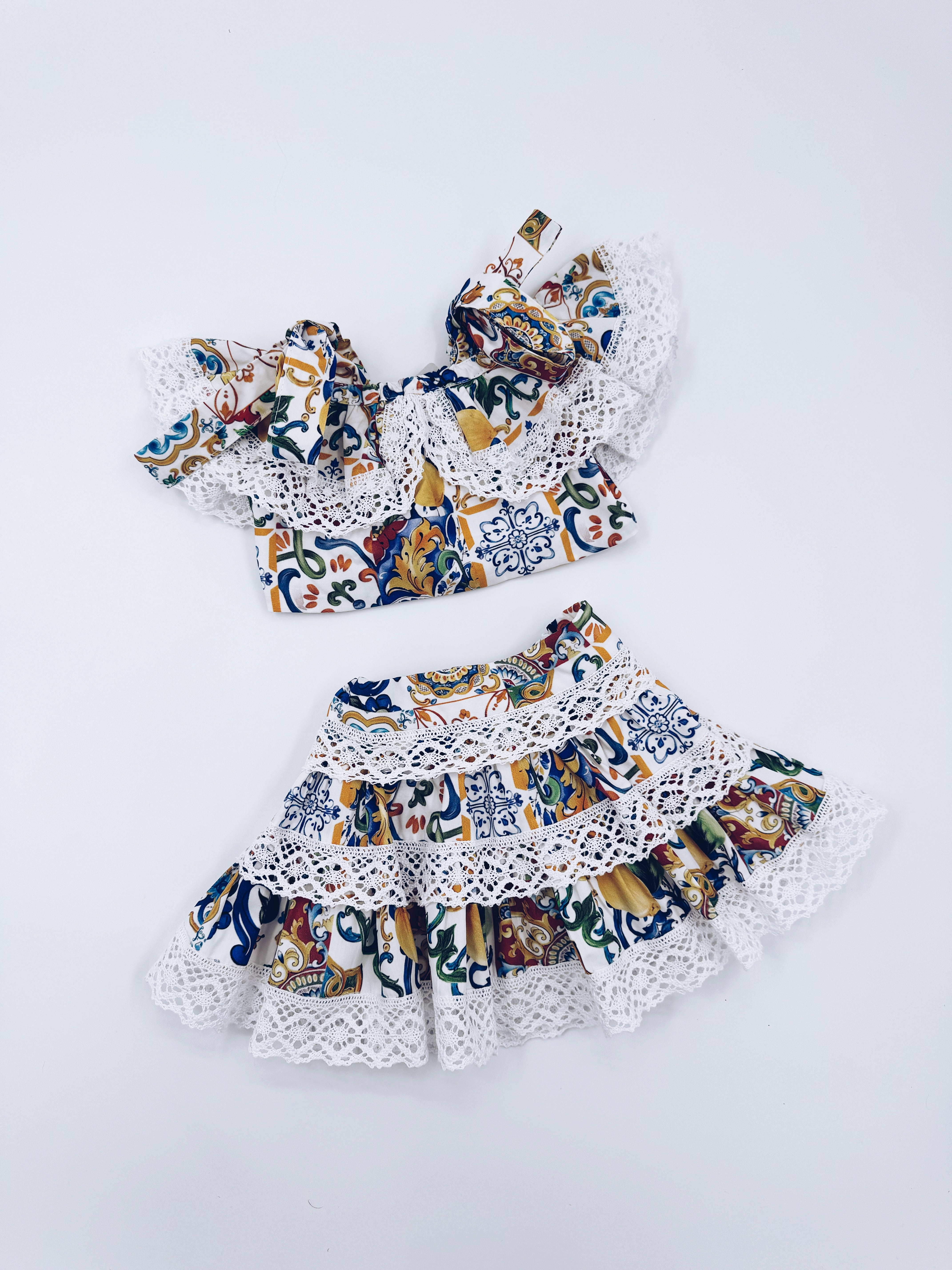 MI LOVES Beautiful Girl Azuejo Top and Skirt 2 piece set.