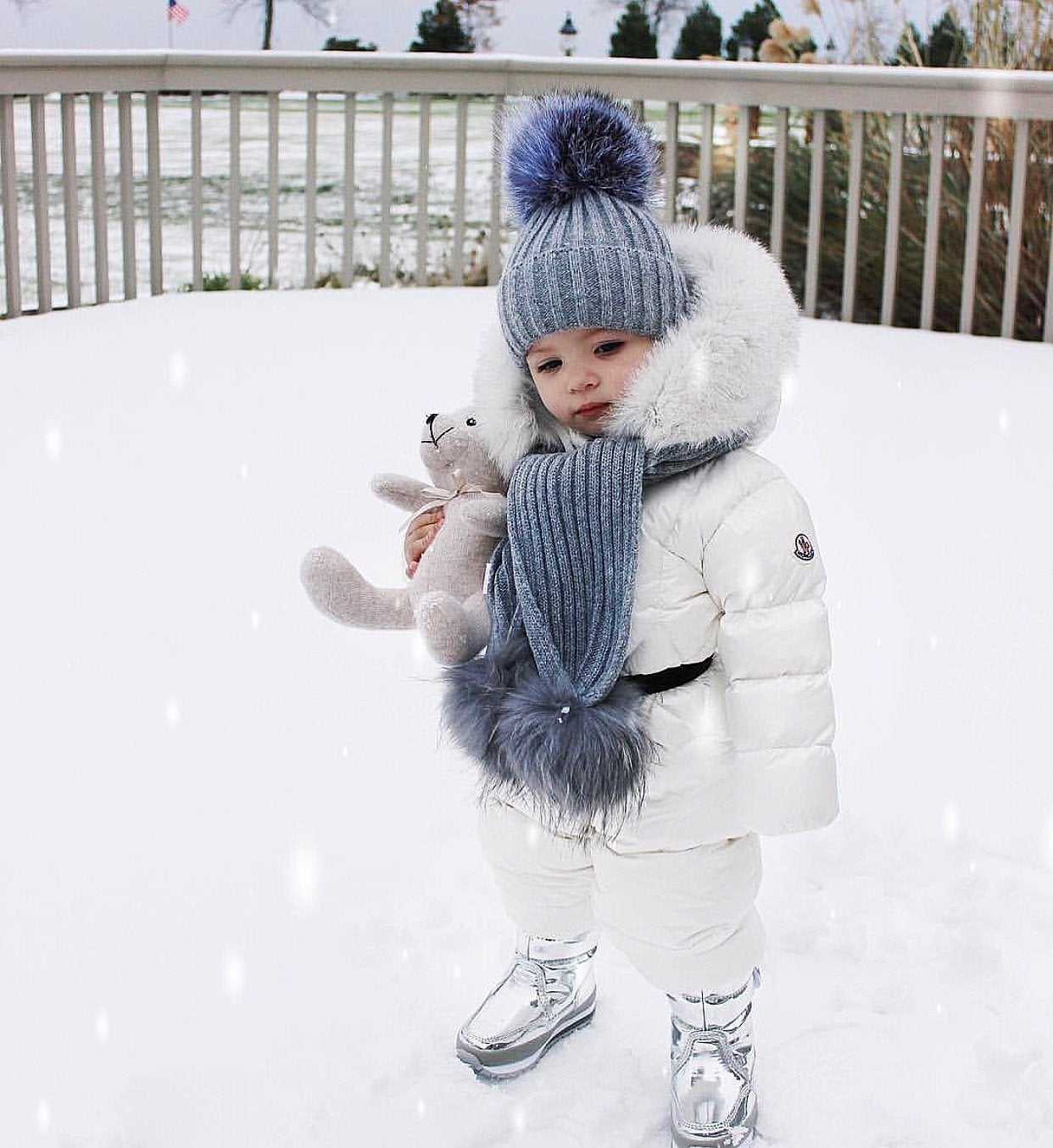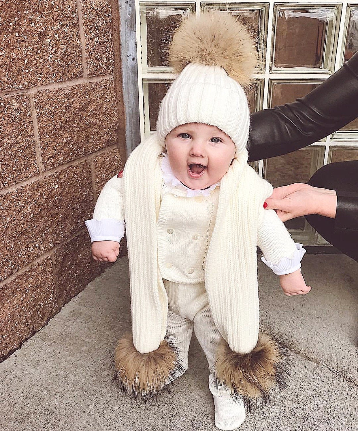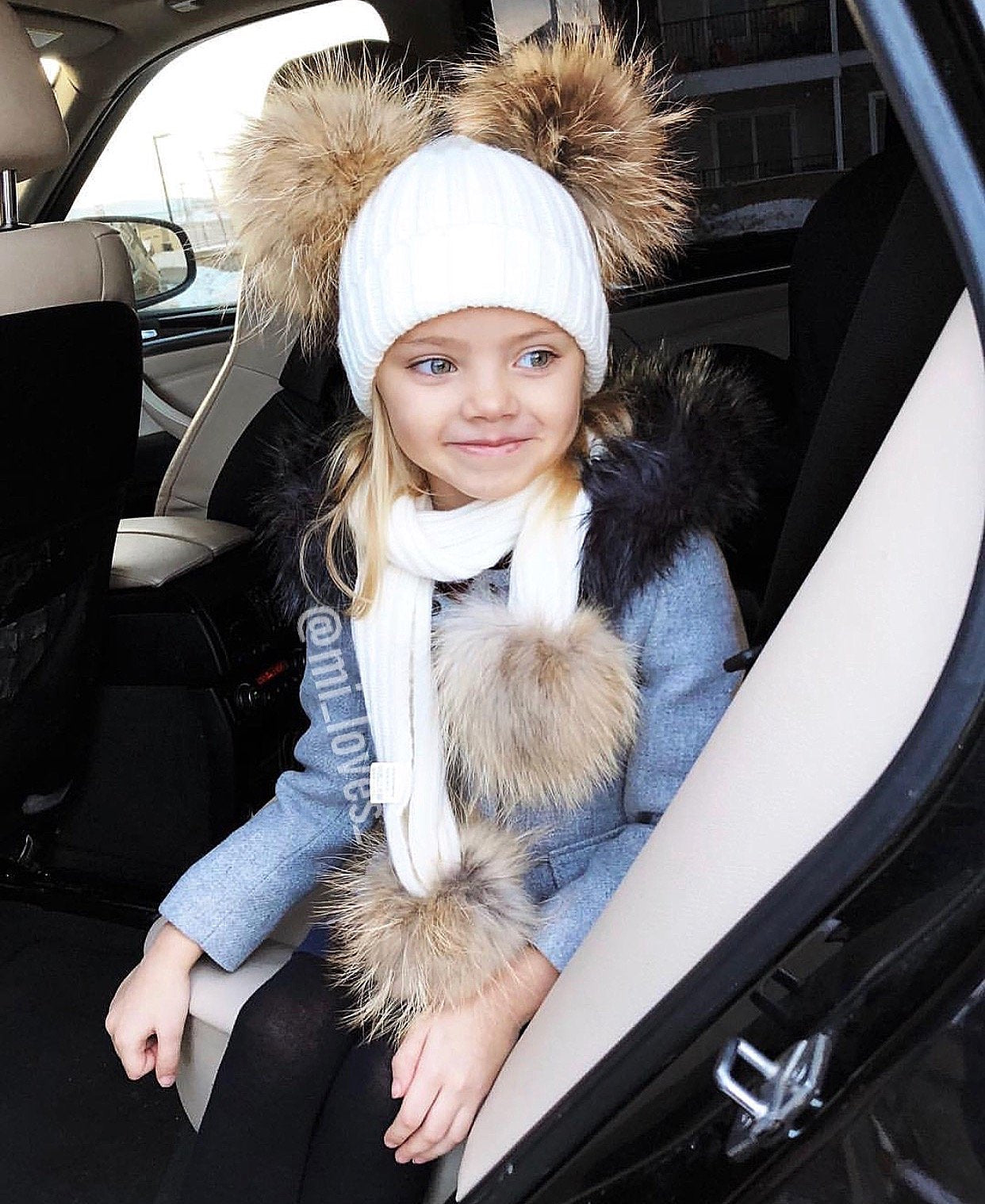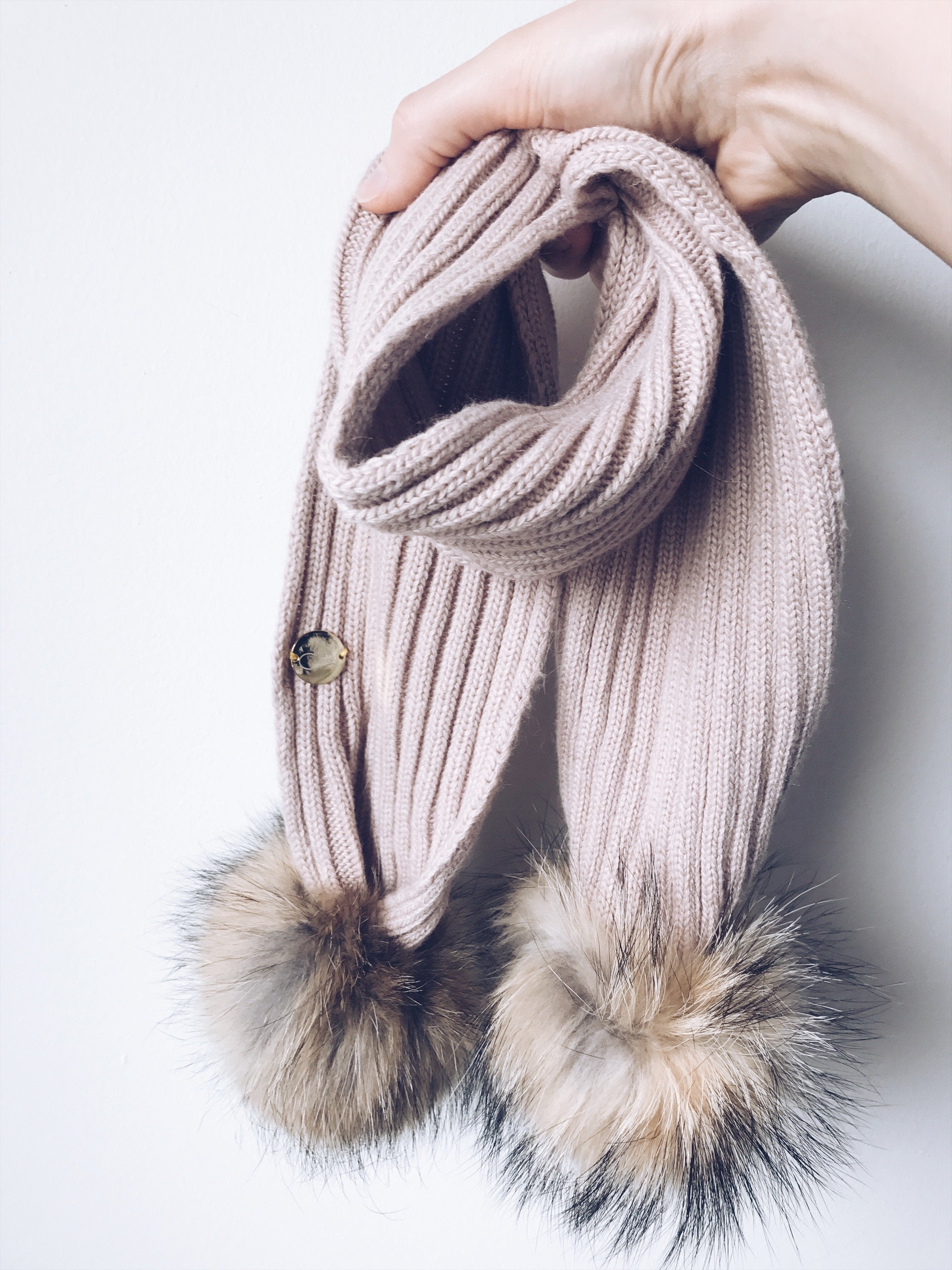 MILOVES SIGNATURE CASHMERE COLLECTION Scarf with 2 Racoon fur pom-poms!!Fits from 0-5 years old kids!!