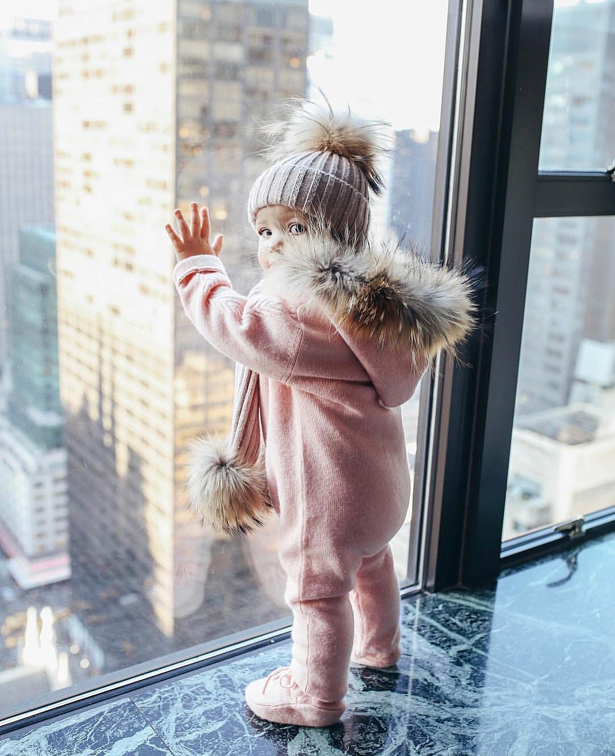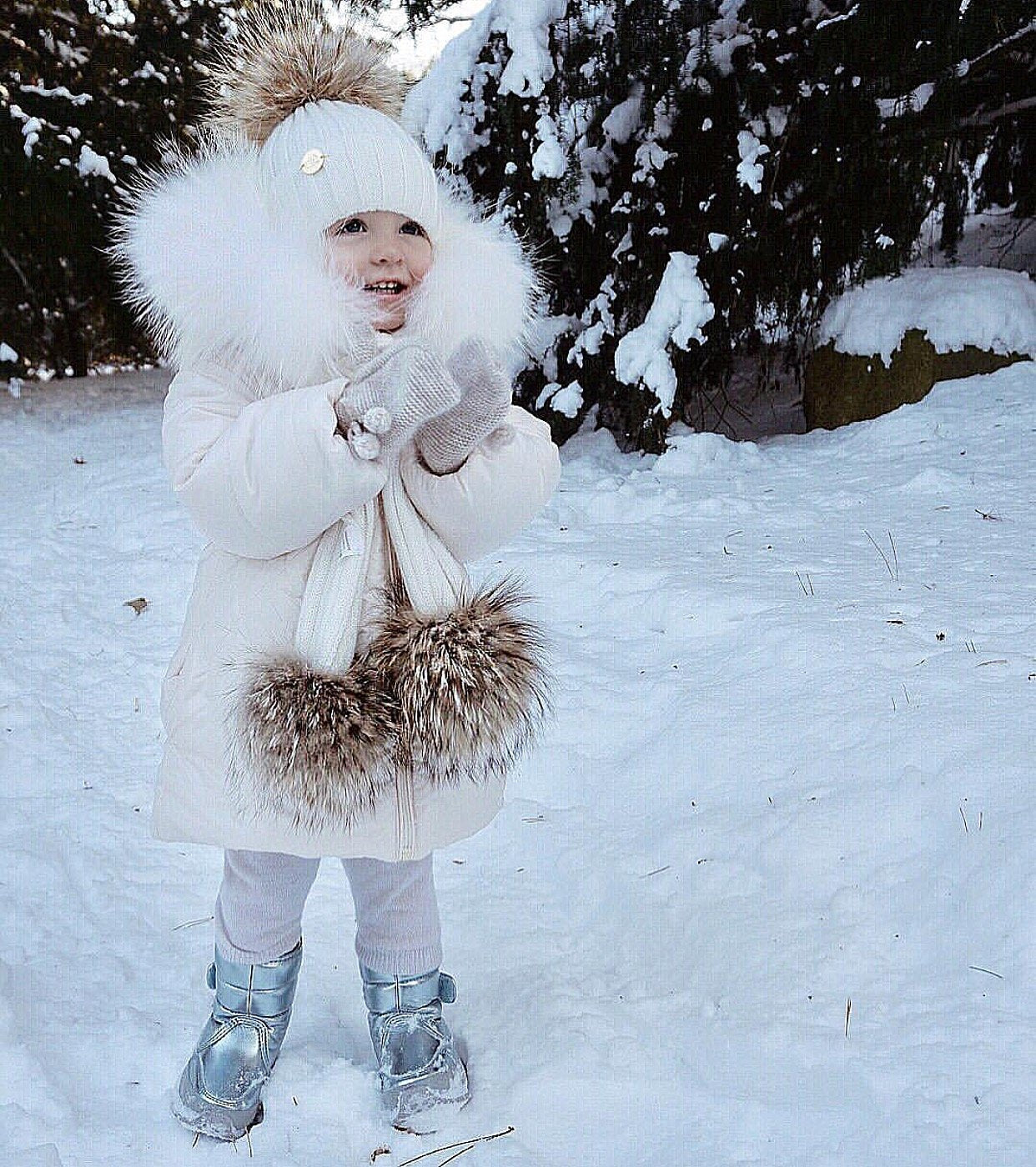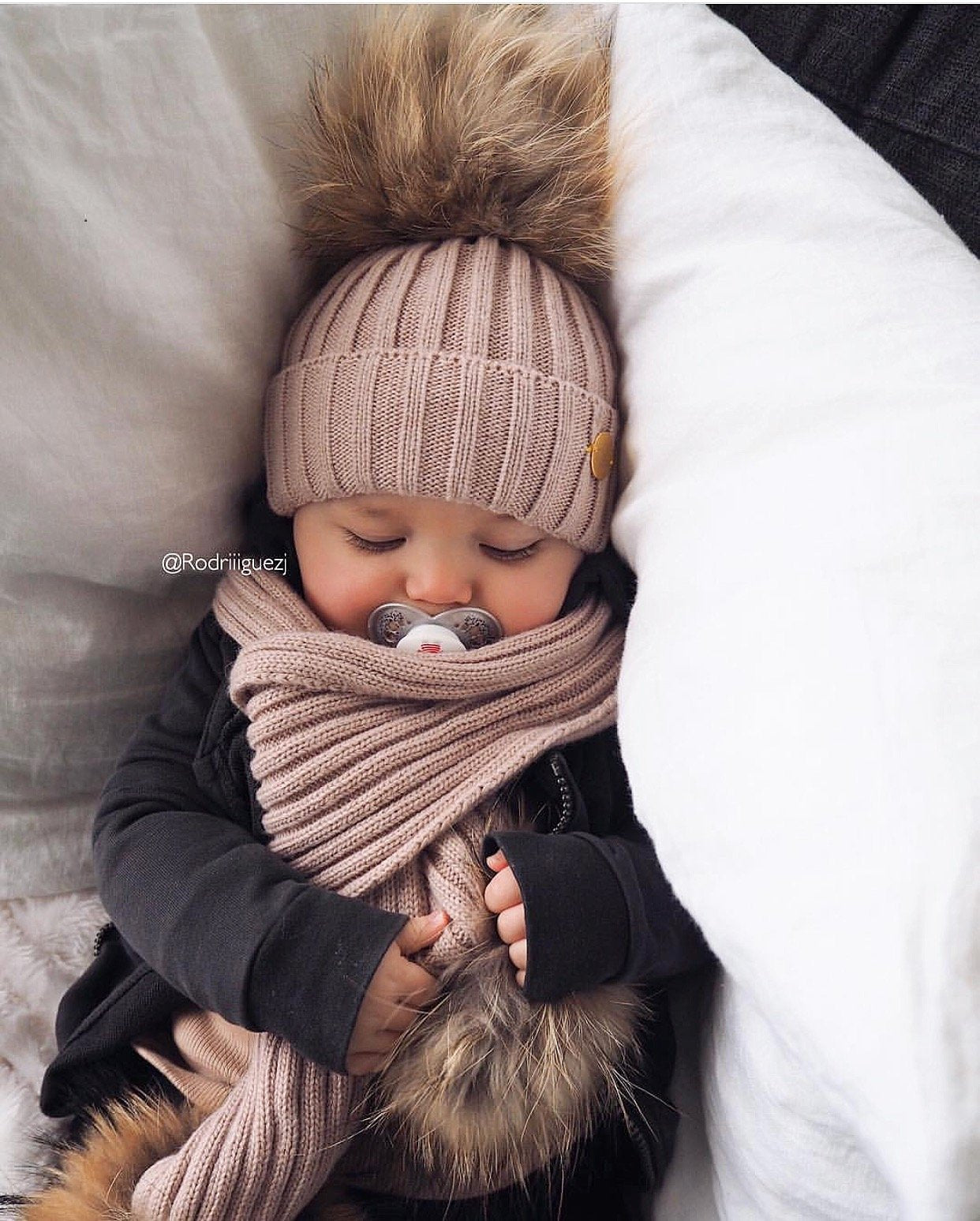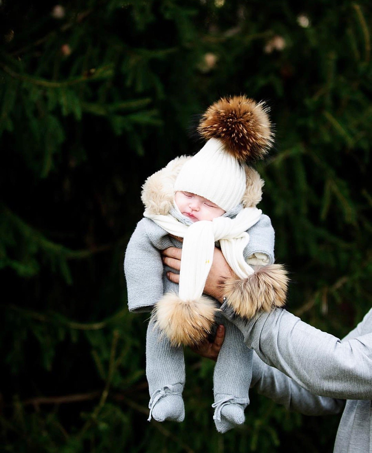 MILOVES SIGNATURE CASHMERE COLLECTION Scarf with 2 Racoon fur pom-poms!!Fits from 0-5 years old kids!!