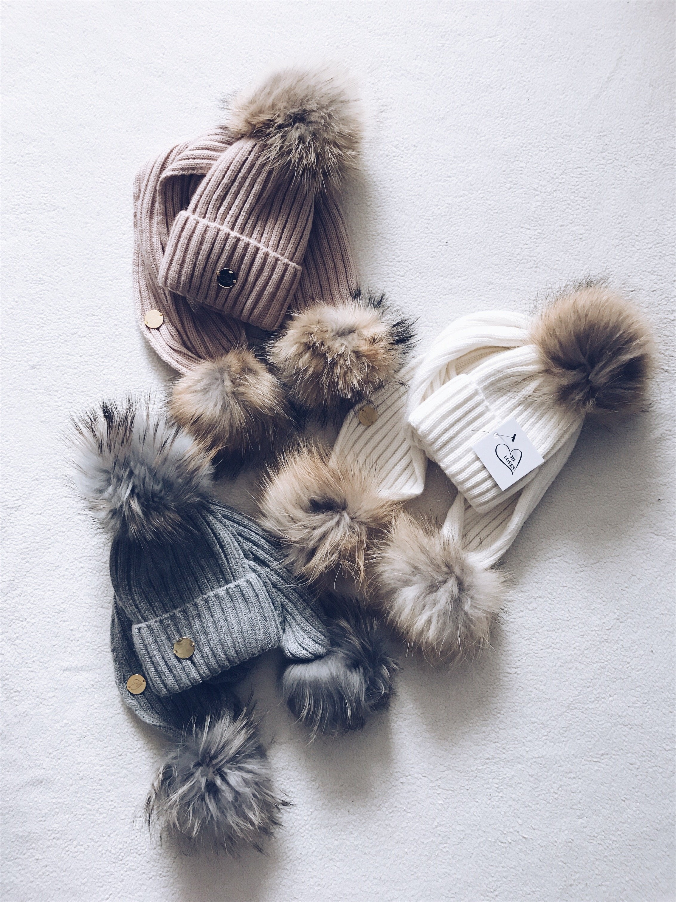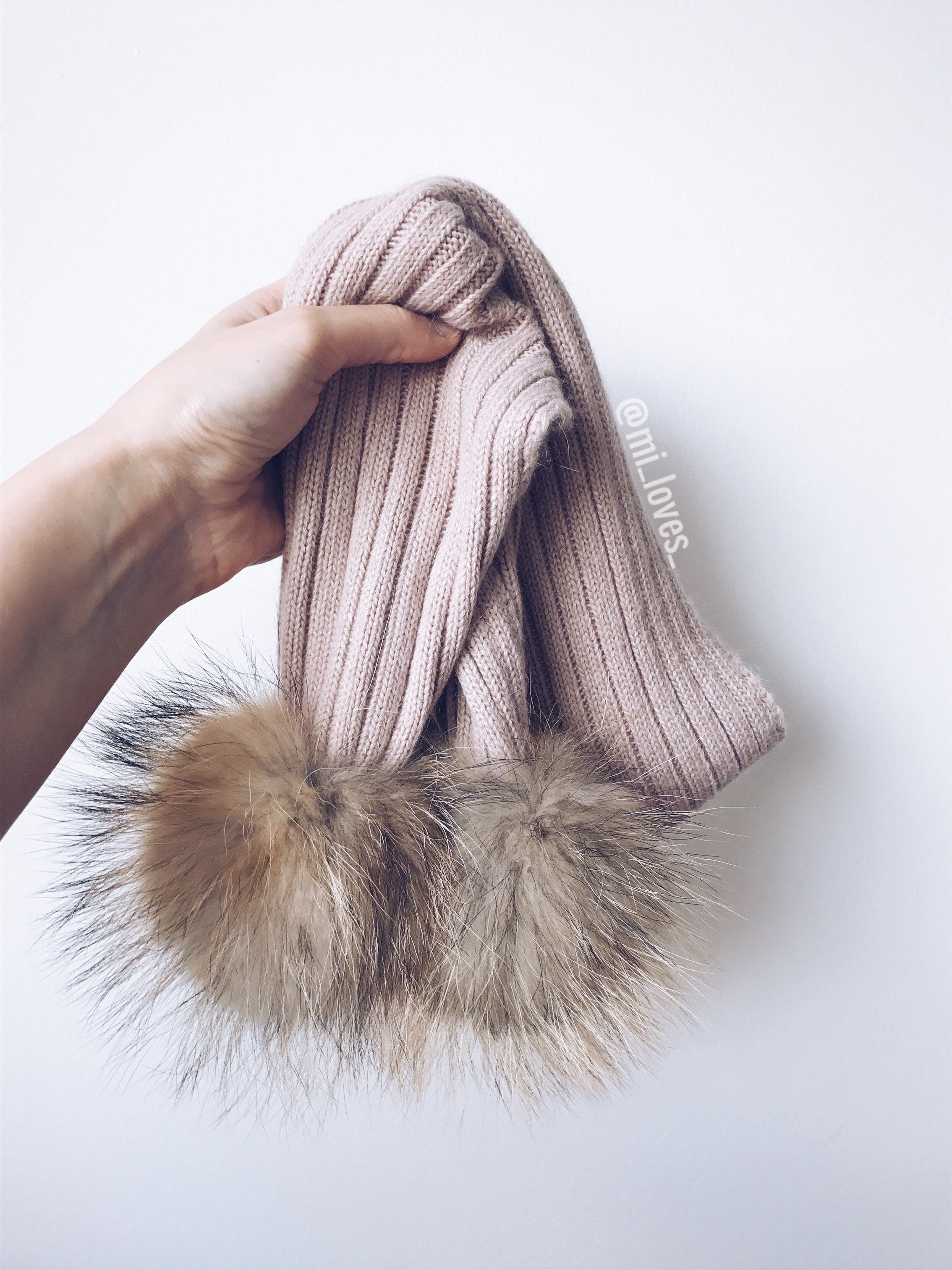 30% Cashmere ,70% Acrylic,Racoon Fur pompoms!!