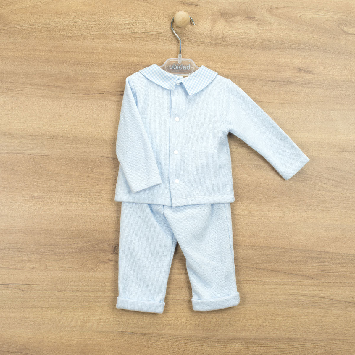 Baby Blue Boys Trousers set with collar details.