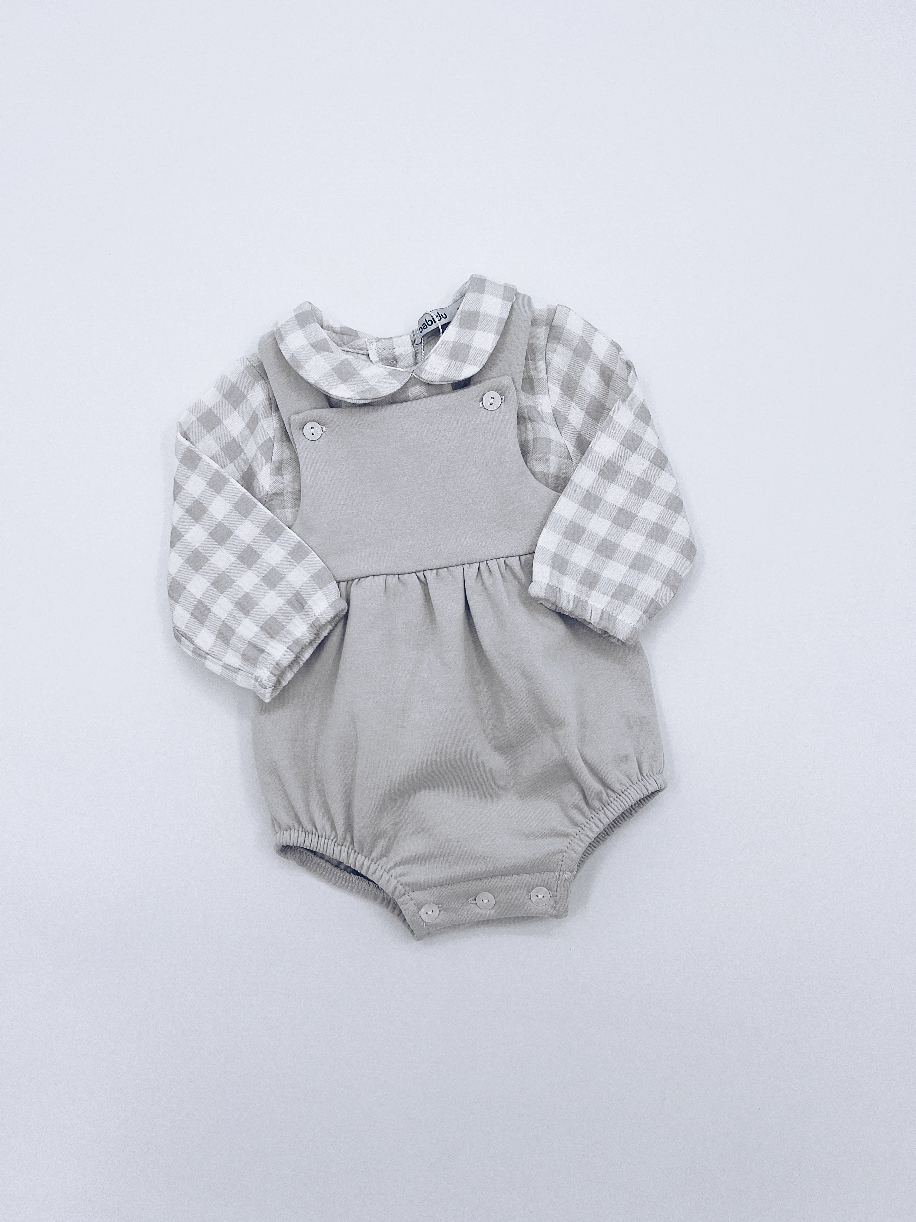 Cute White/grey Cotton Dungaree 2 piece set