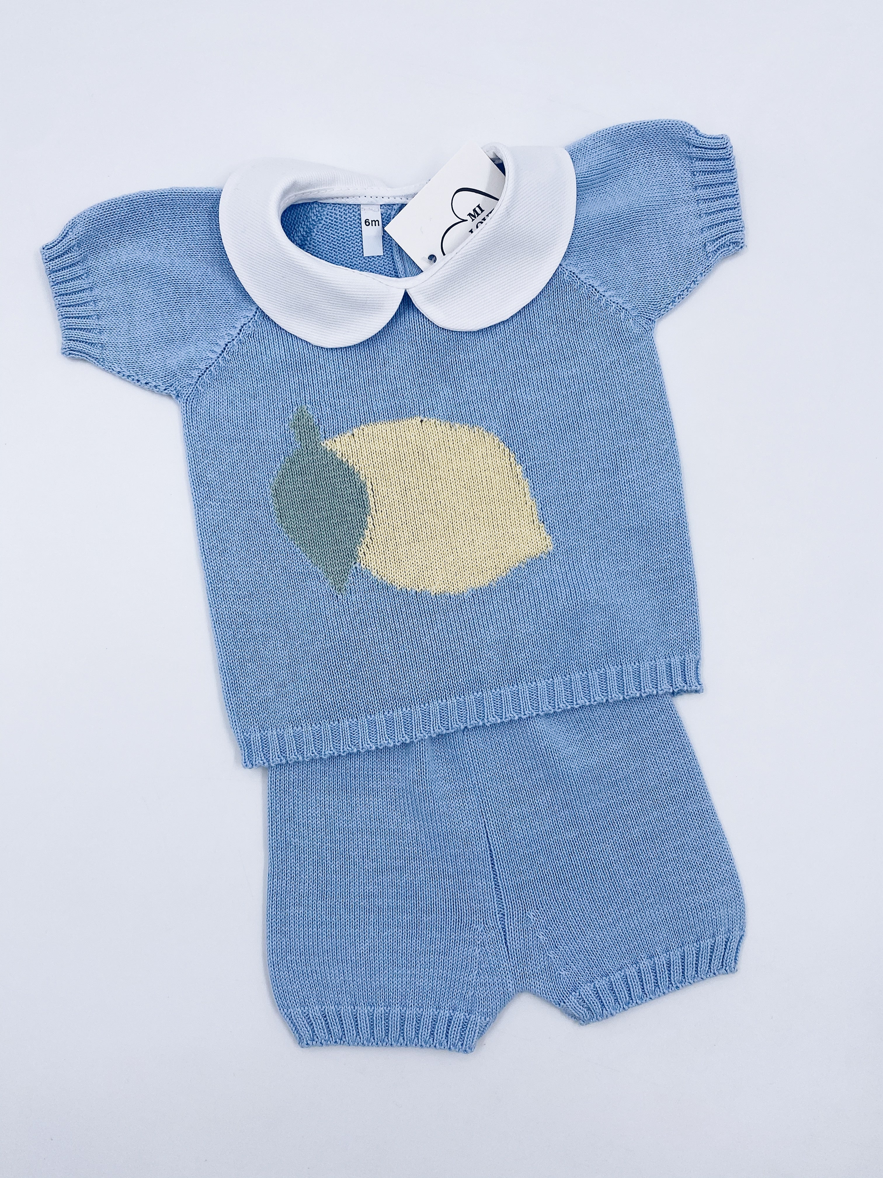 Lemon Fine Knit Summer Set with Peter Pan collar .Unisex style suitable for boys and girls.