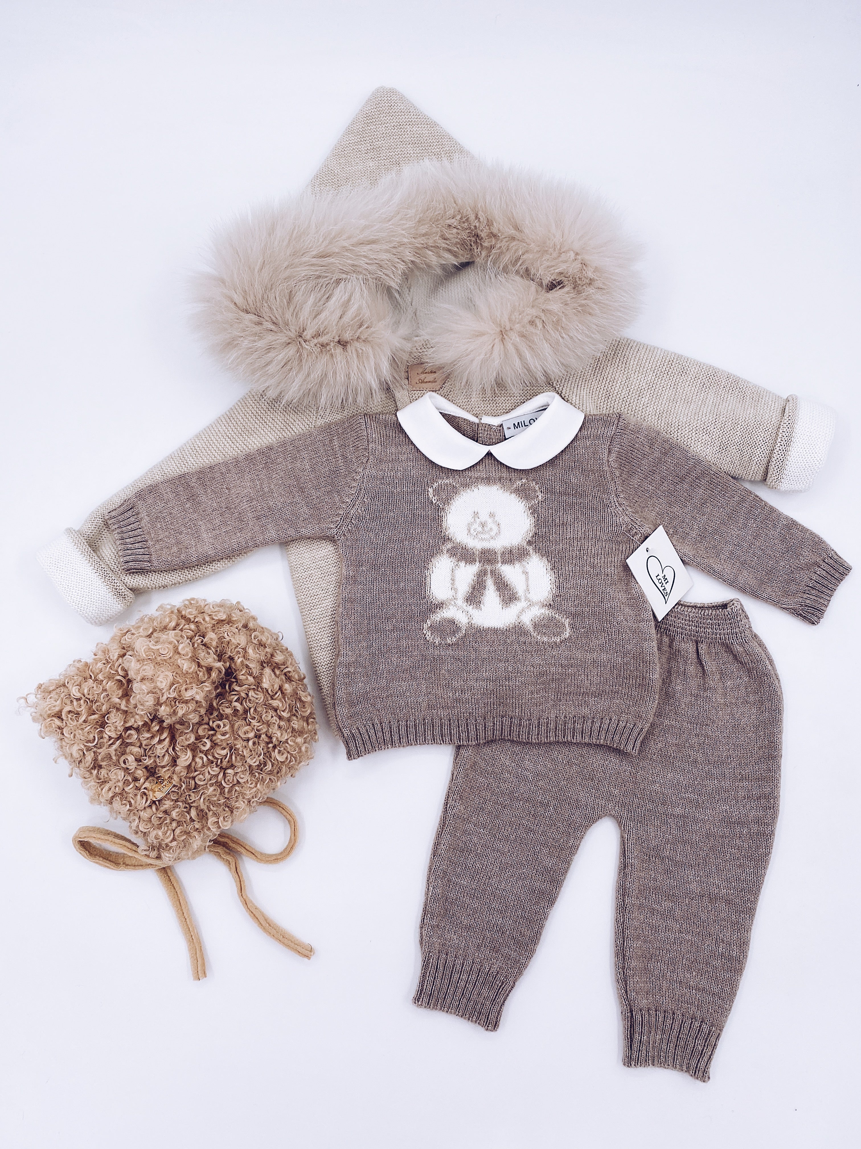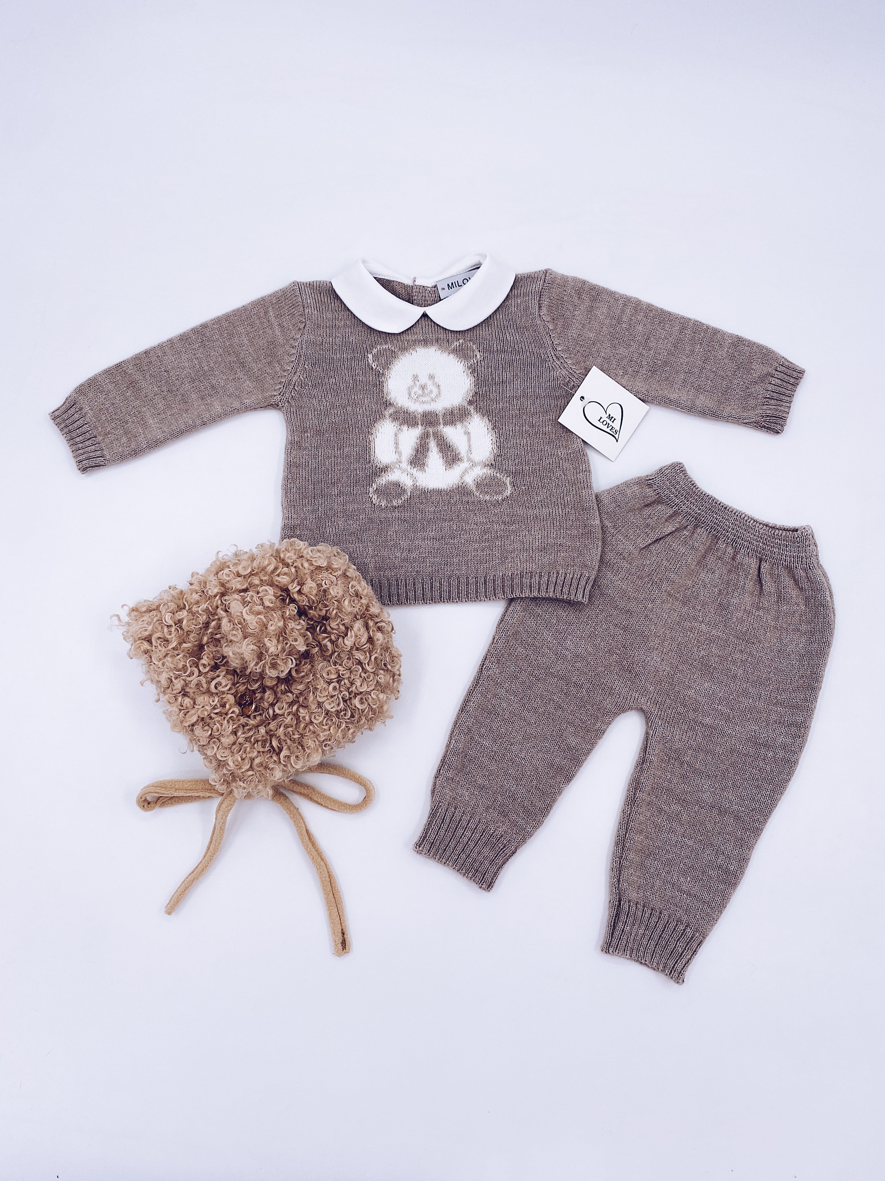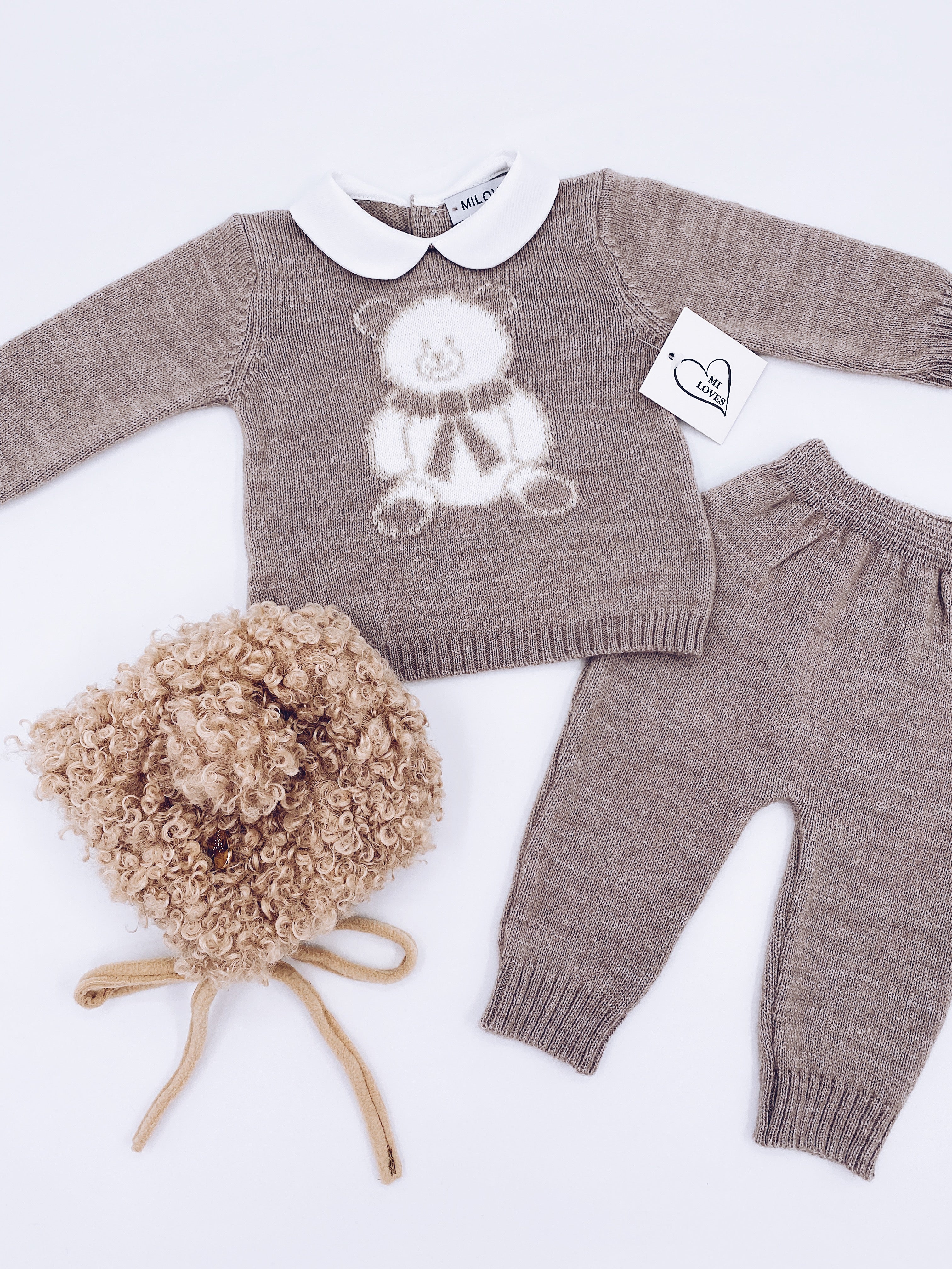 MI LOVES Signature Little Bear knitted 2 piece suit in Brown
