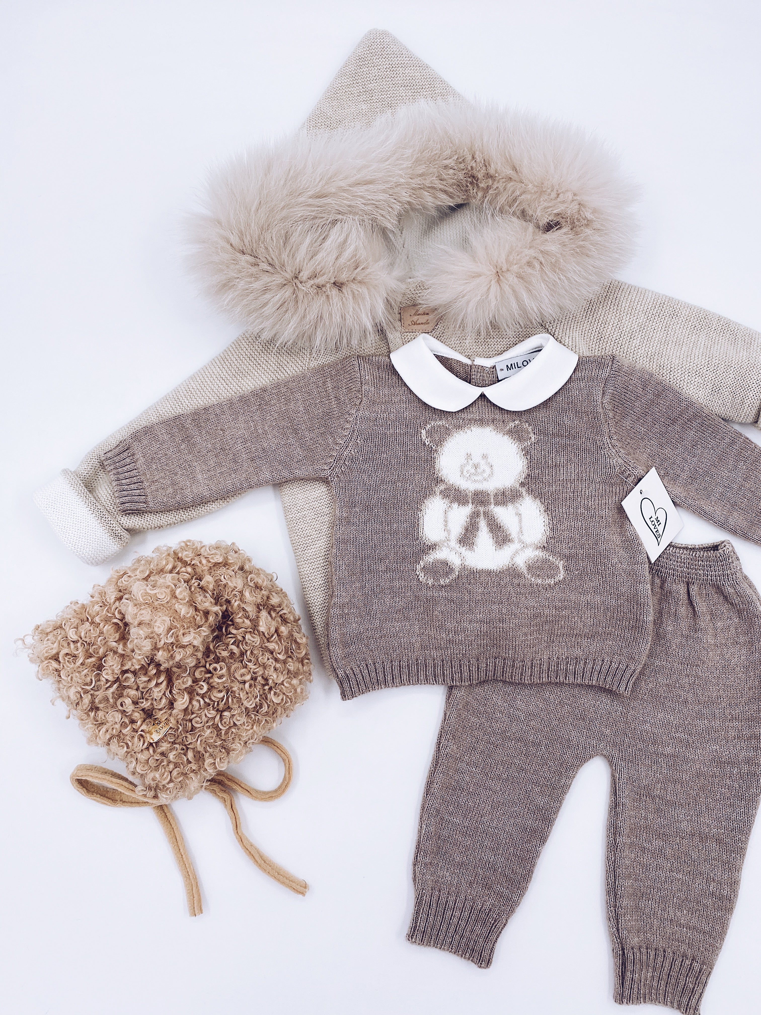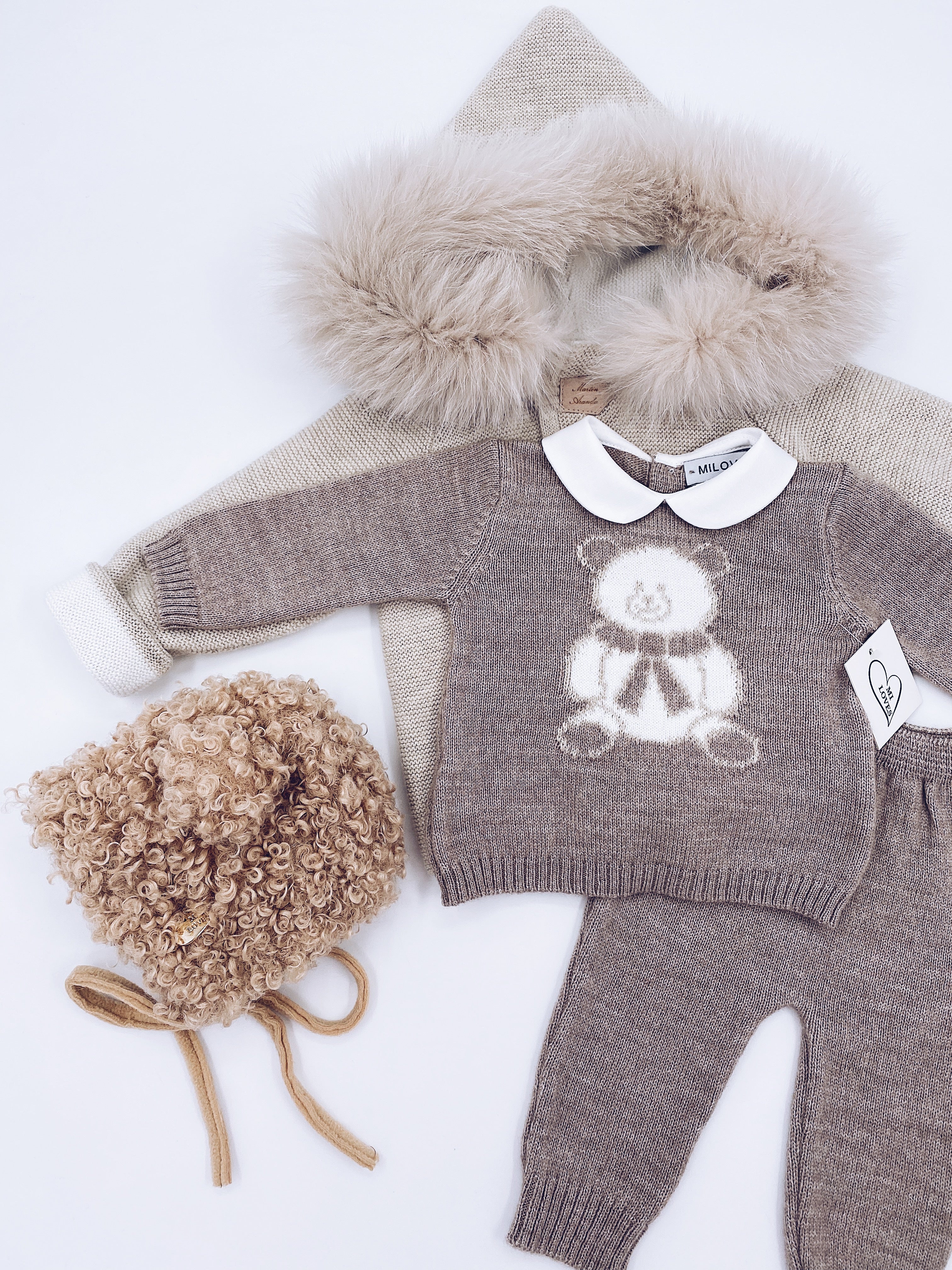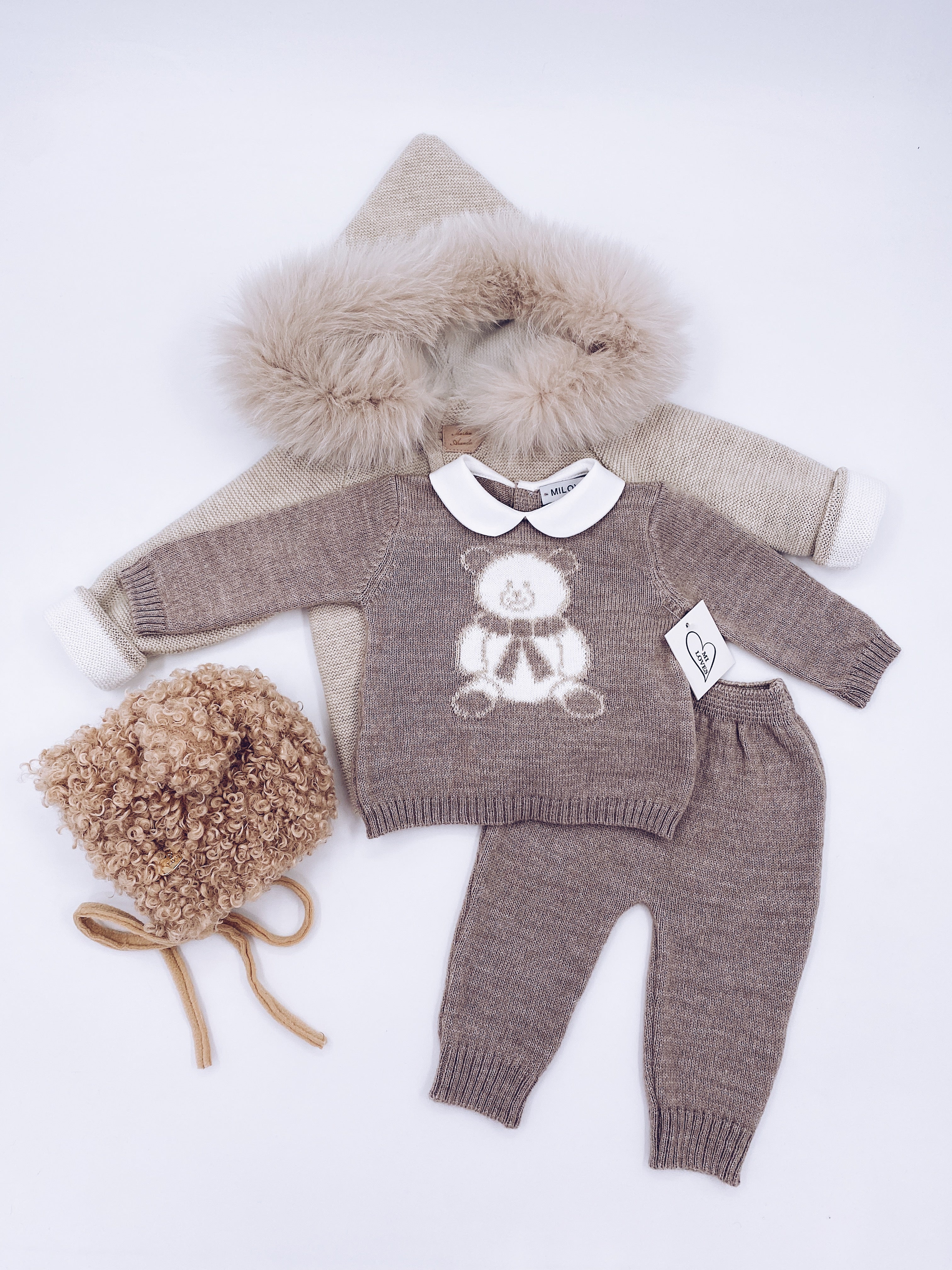 MI LOVES Signature Little Bear knitted 2 piece suit in Brown