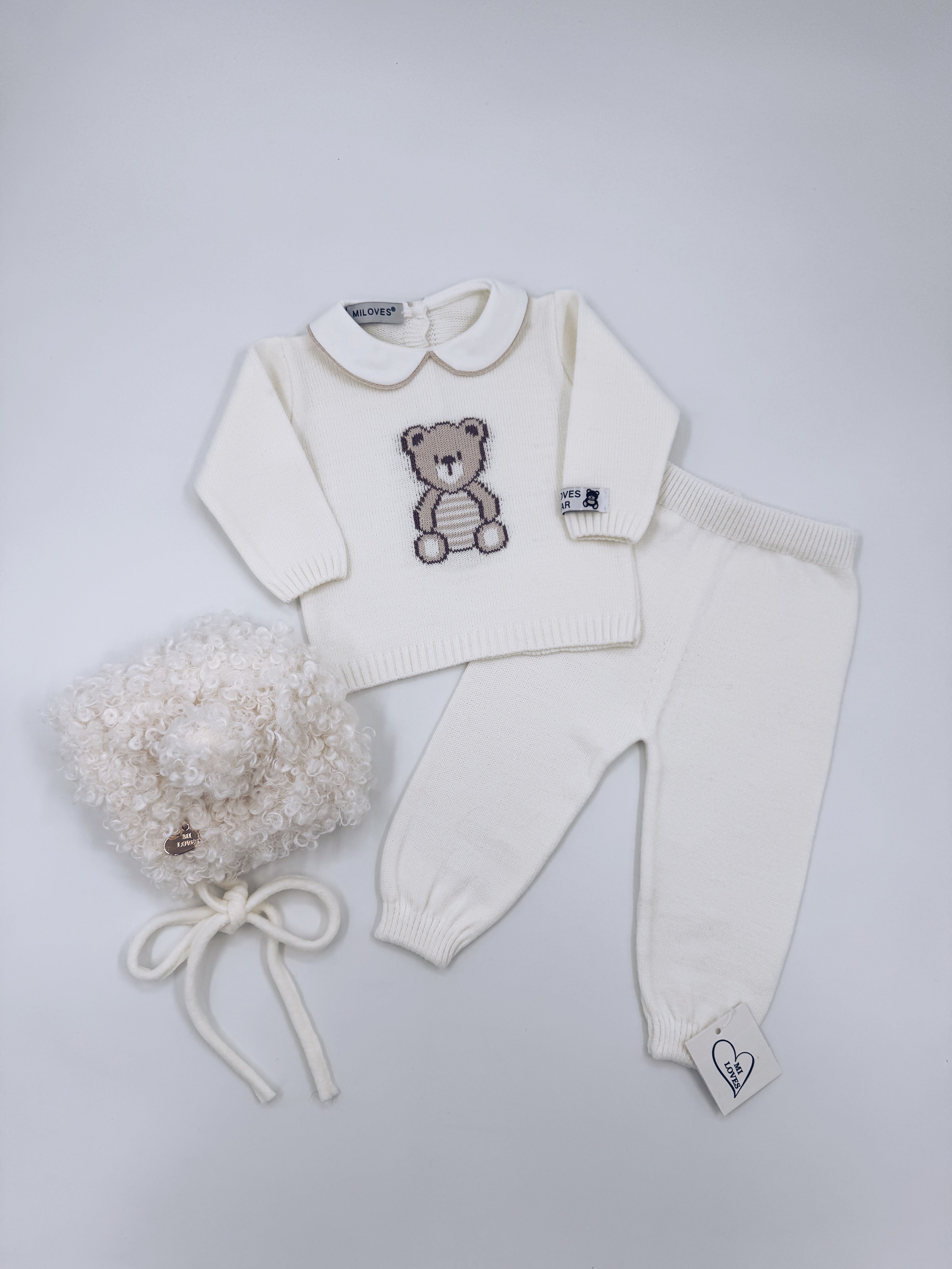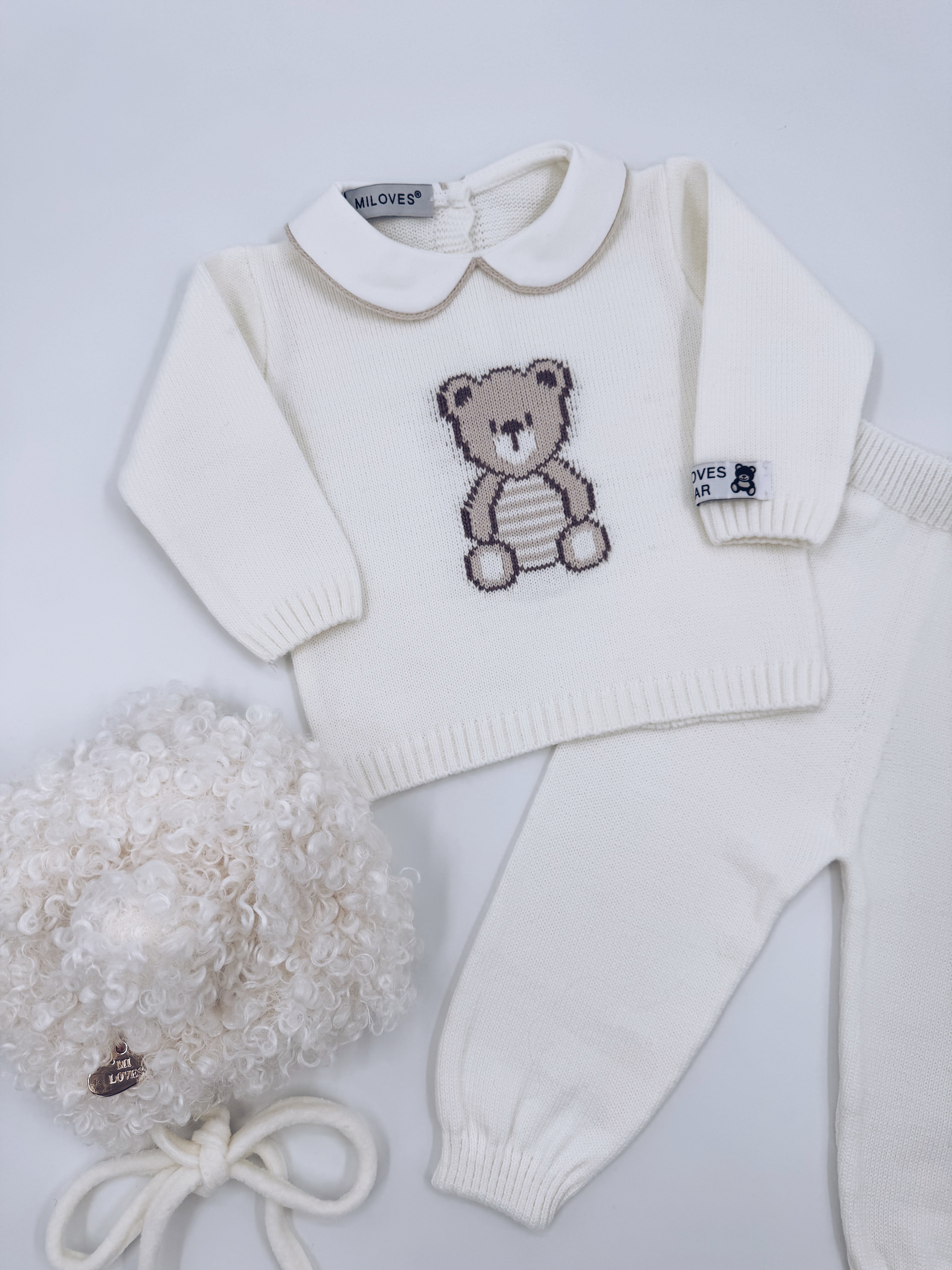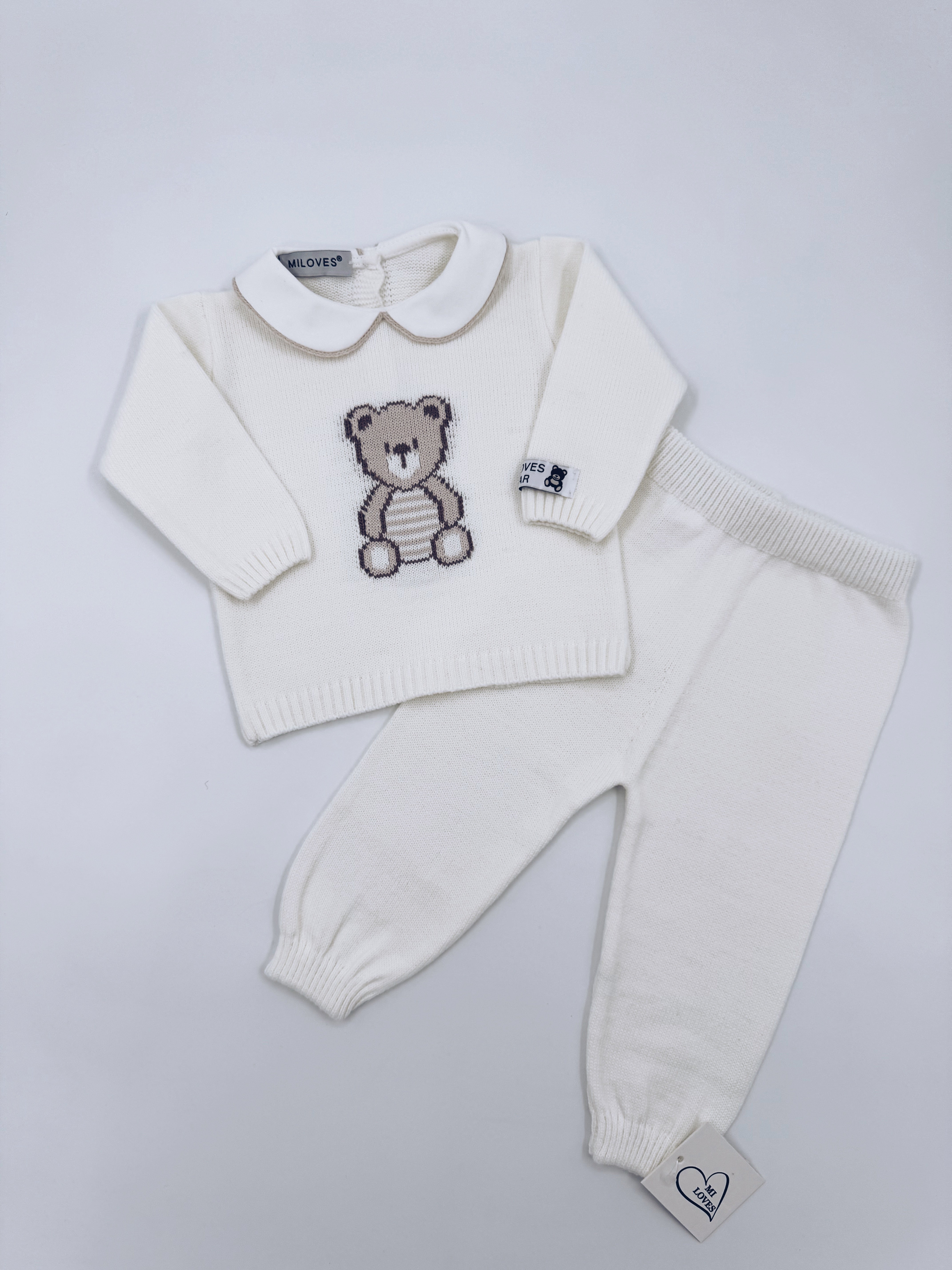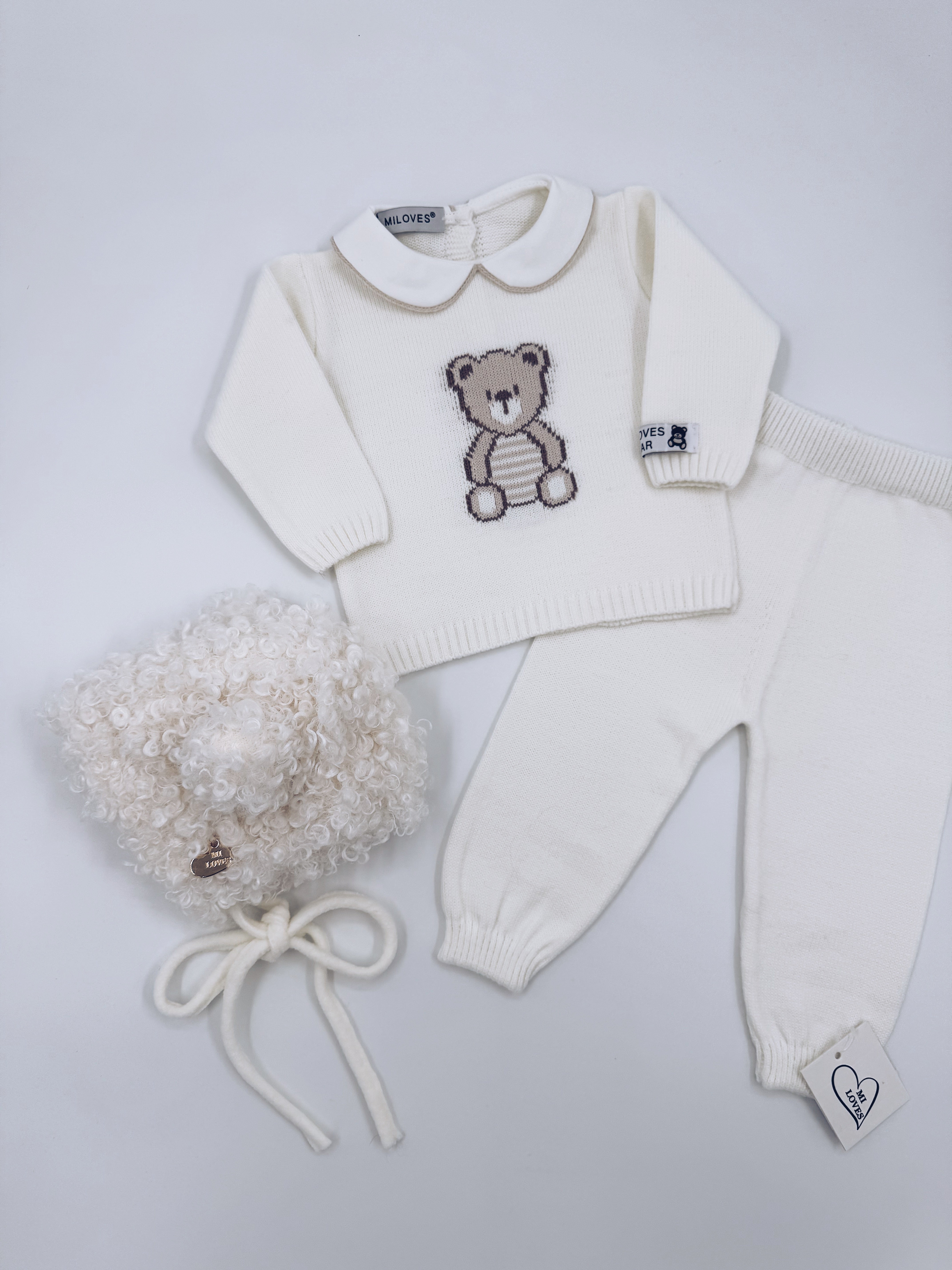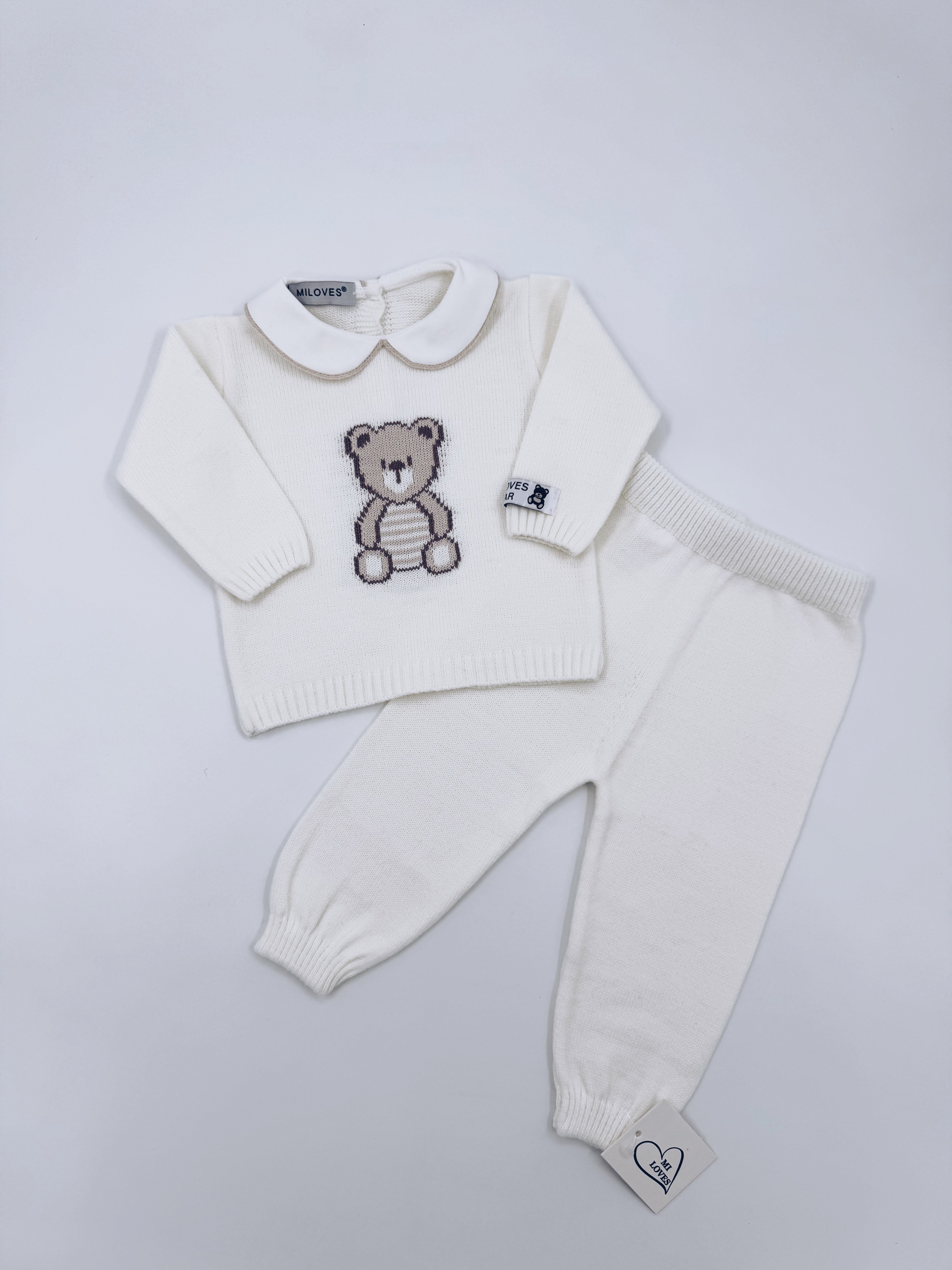 MI LOVES BEAR knitted 2 piece suit in Ivory