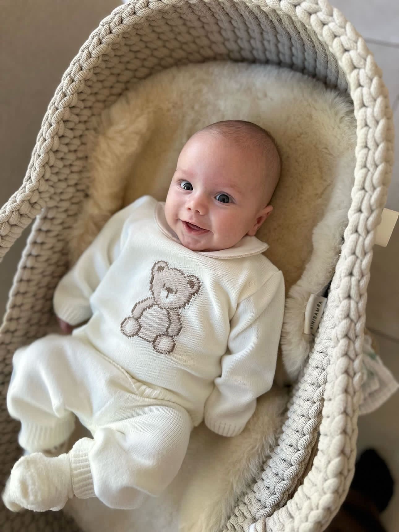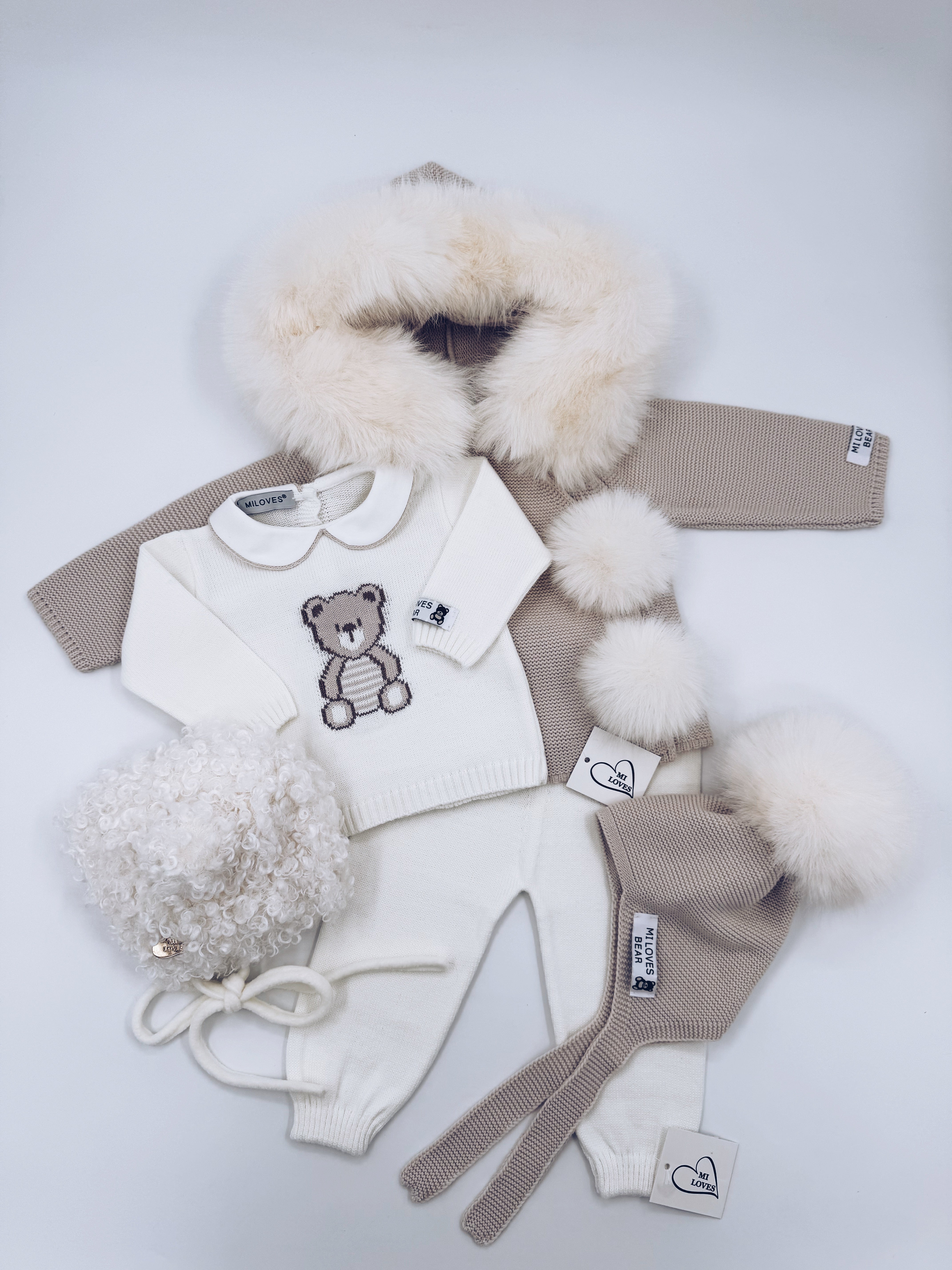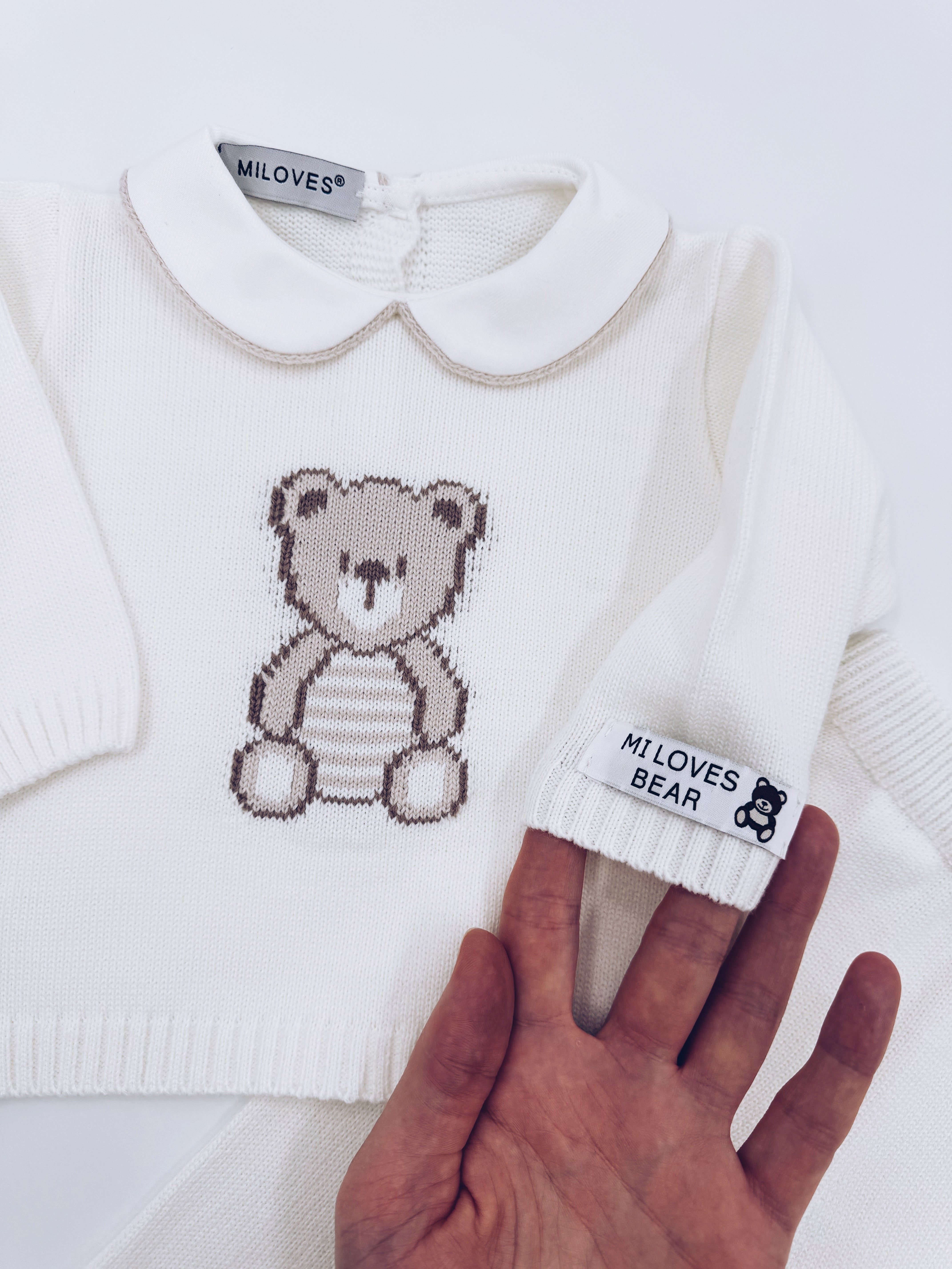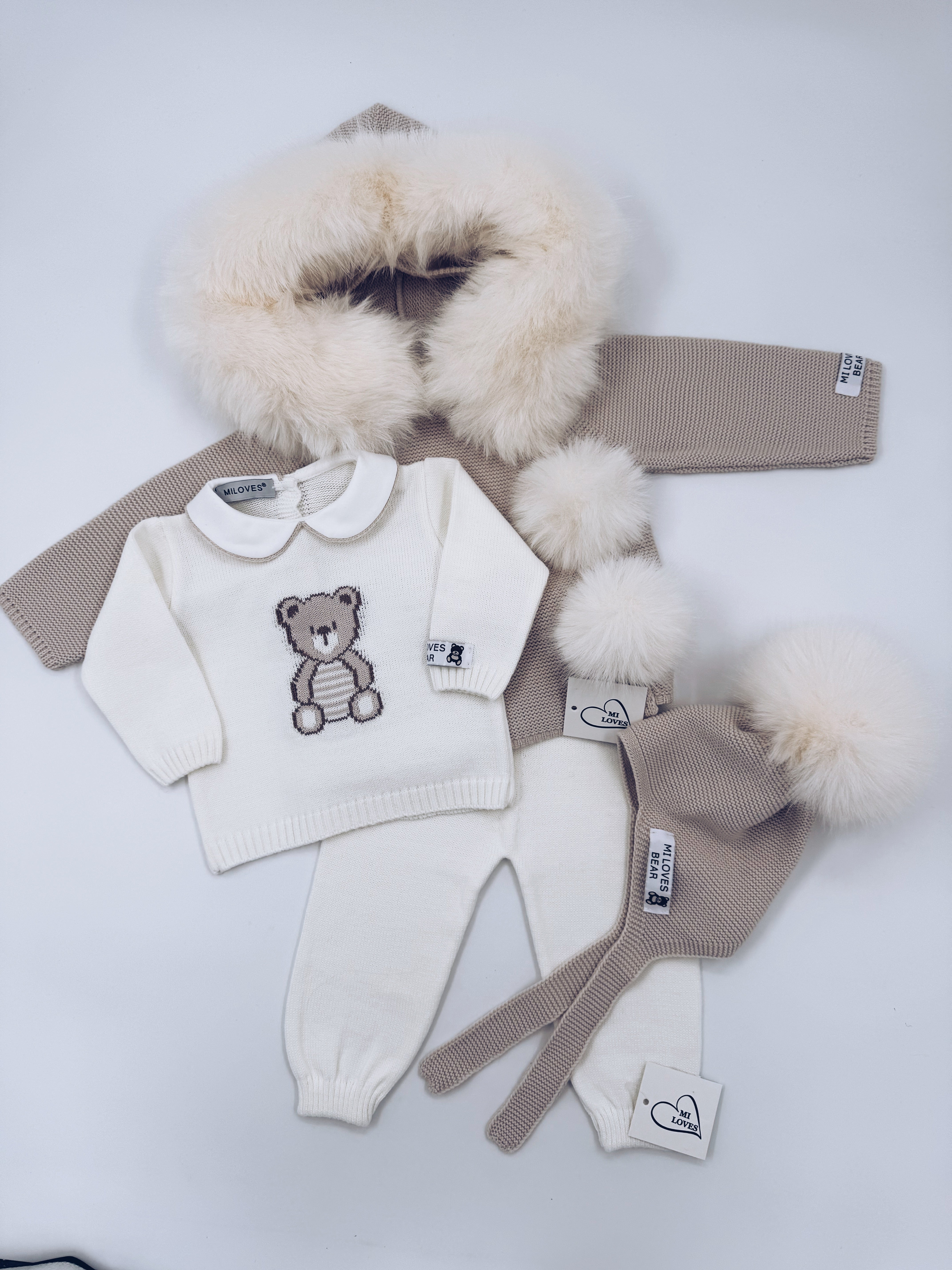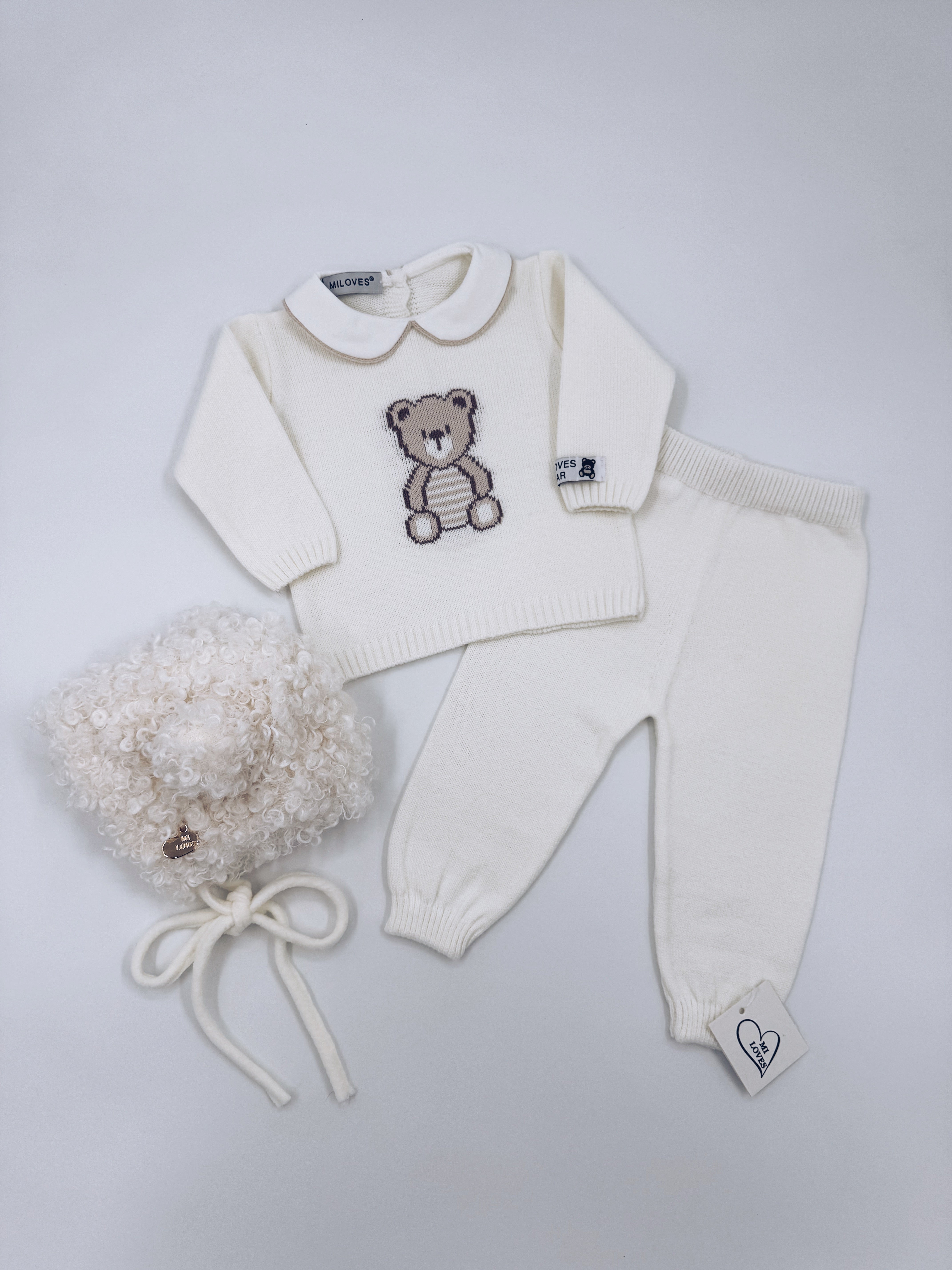 MI LOVES BEAR knitted 2 piece suit in Ivory