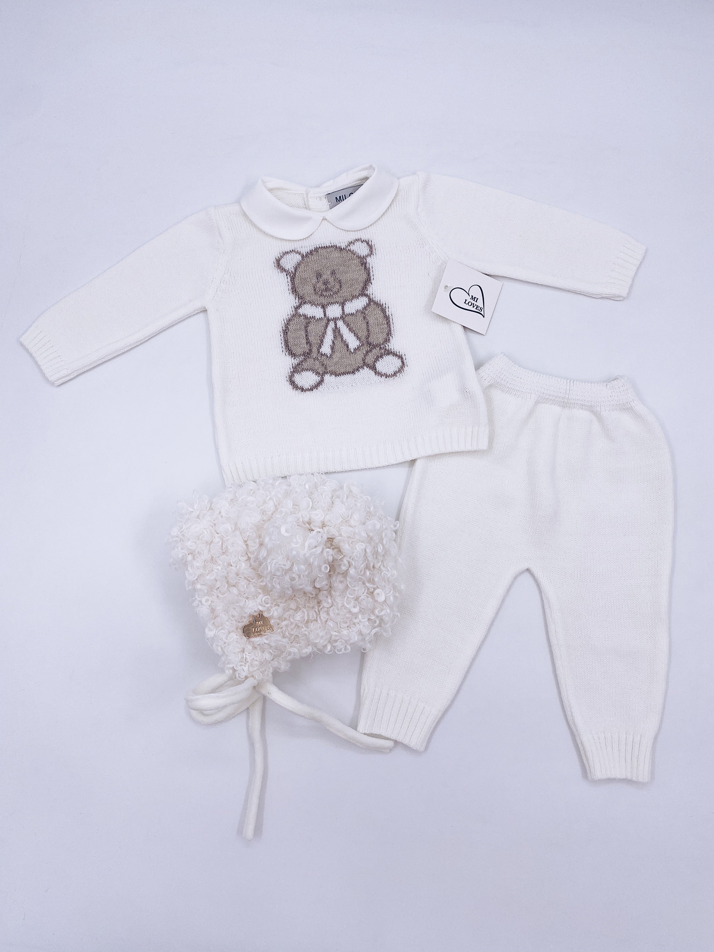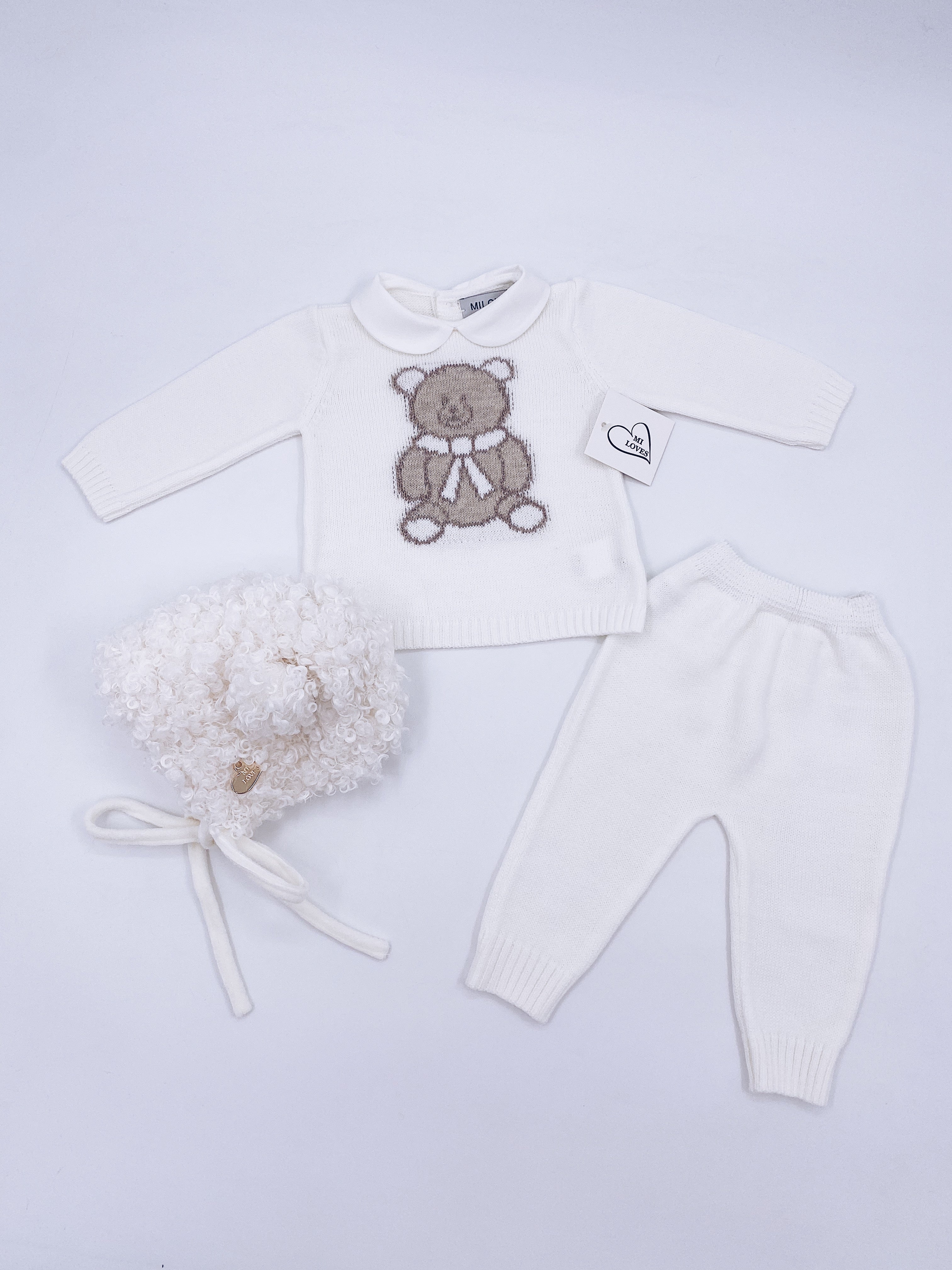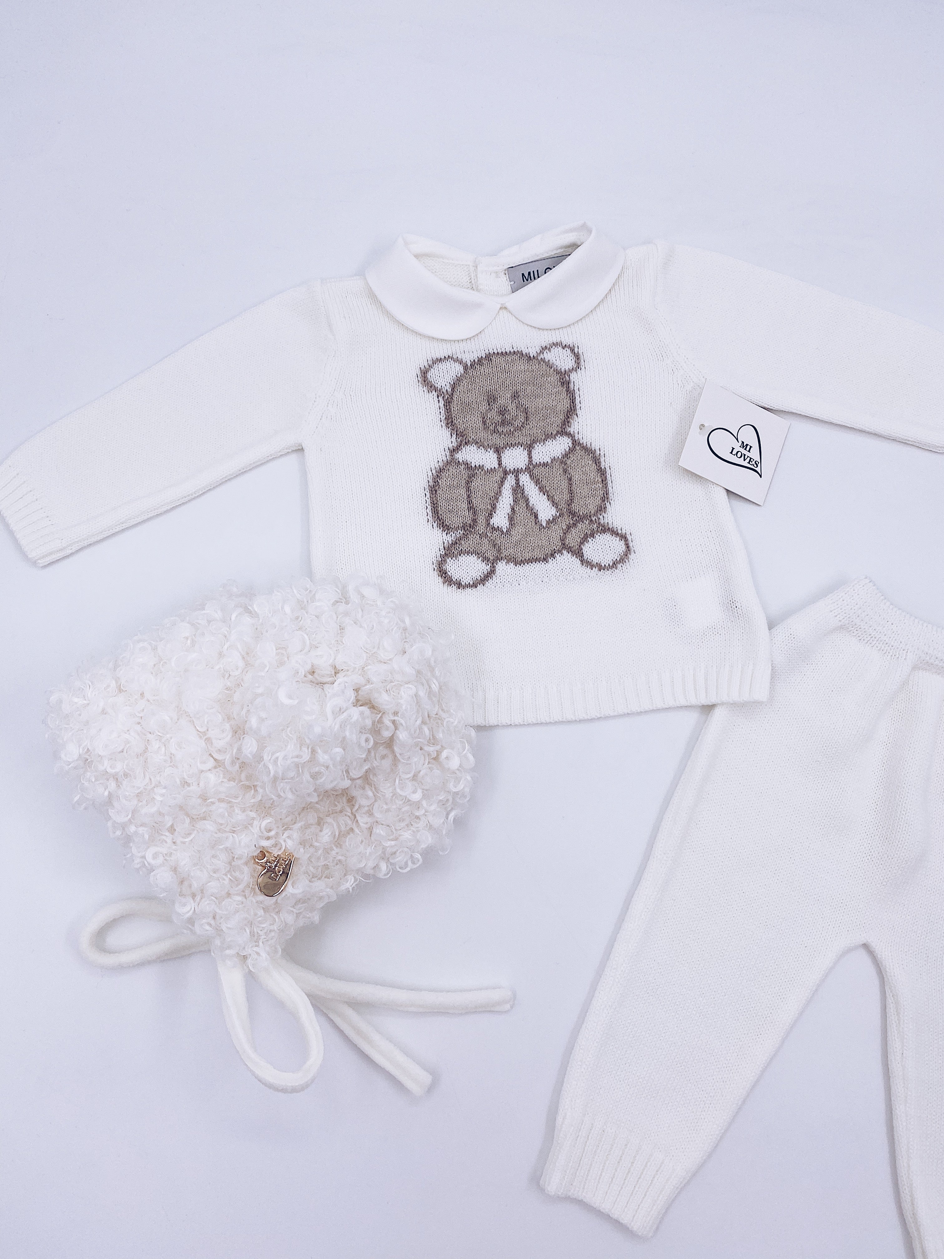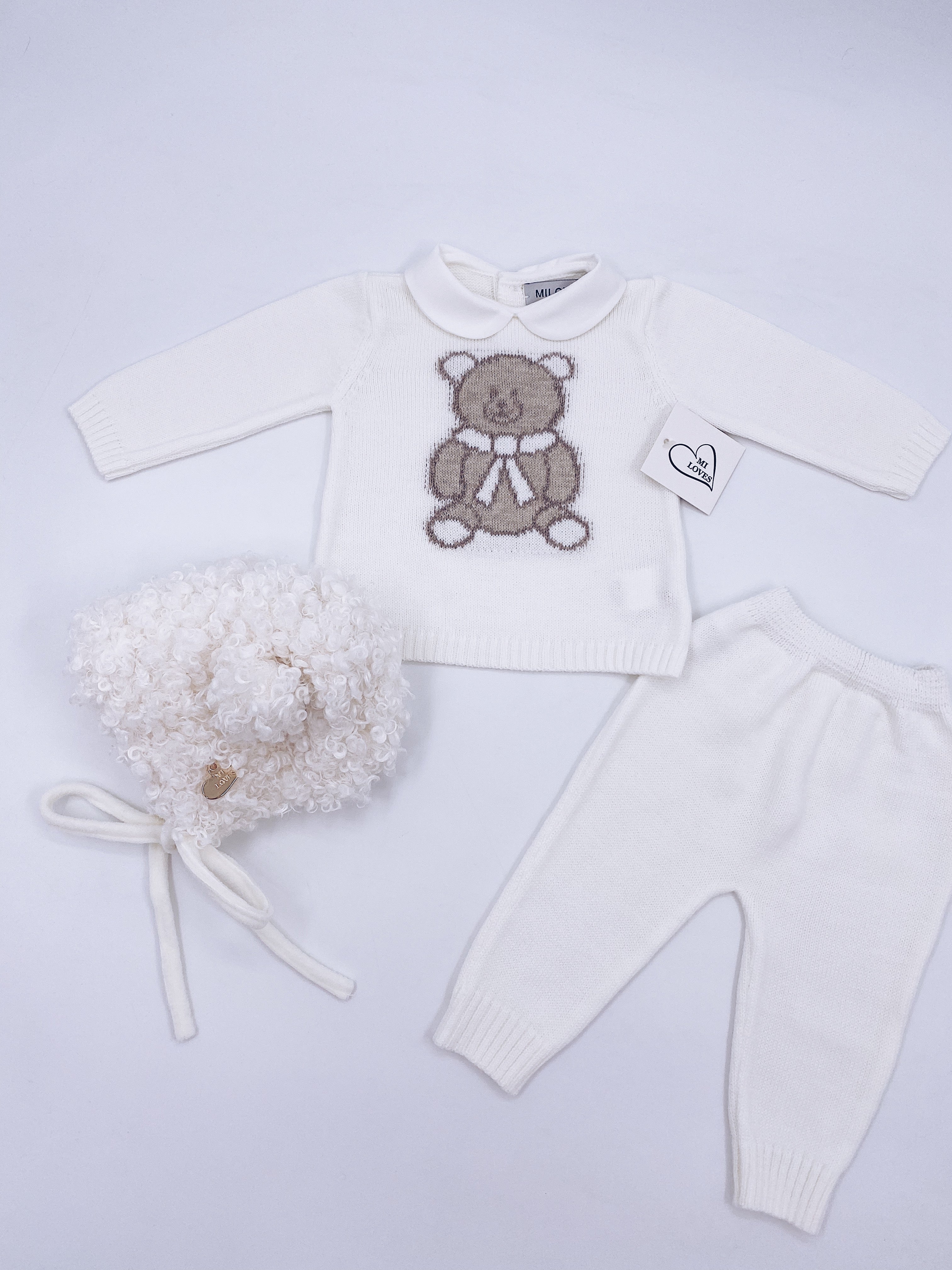 MI LOVES Signature Little Bear knitted 2 piece suit in Ivory