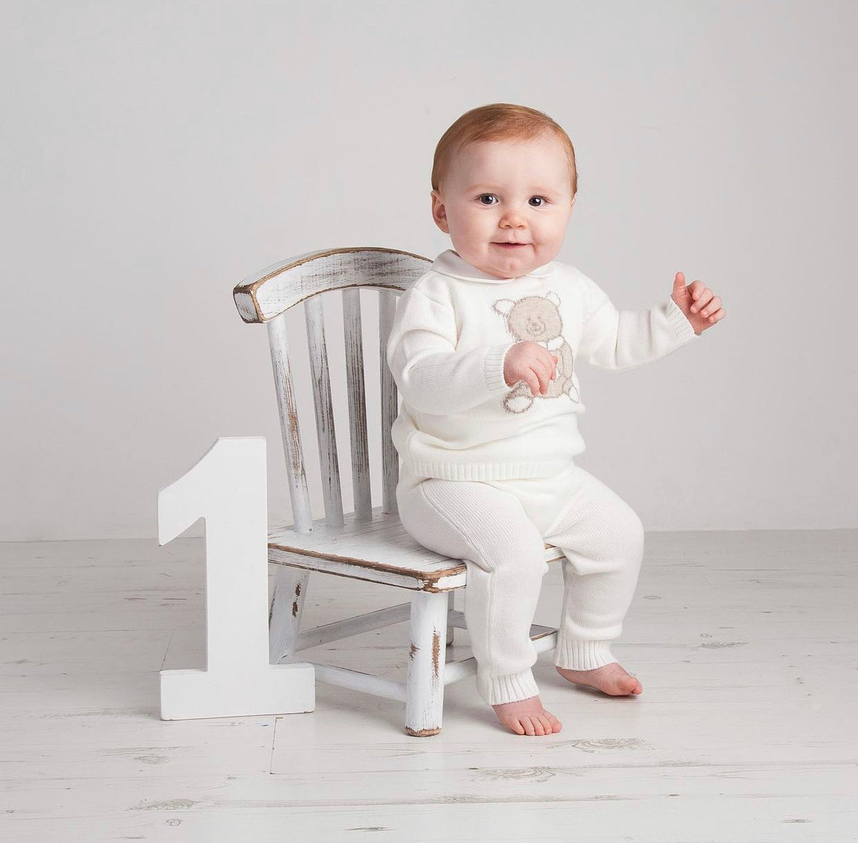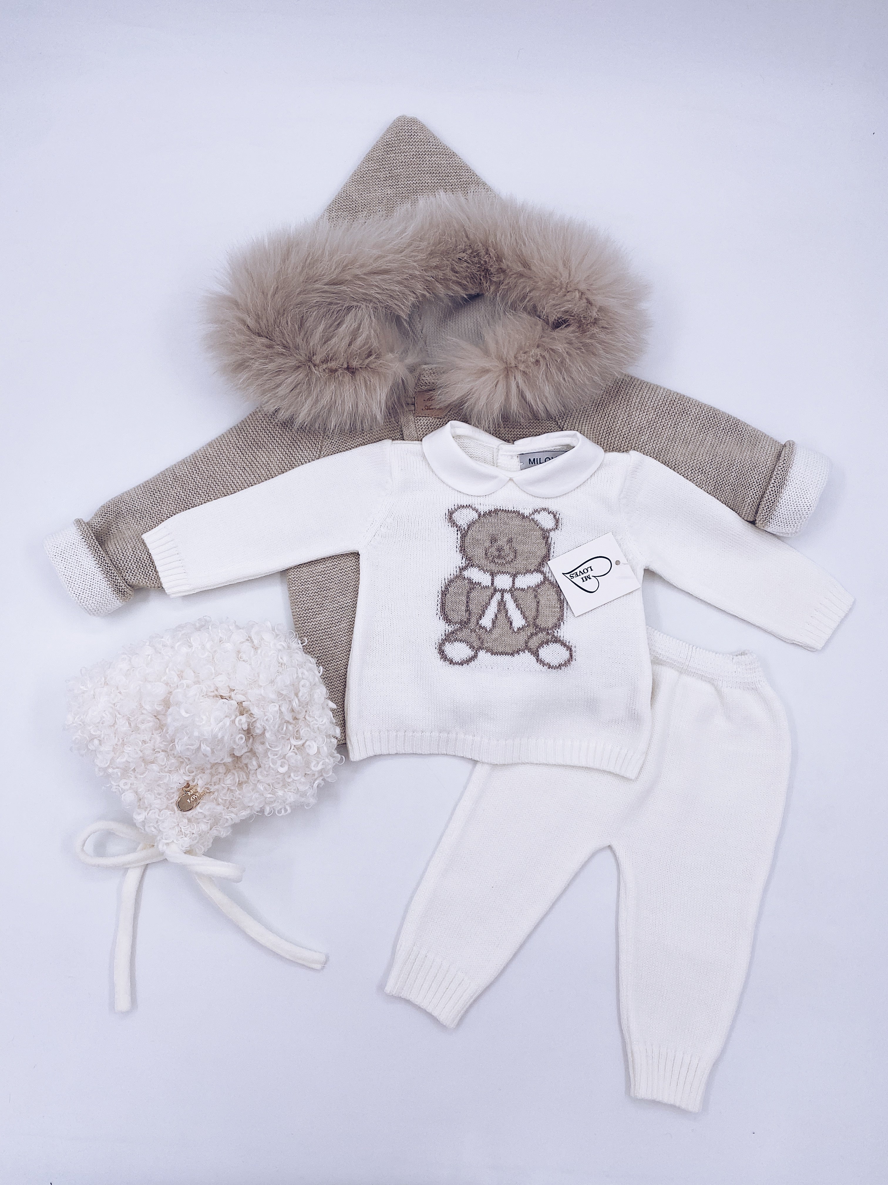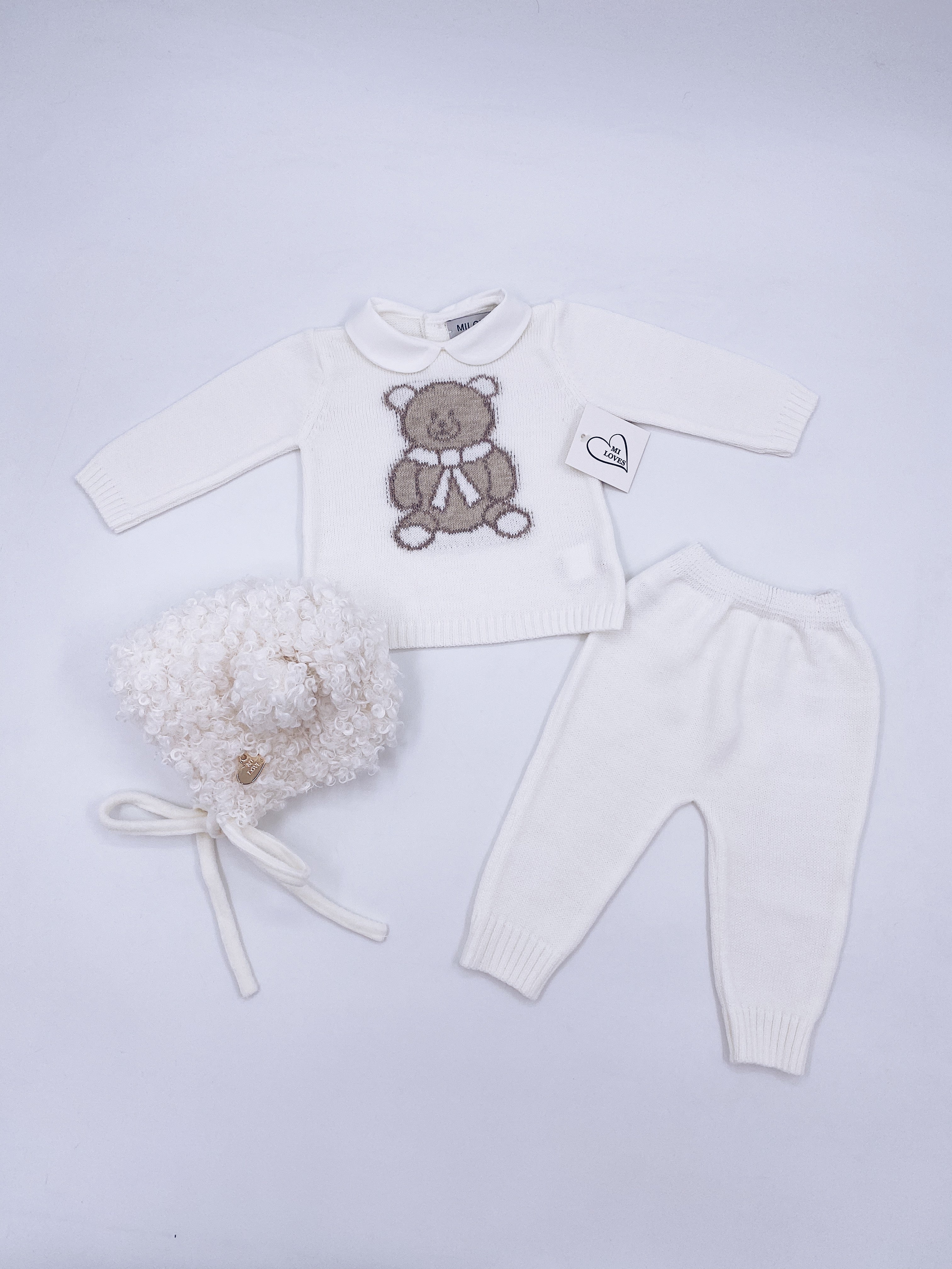 MI LOVES Signature Little Bear knitted 2 piece suit in Ivory