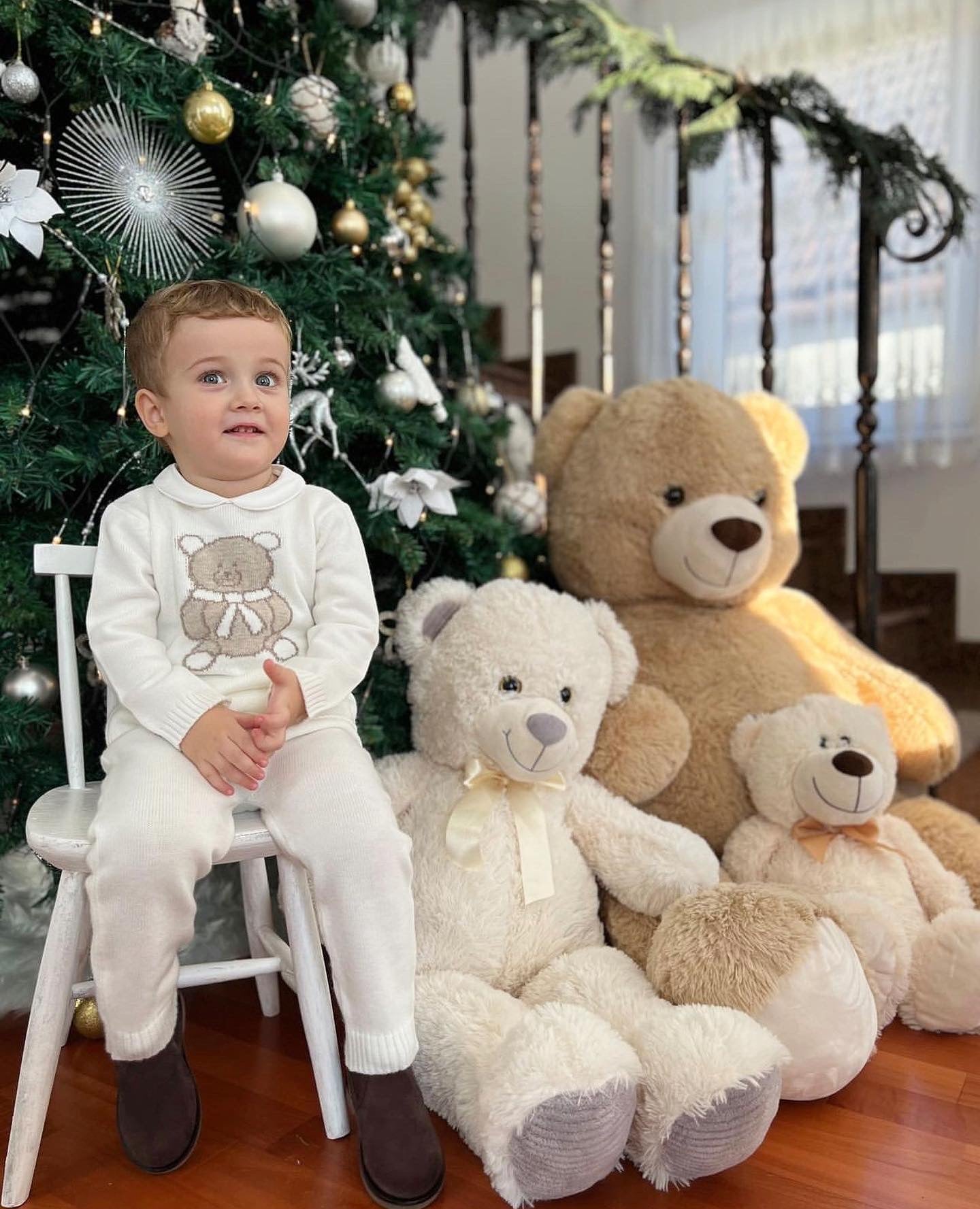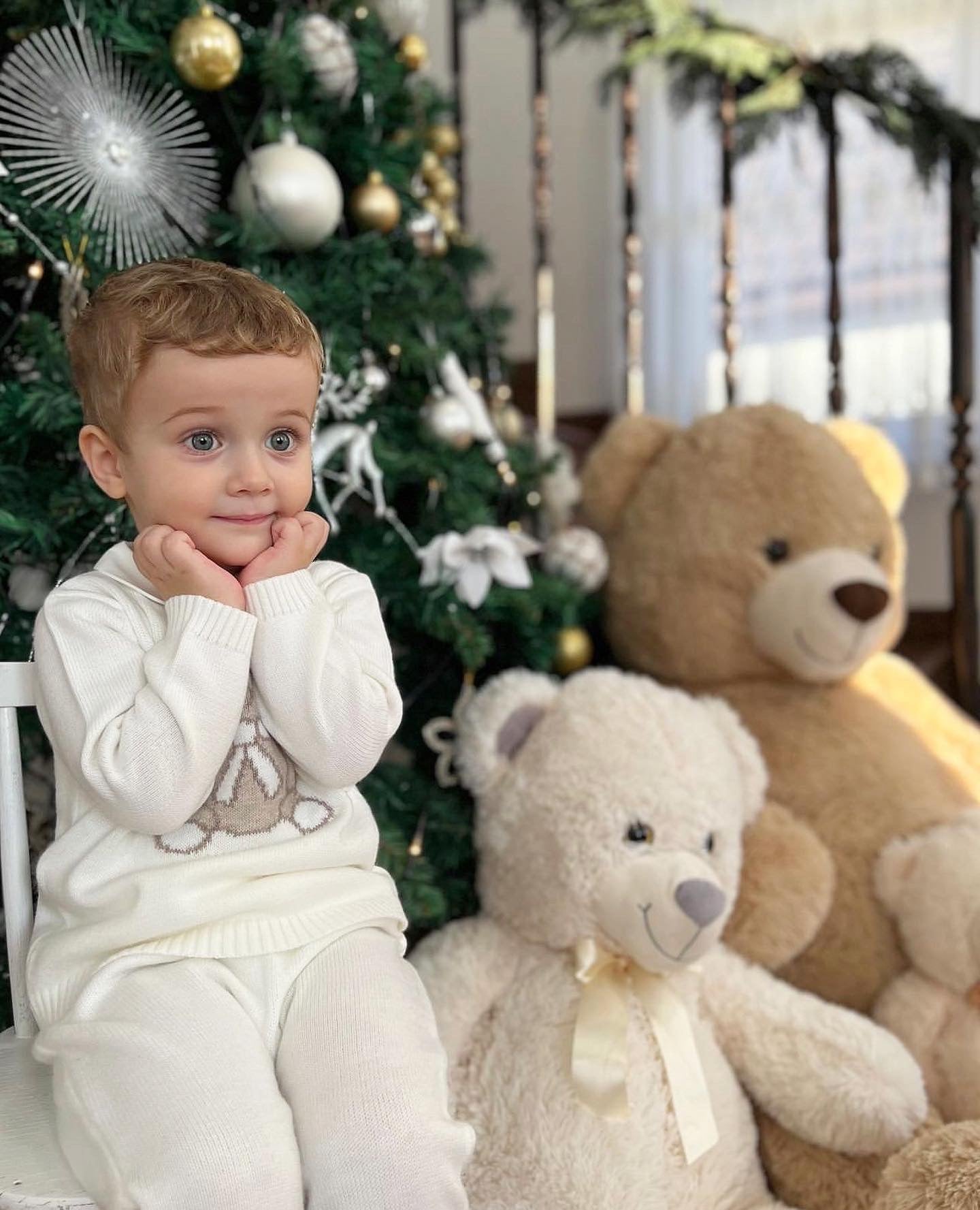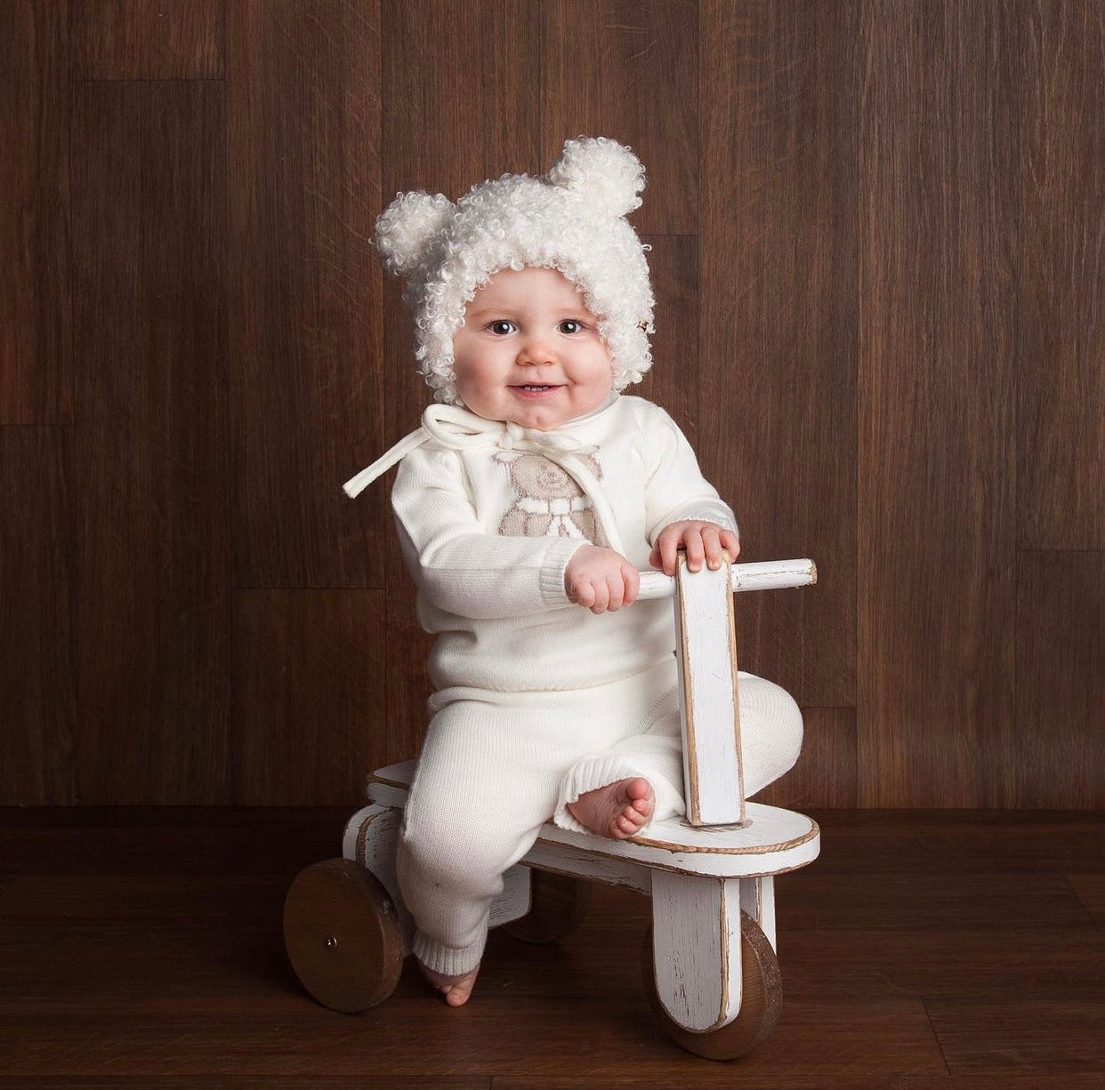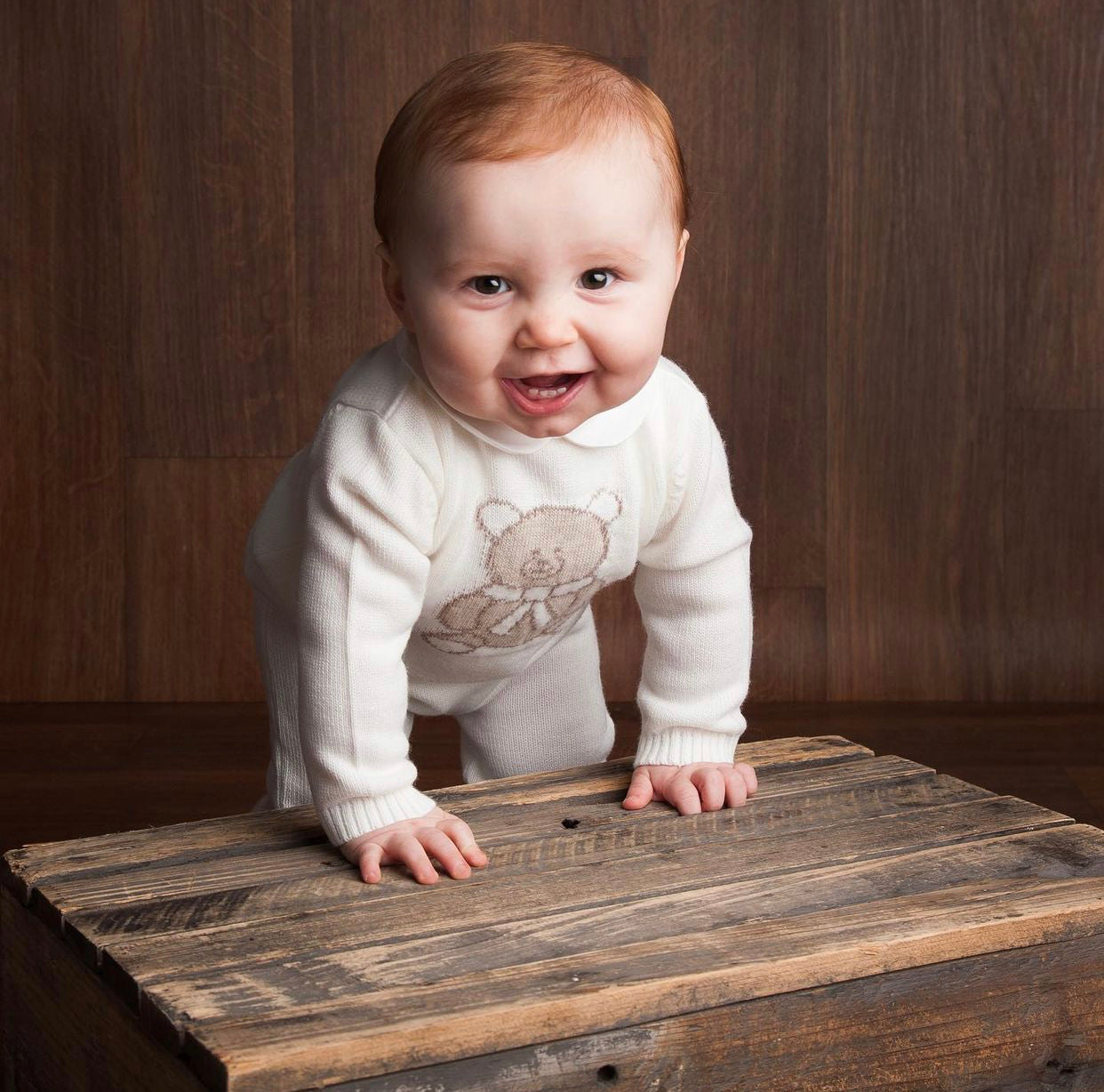 MI LOVES Signature Little Bear knitted 2 piece suit in Ivory