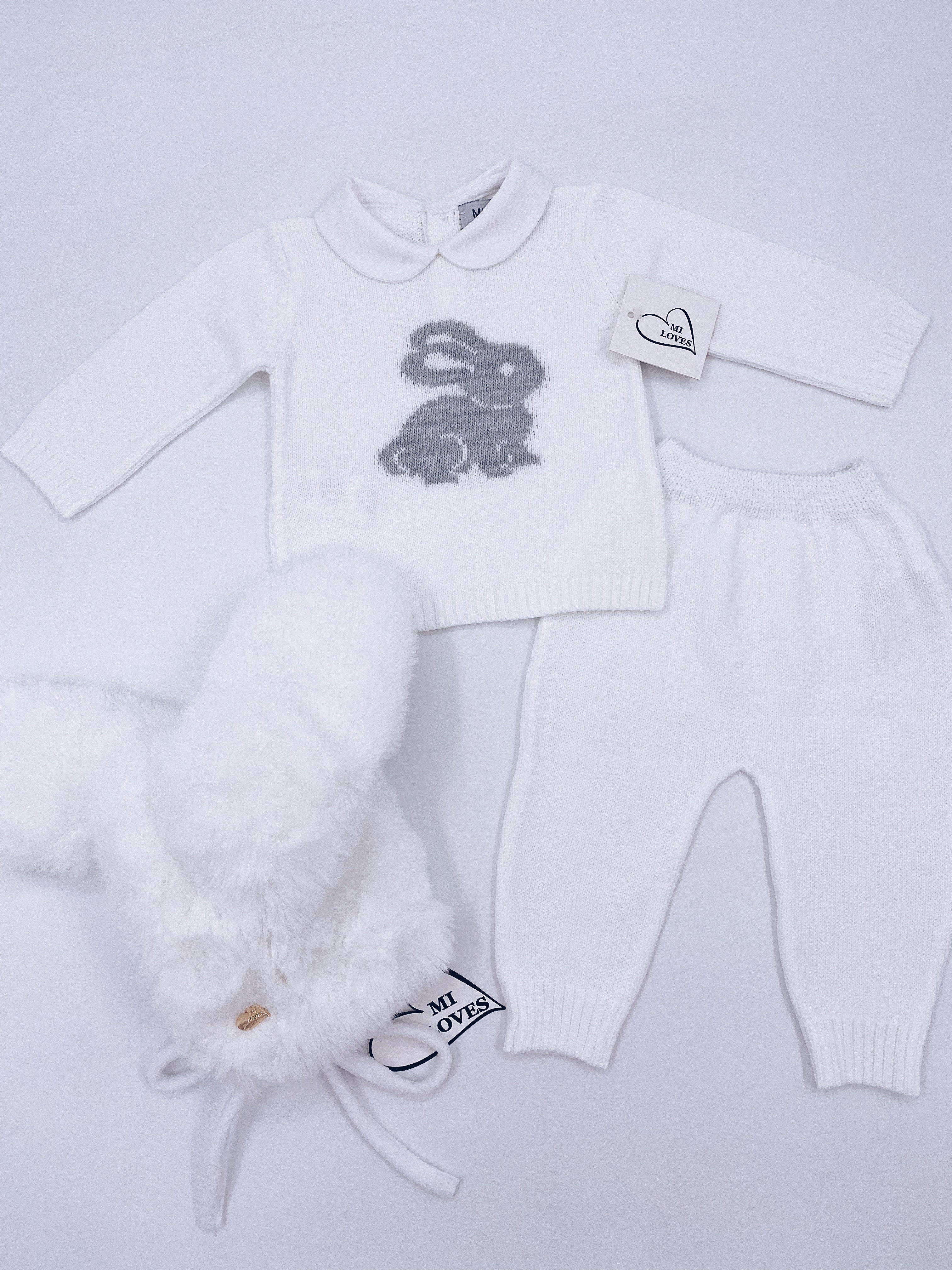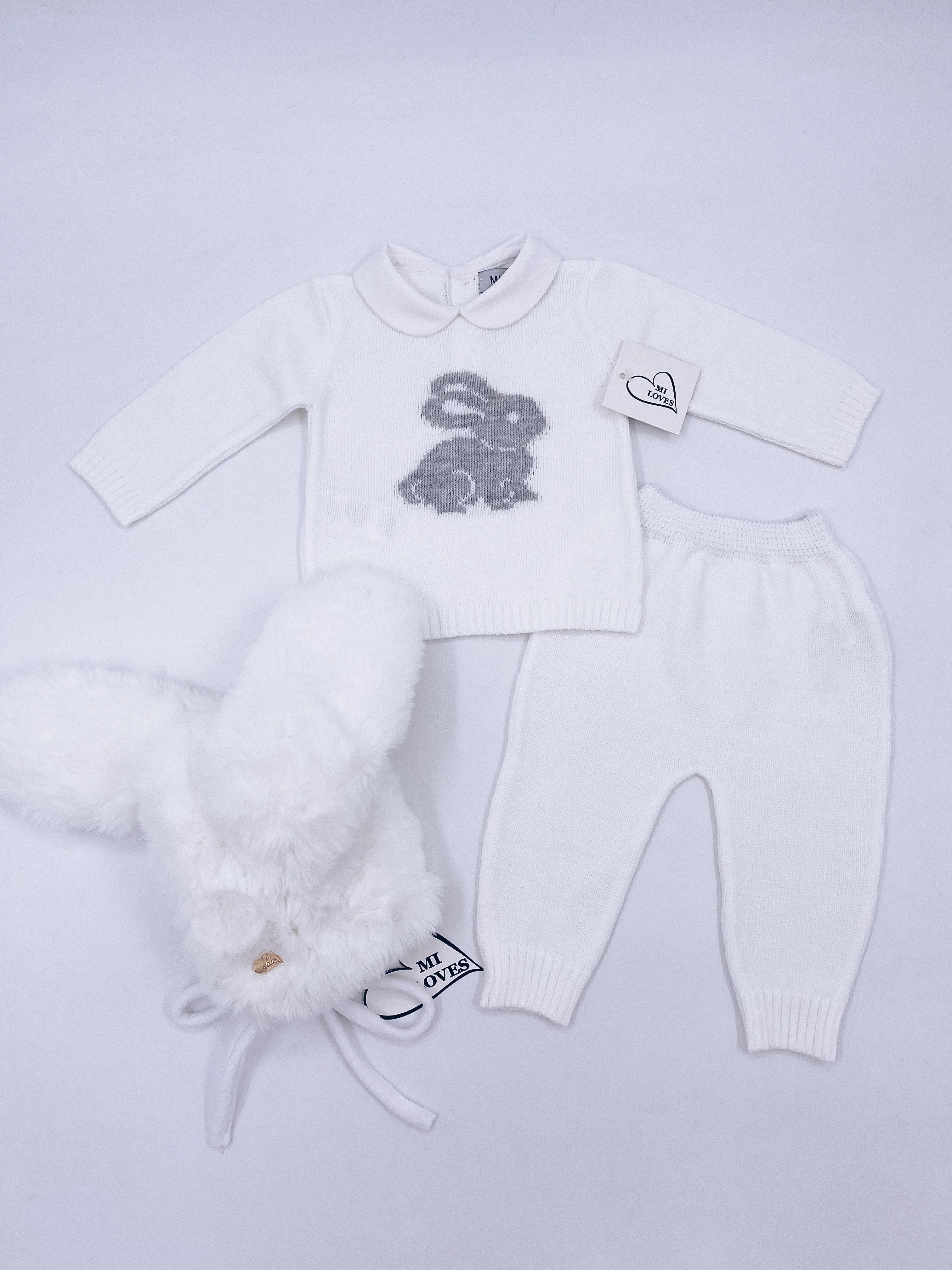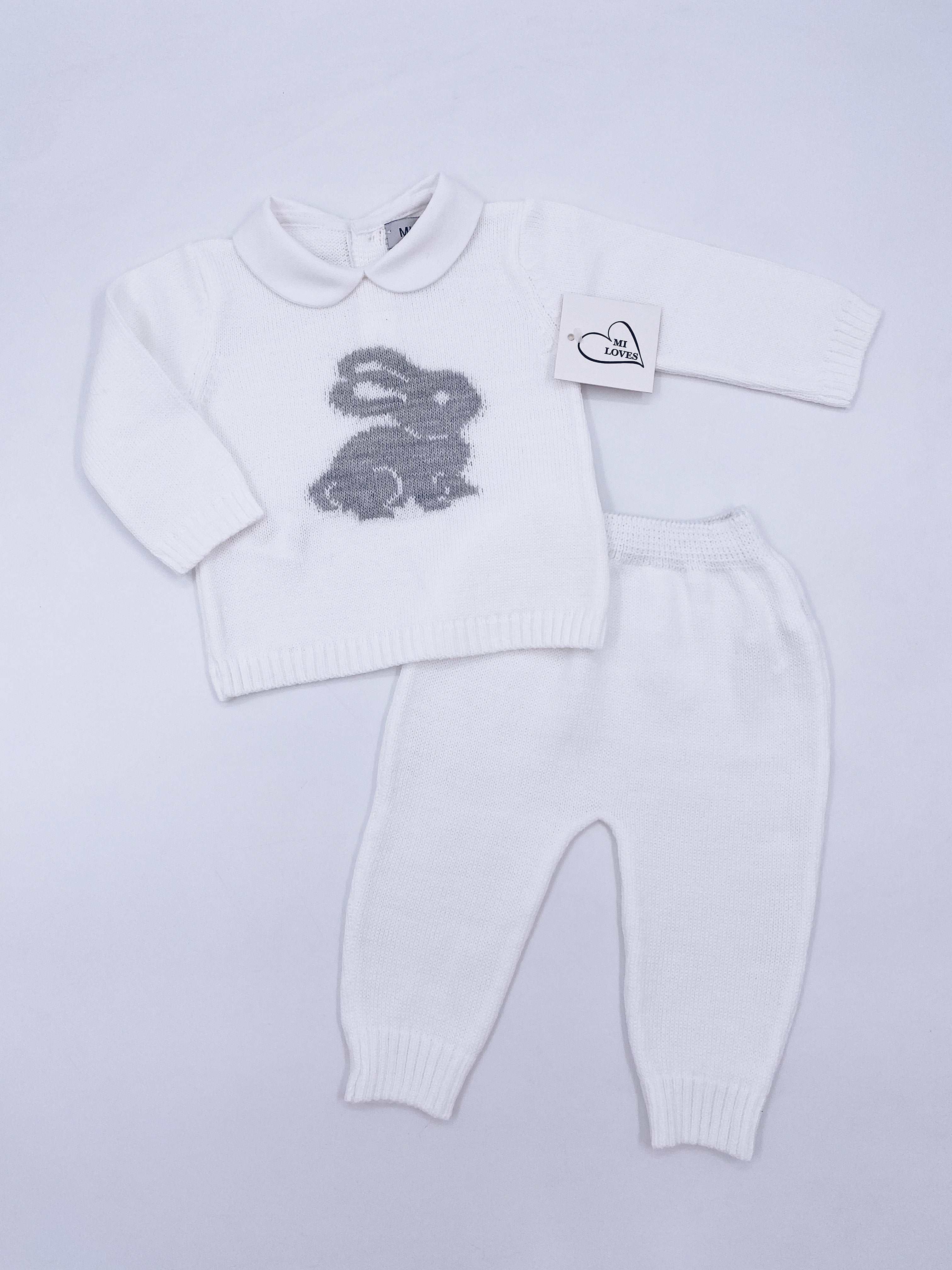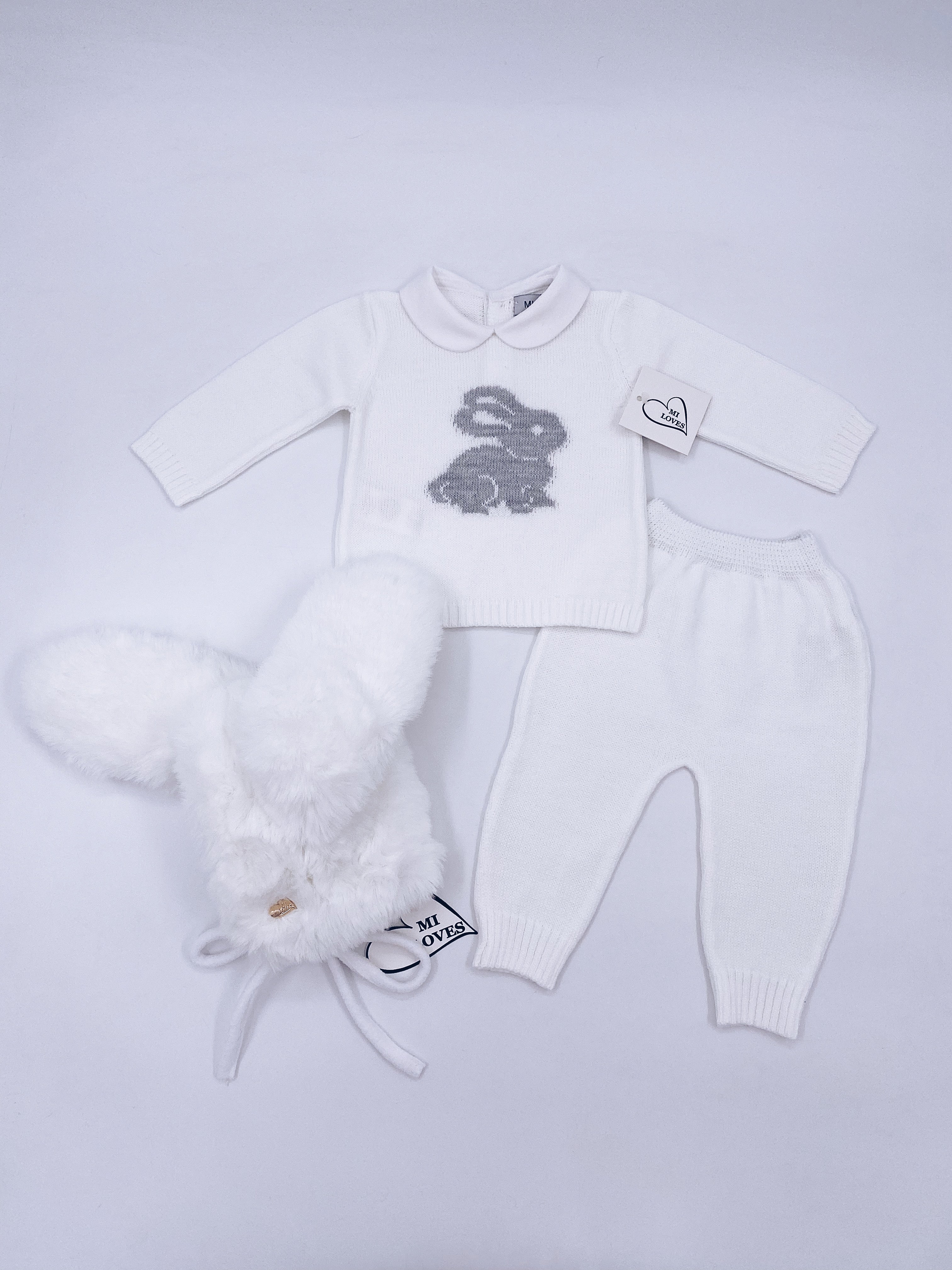 MI LOVES Signature Little Bunny knitted 2 piece suit in white