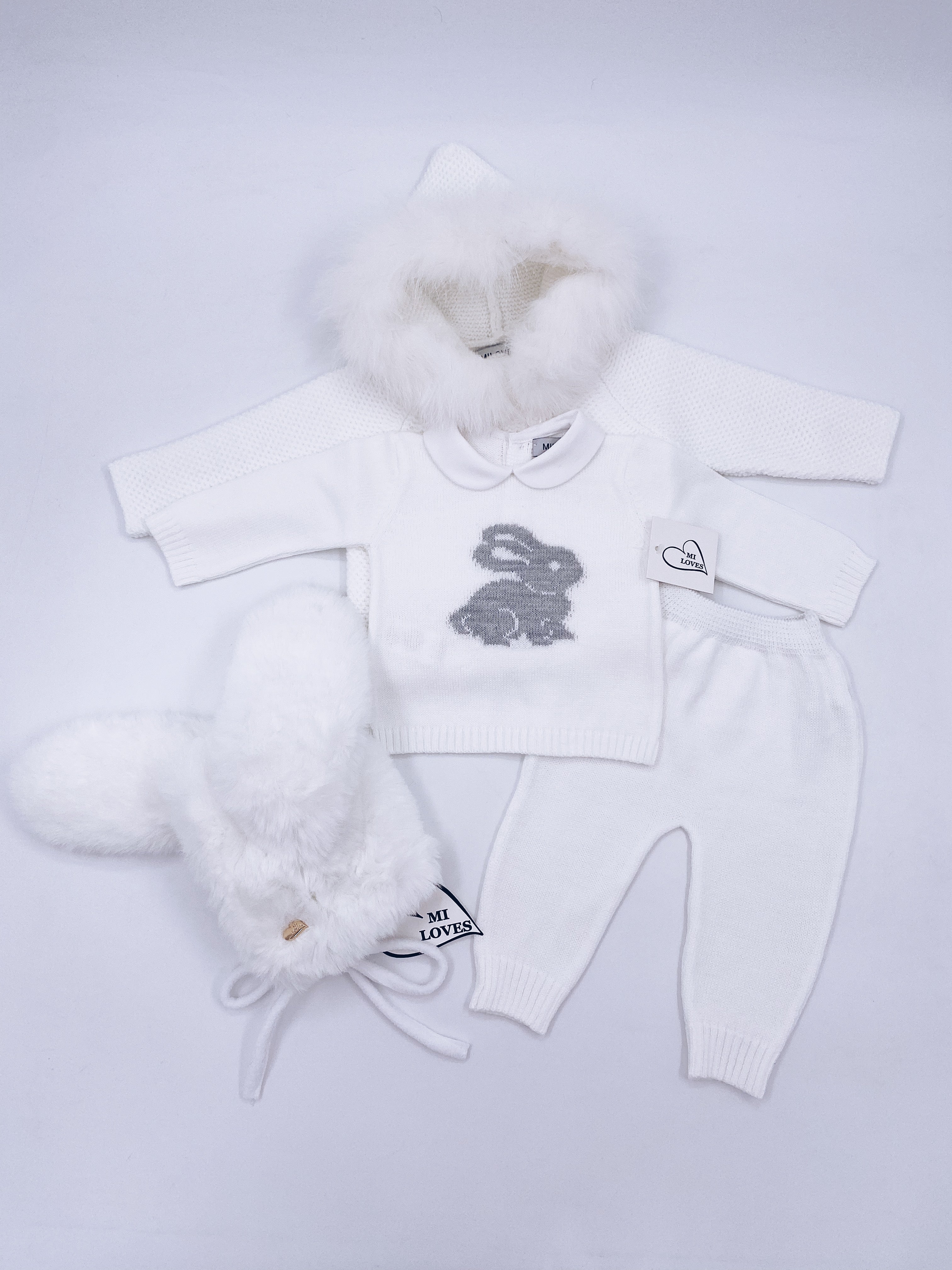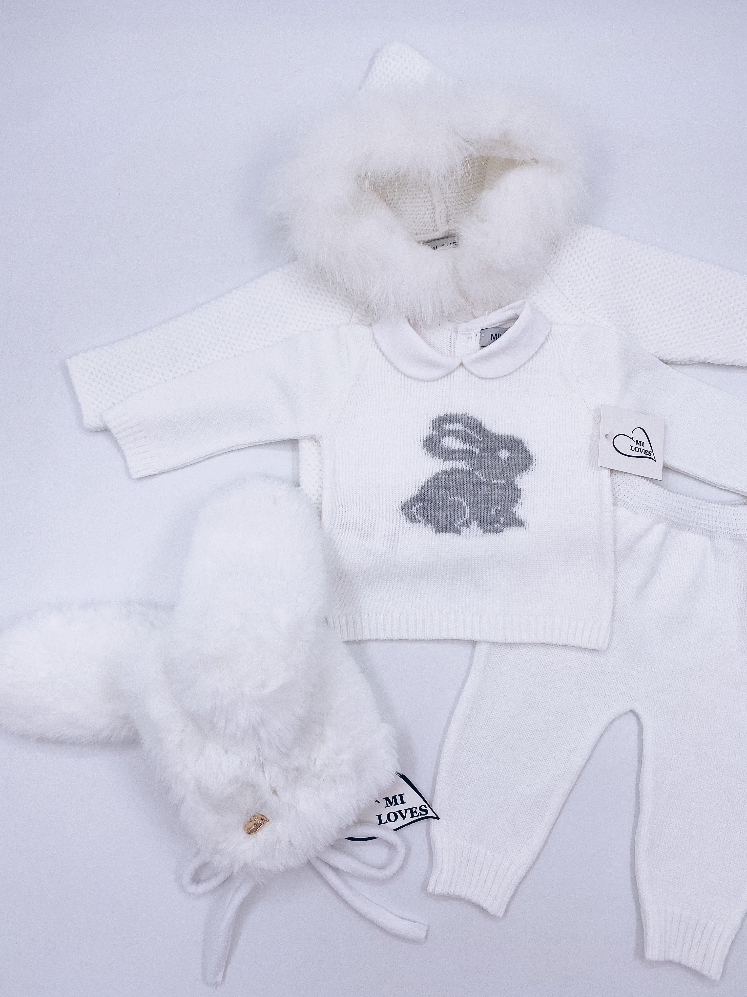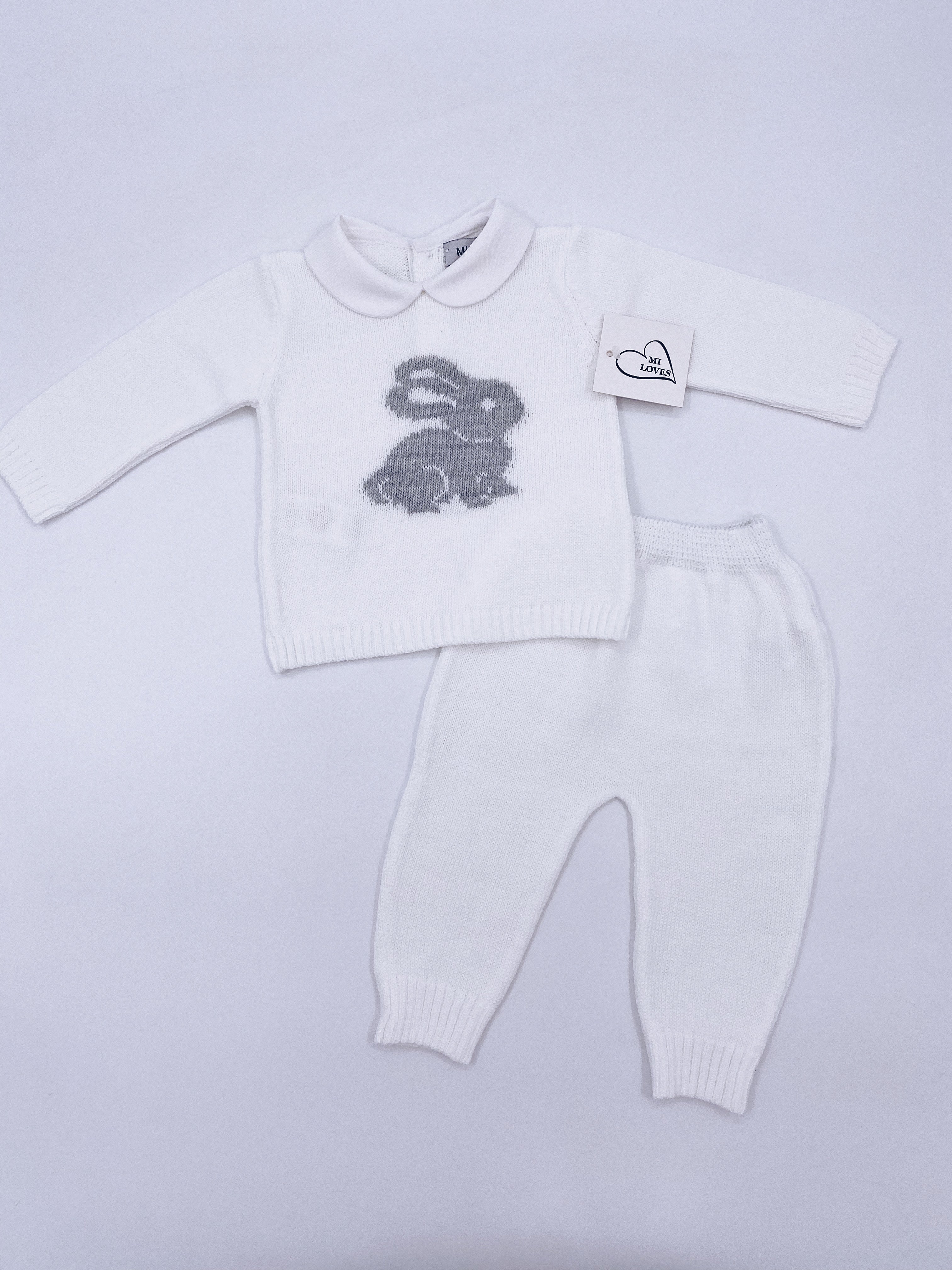 MI LOVES Signature Little Bunny knitted 2 piece suit in white
