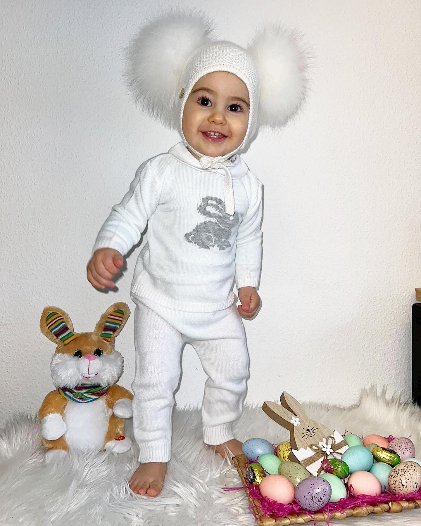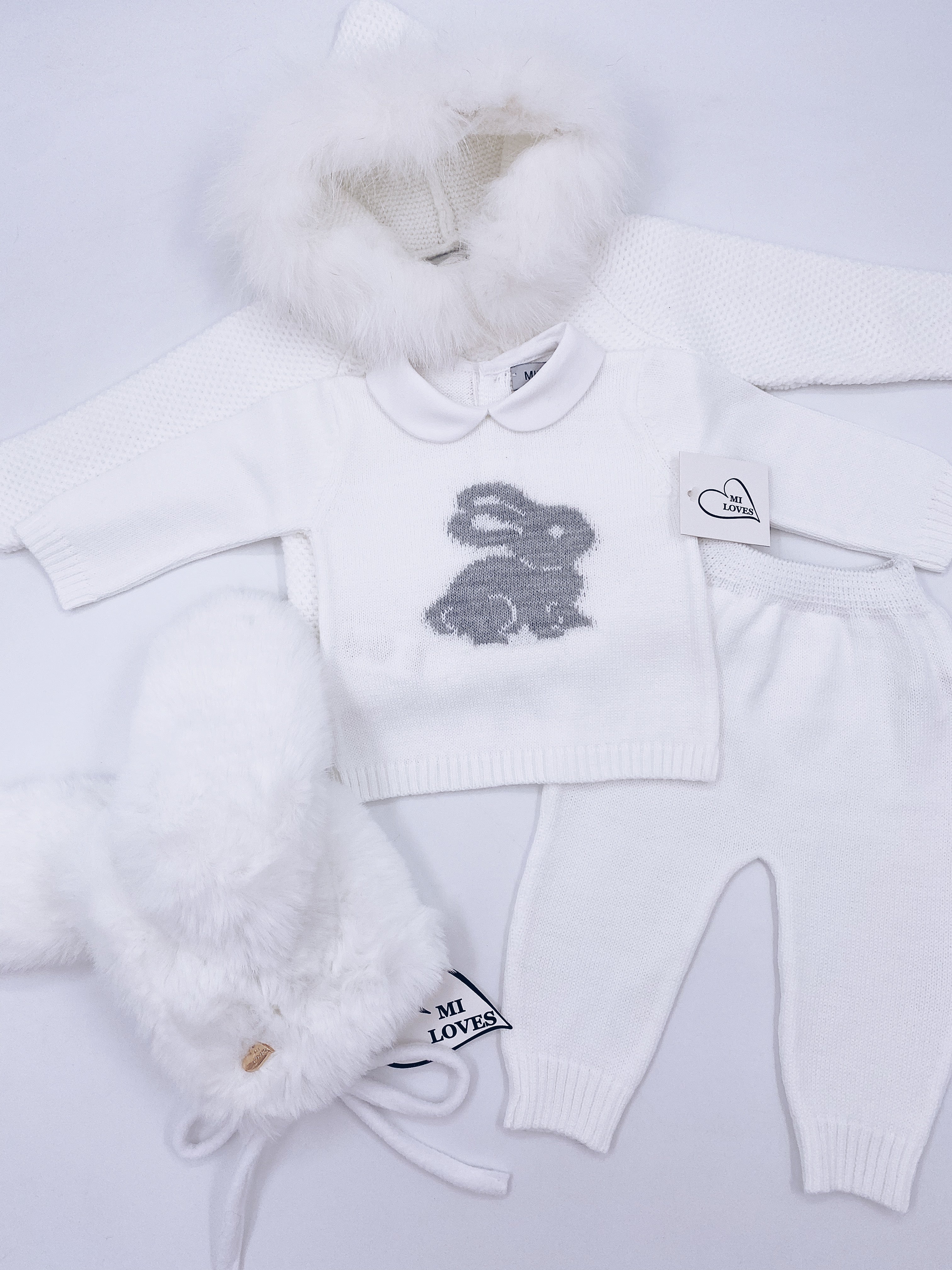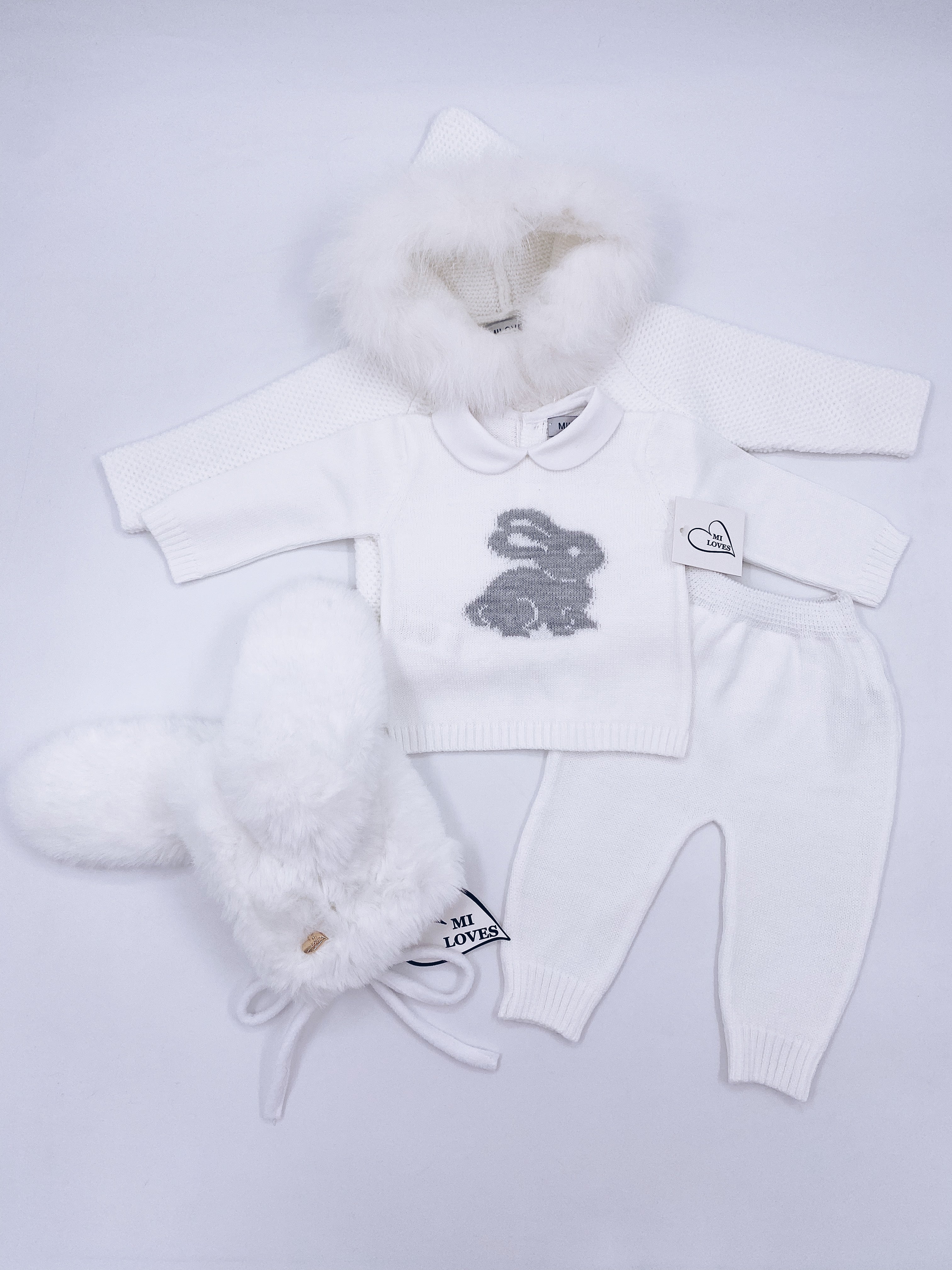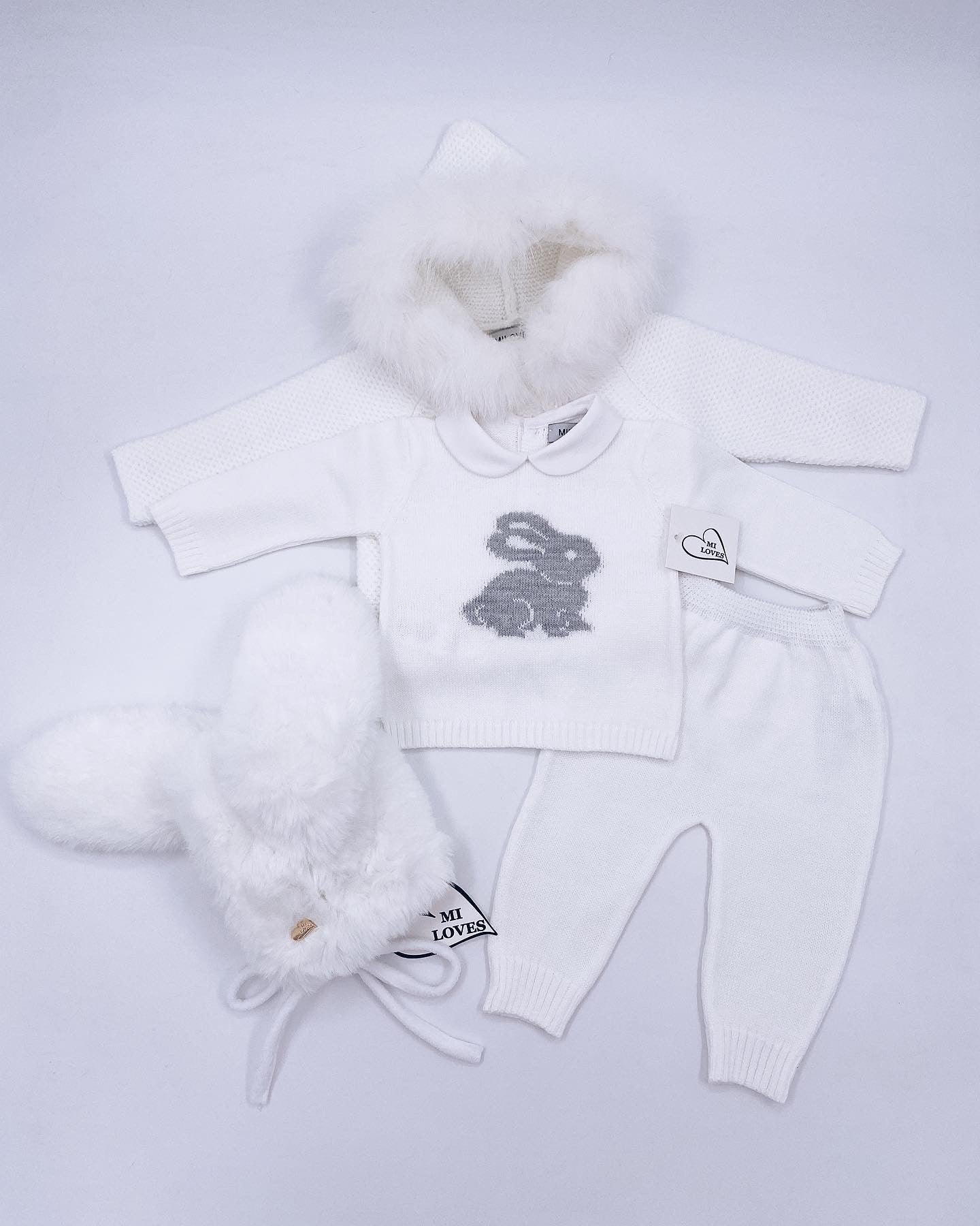 MI LOVES Signature Little Bunny knitted 2 piece suit in white
