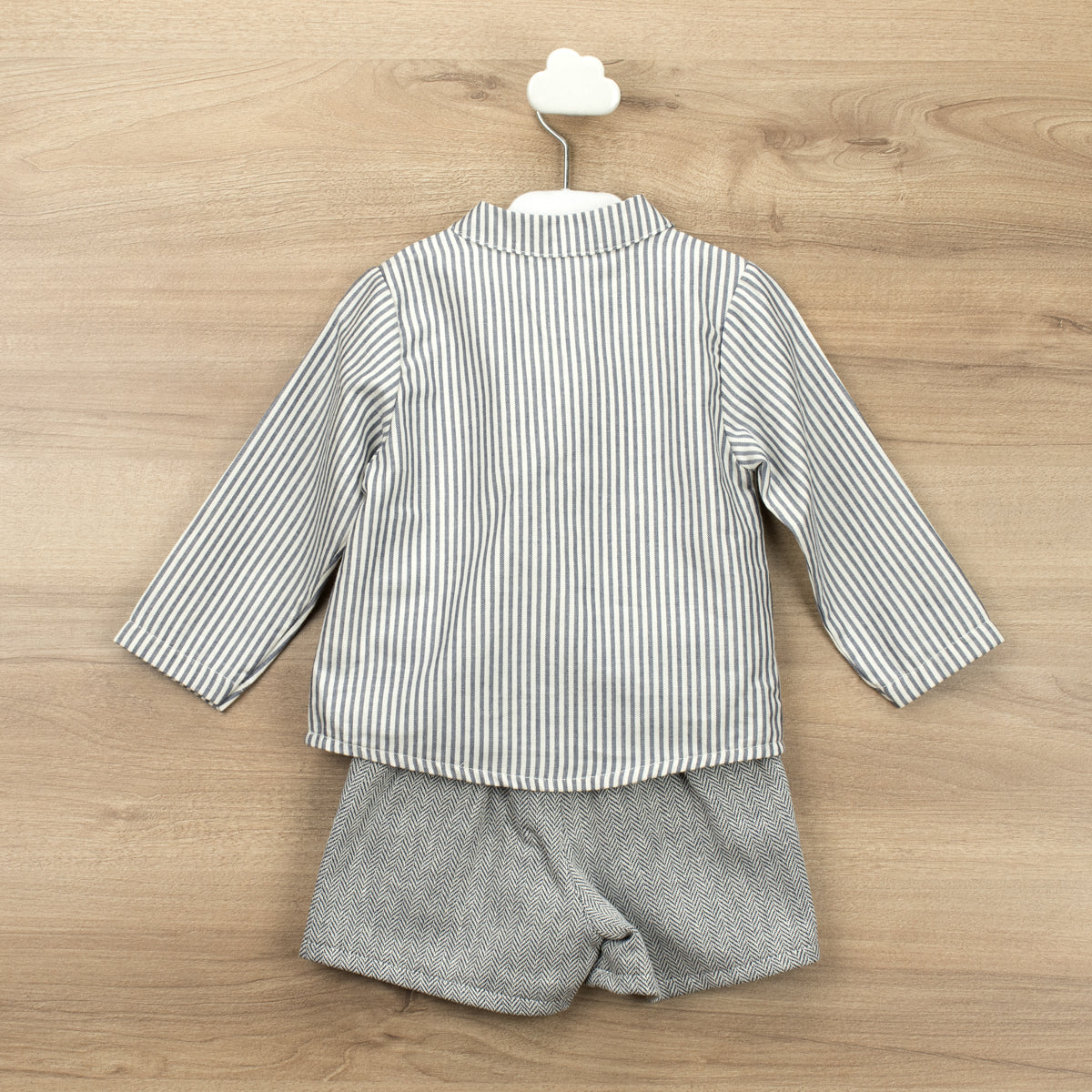 Navy Blue/Cream Striped Cotton Boys shorts 2 piece set.