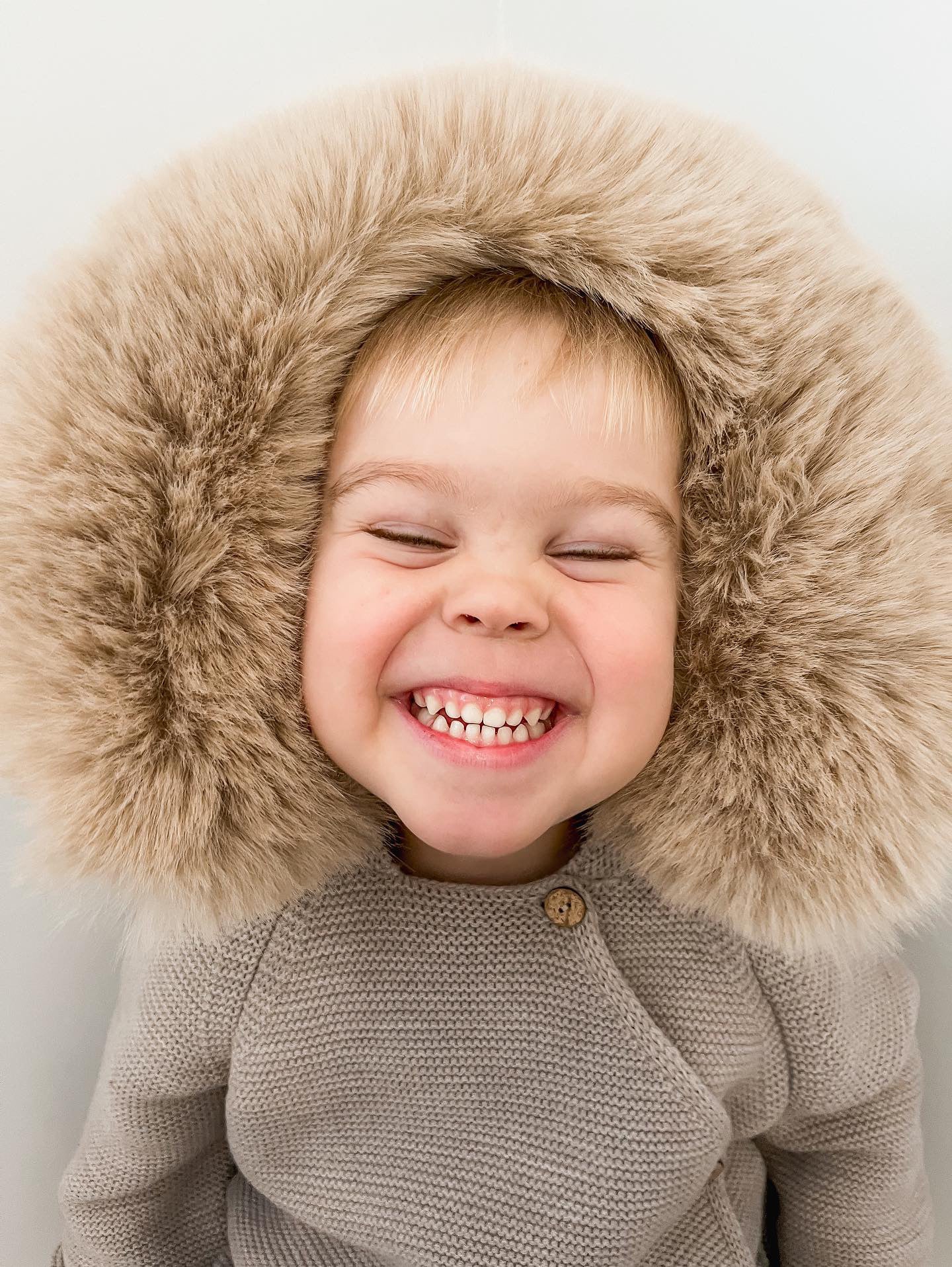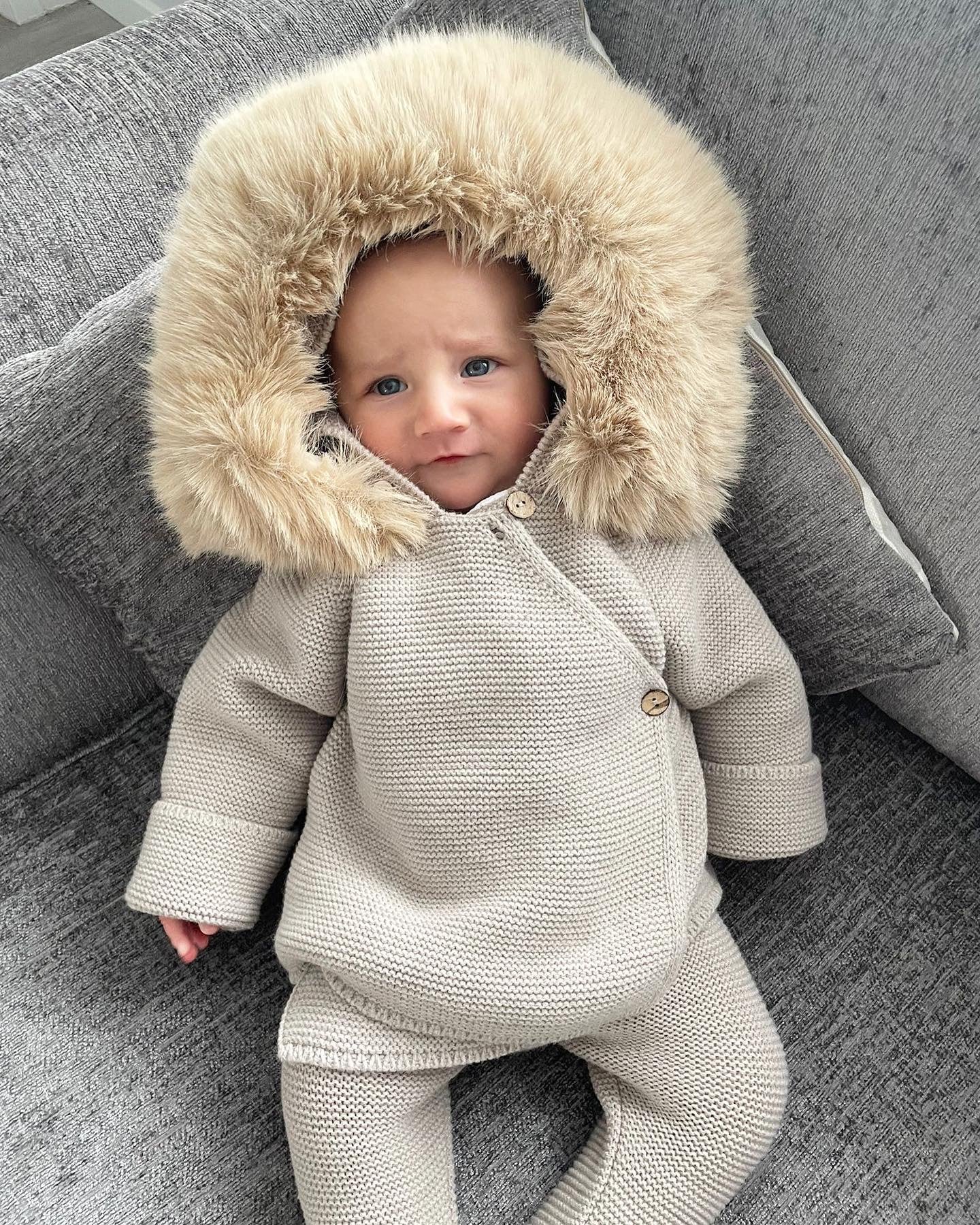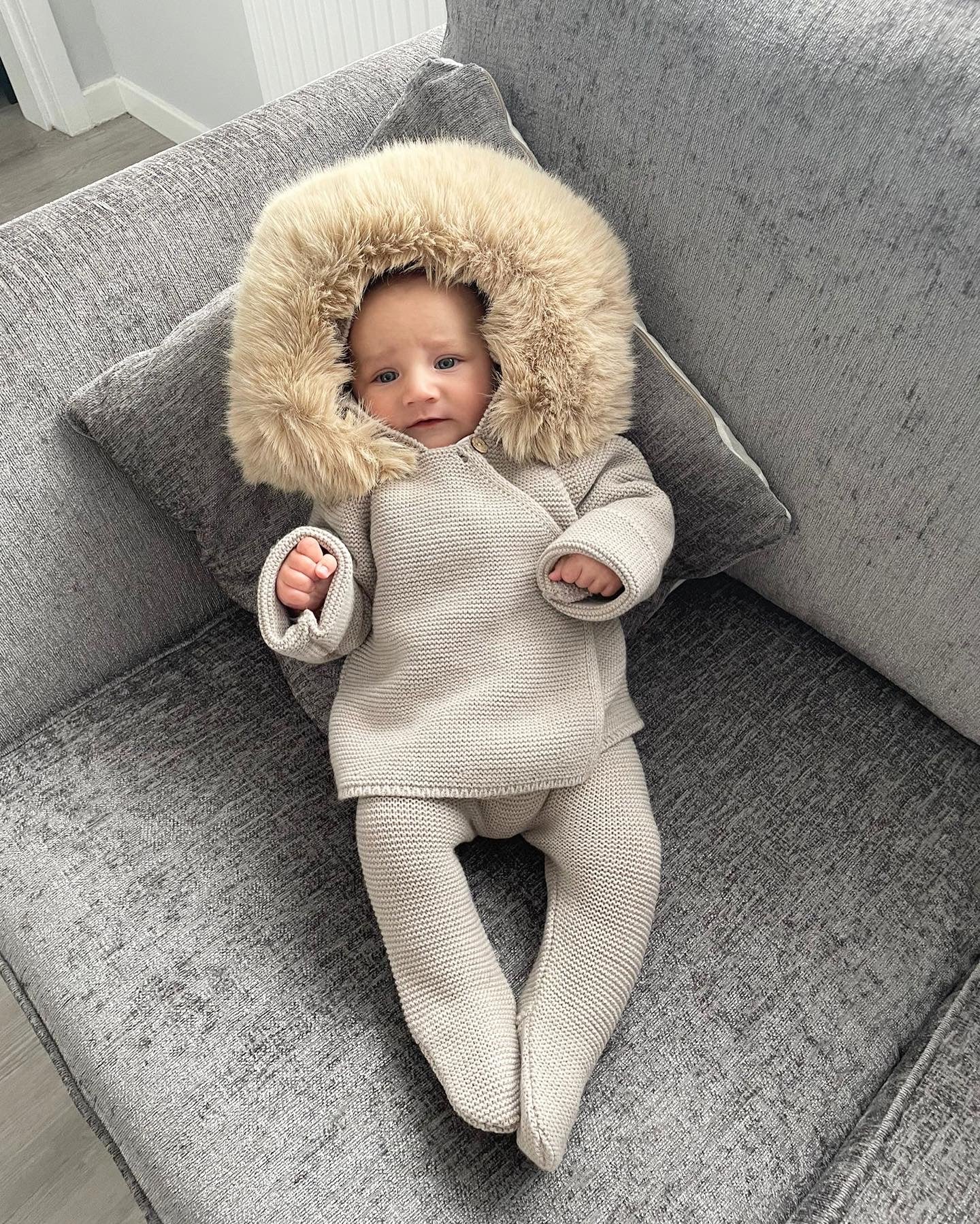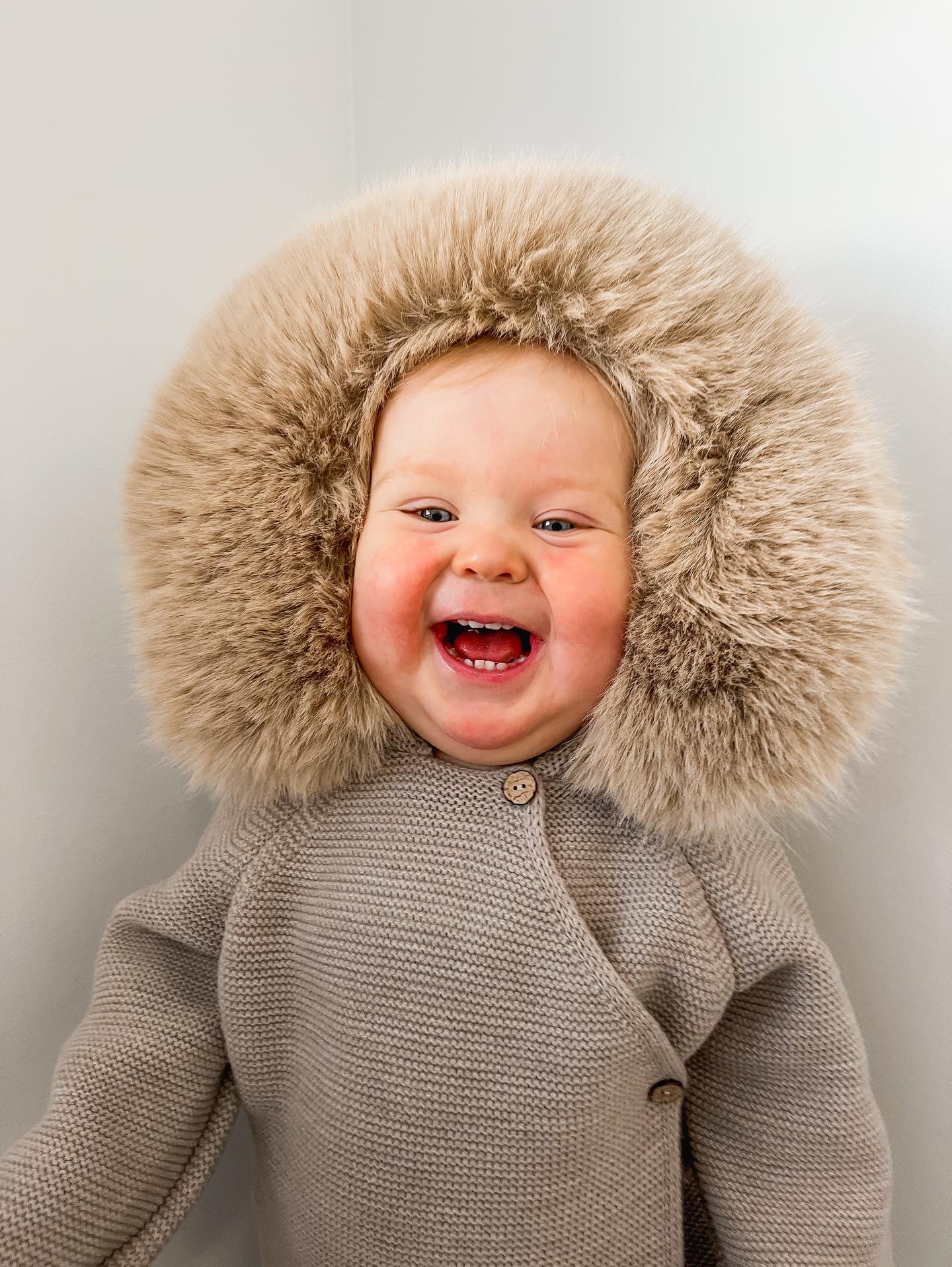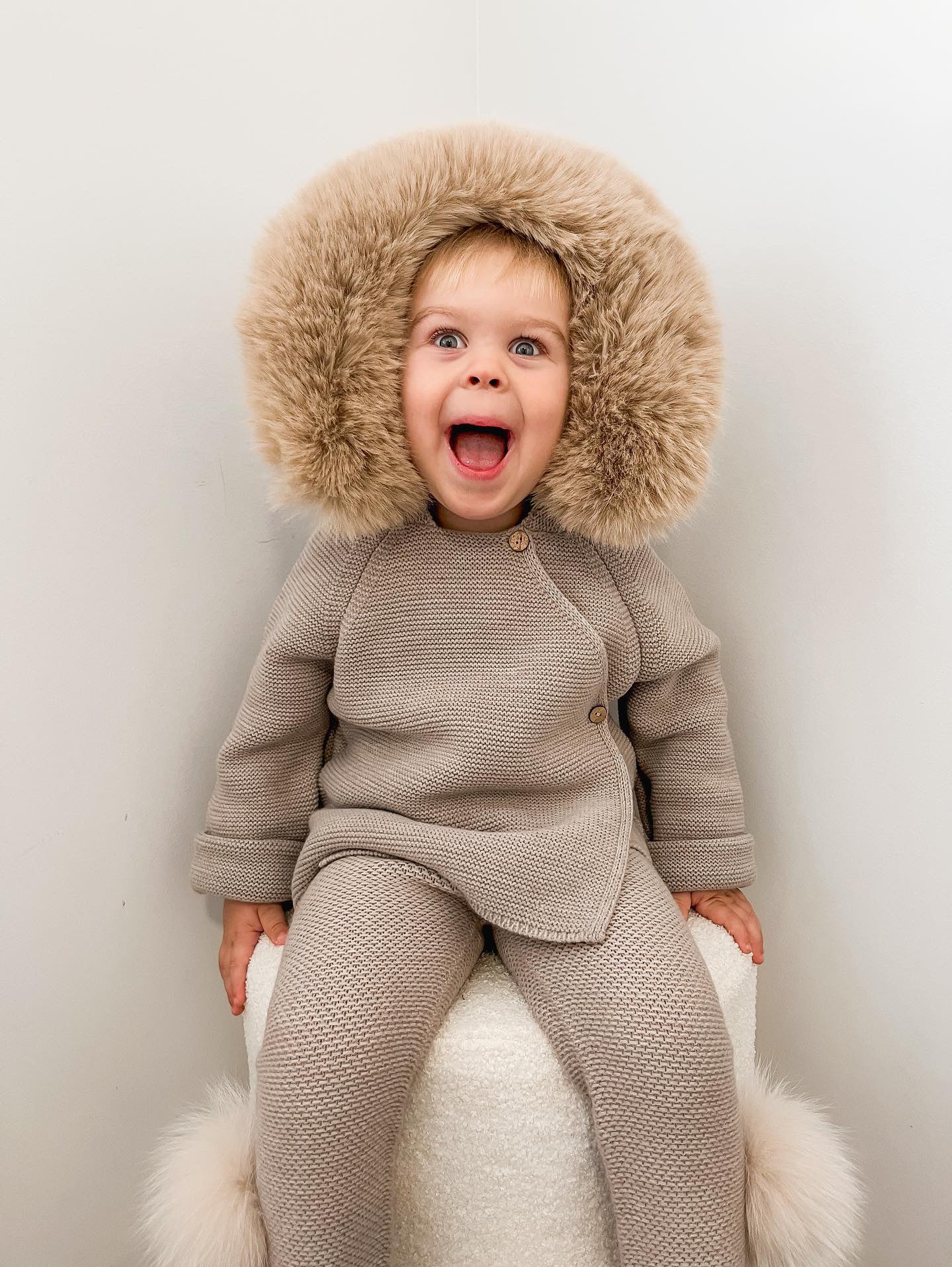 Beautiful Beige Knitted Cardigan with Synthetic fur trim.