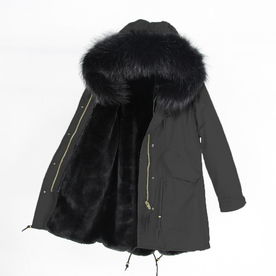 MI LOVES SIGNATURE Black parka jacket with Luxurious Natural/Brown Racoon Fur trim