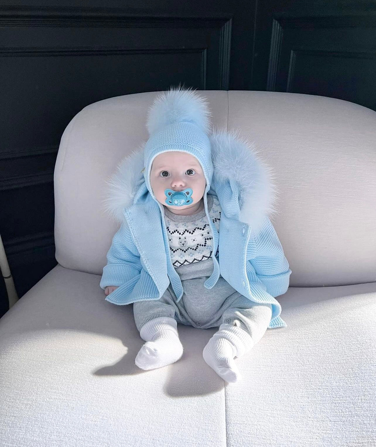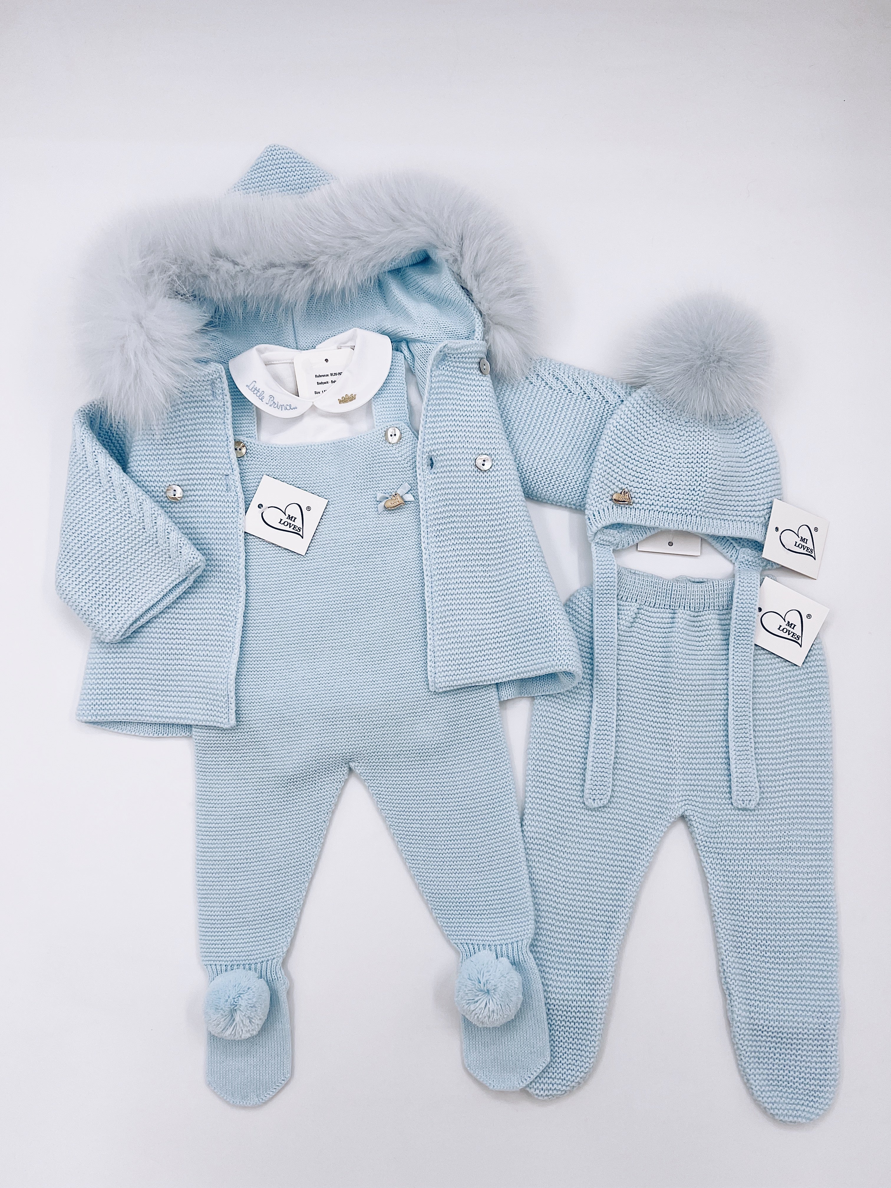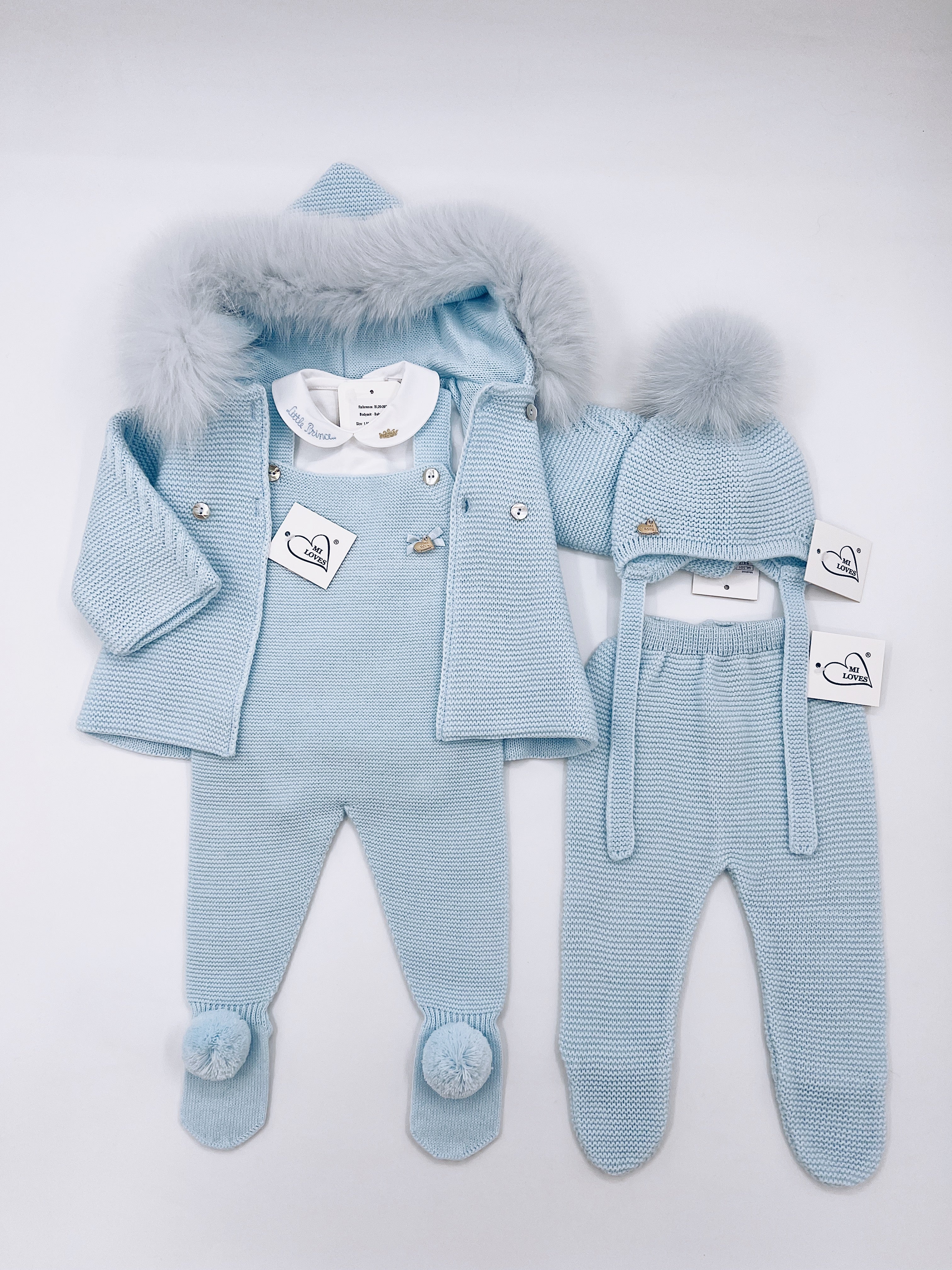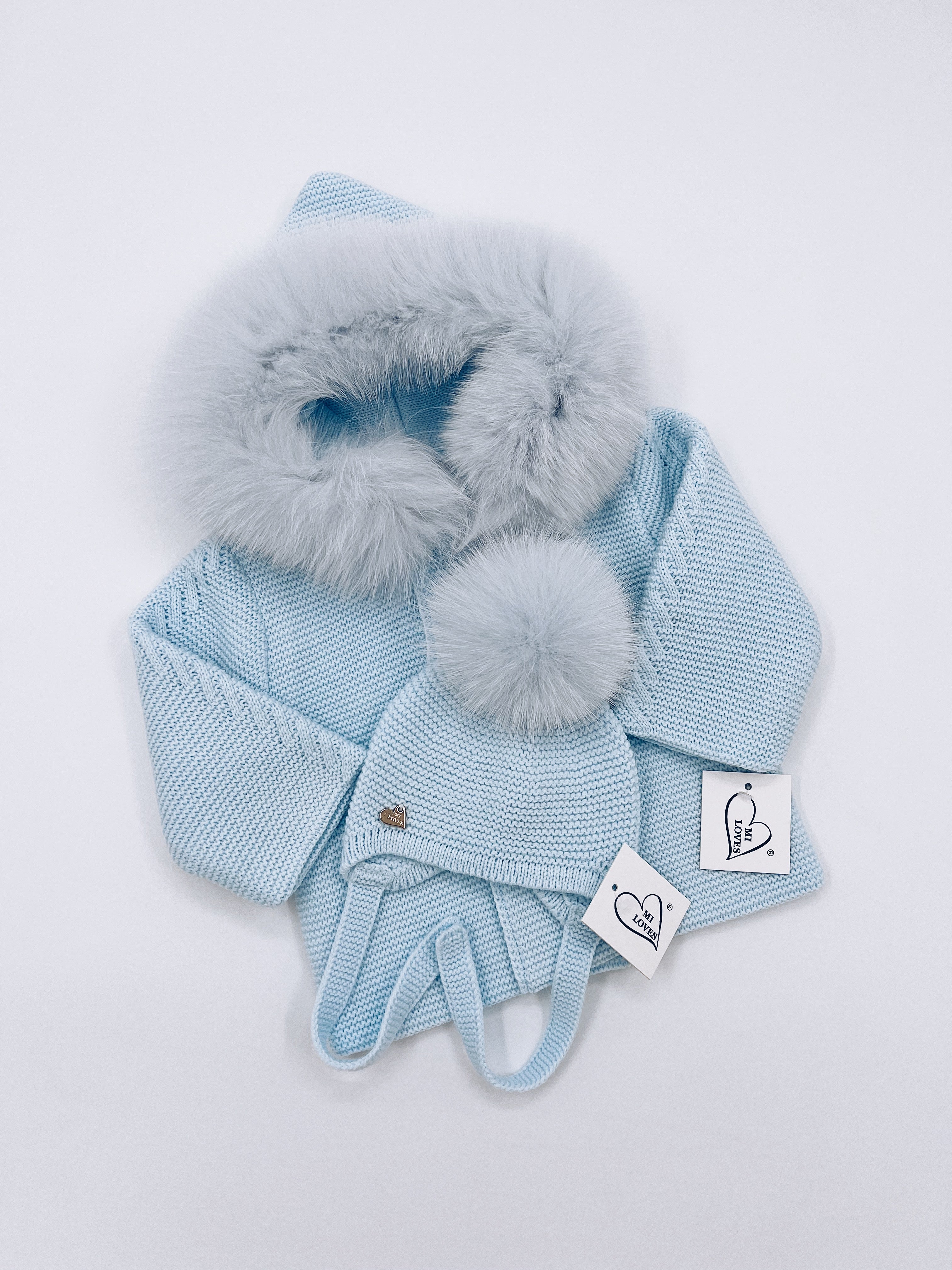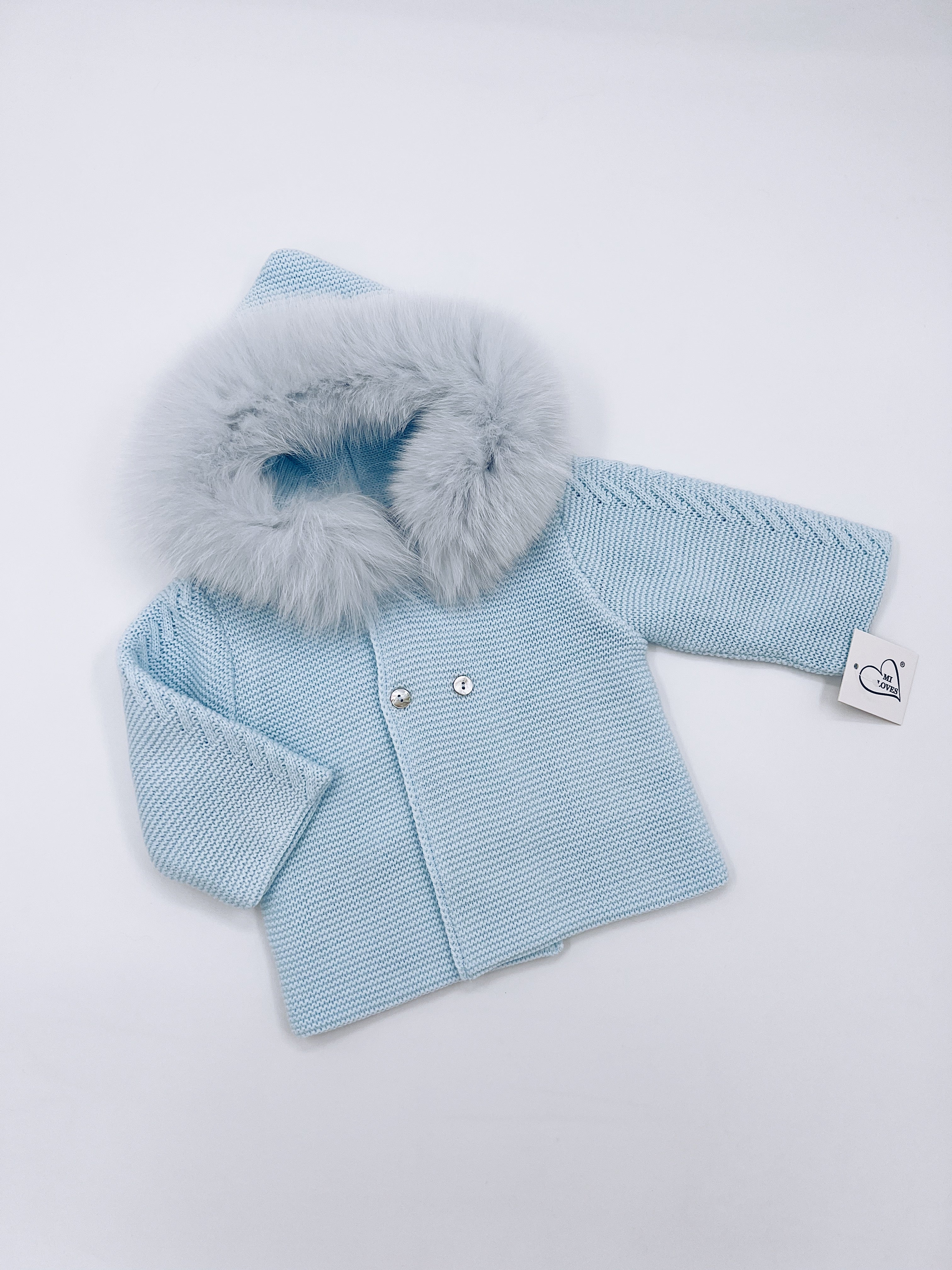 MI LOVES Beautiful Baby Blue Knitted Cardigan with Luxurious fur trim.