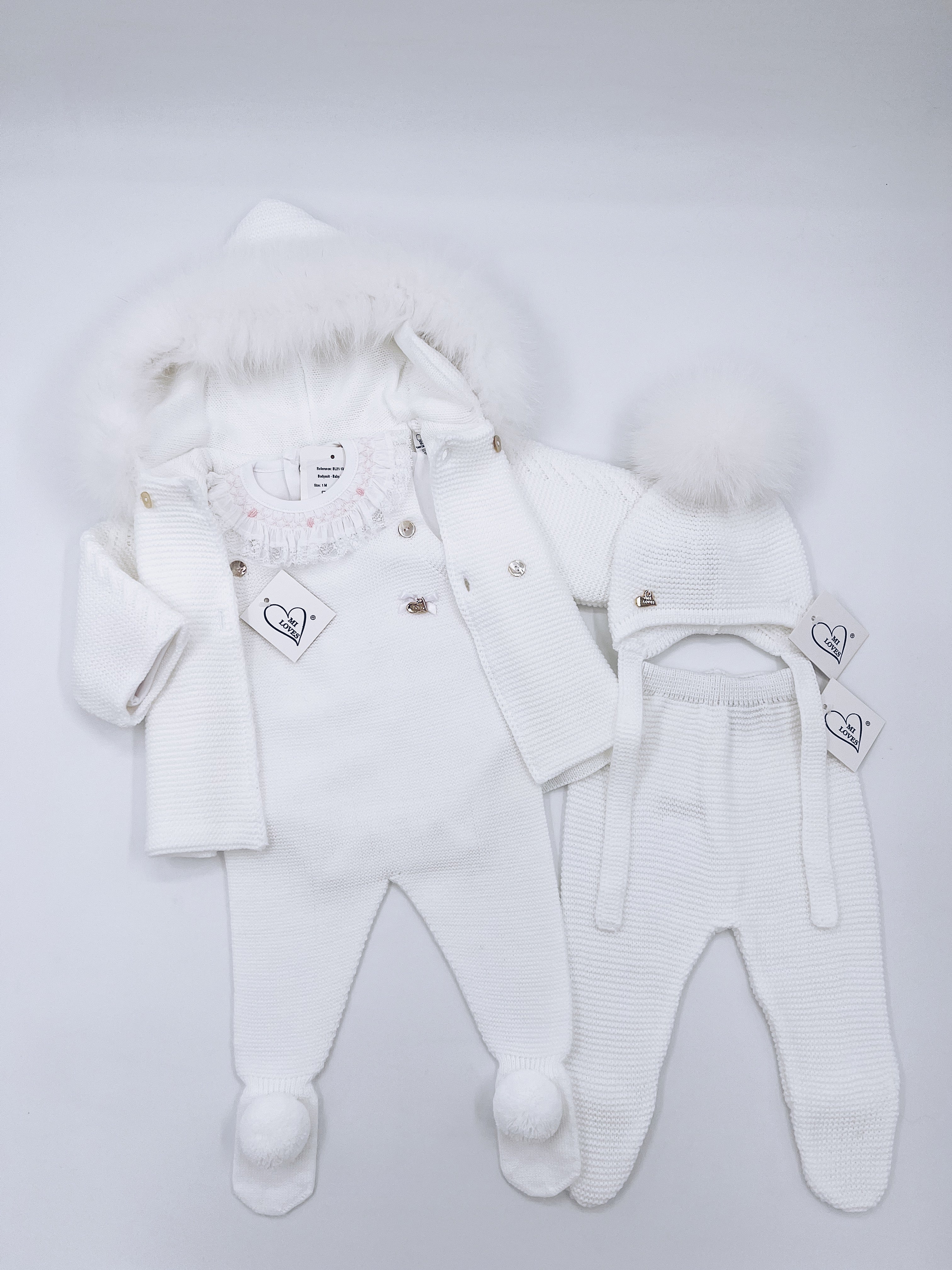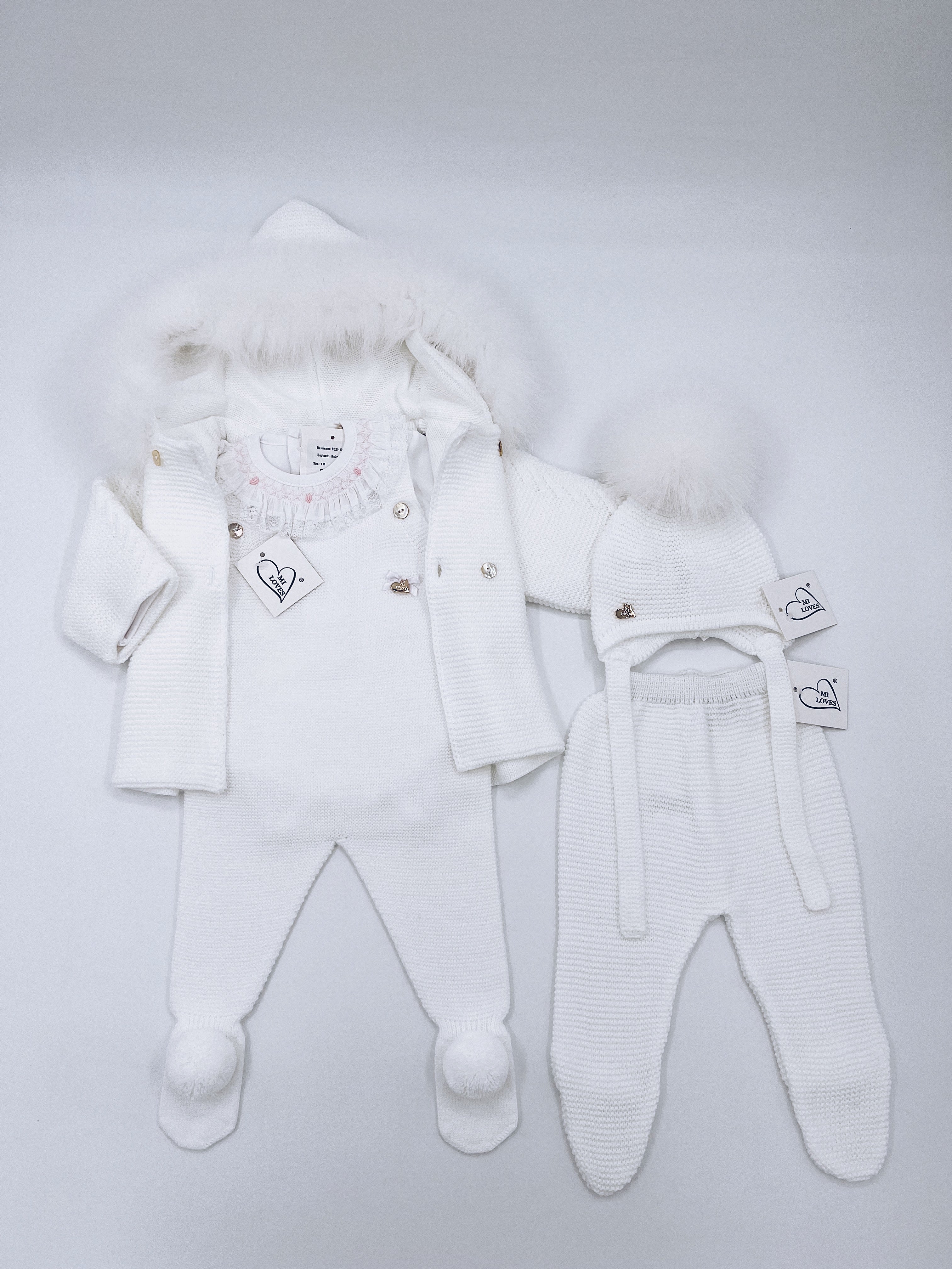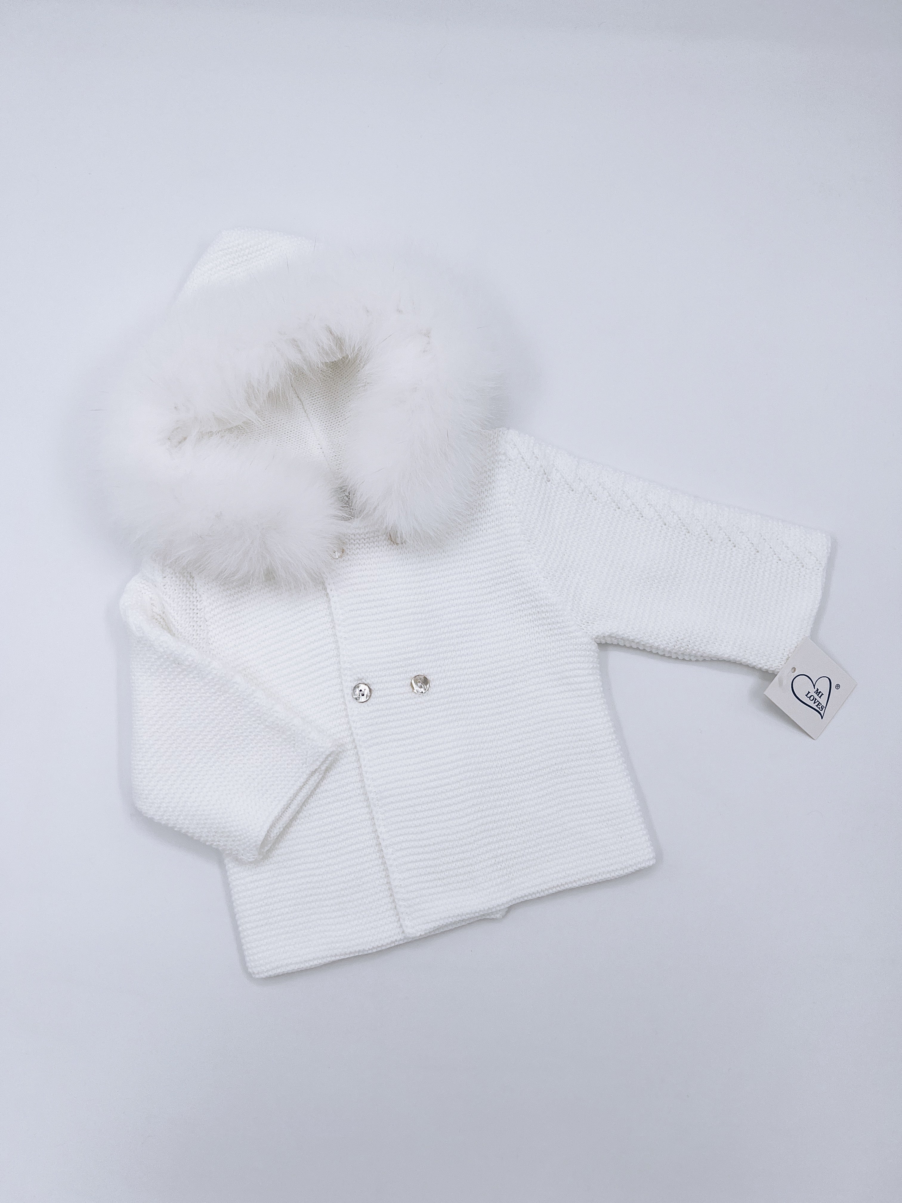 MI LOVES Beautiful White Knitted Cardigan with Luxurious fur trim.