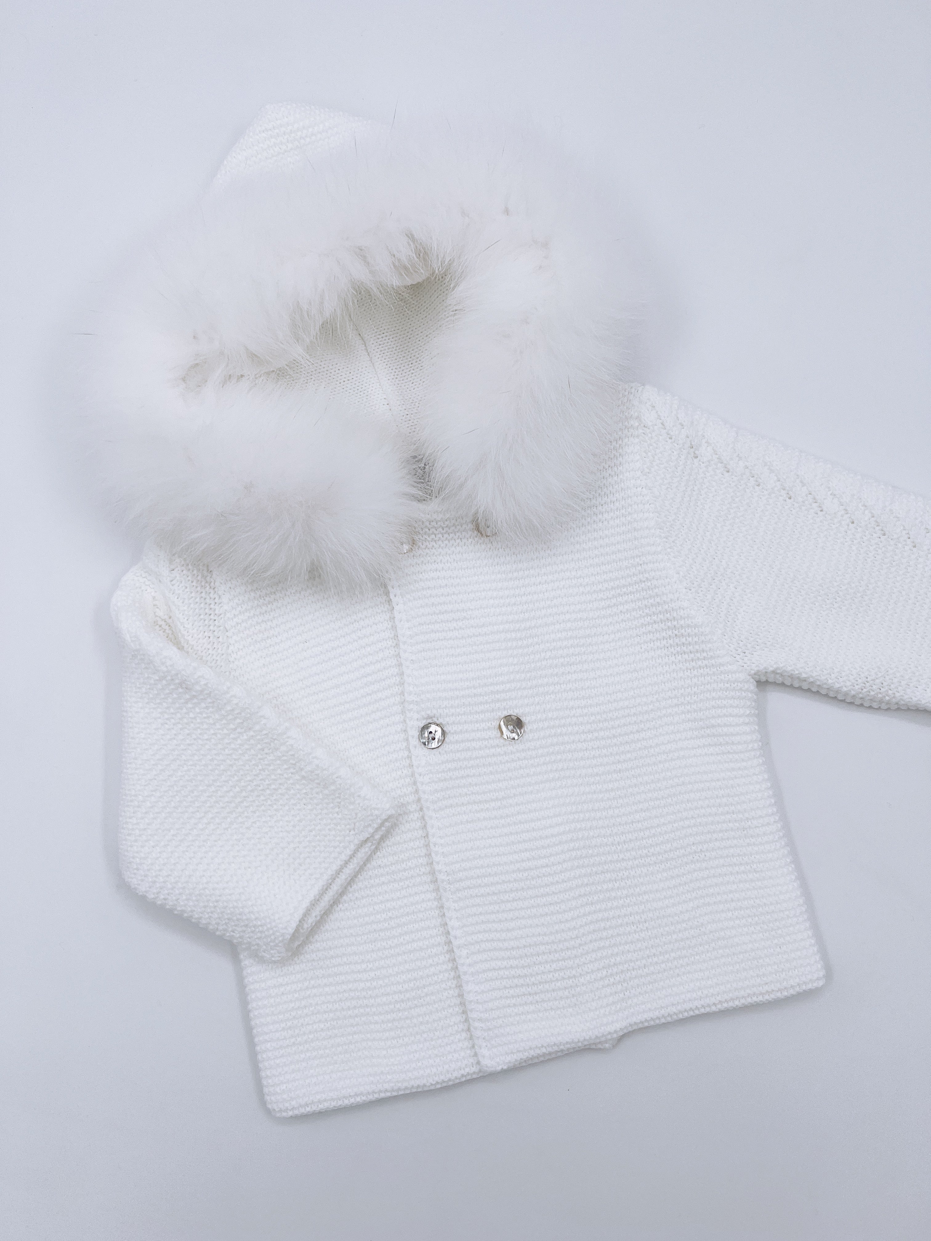 Beautiful White Knitted Cardigan with Luxurious fur trim.