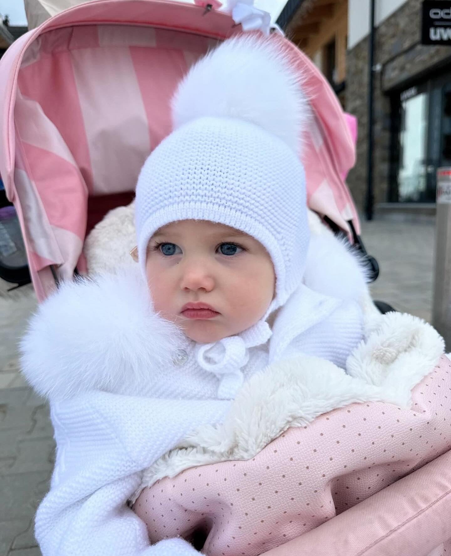 Matching pompom hat,dungarees,knitted leggings,bodysuit SOLD SEPARATELY(available on the website)