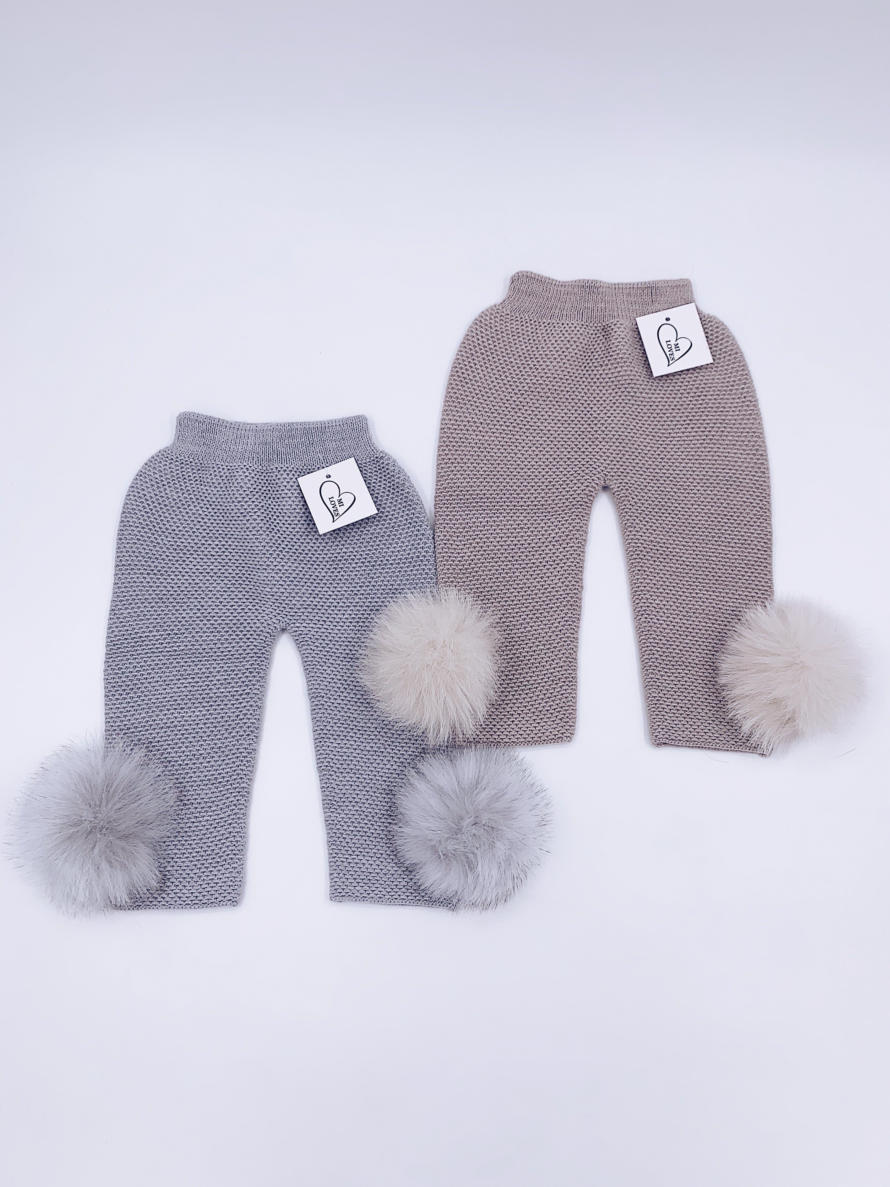 MI LOVES SIGNATURE Luxurious knitted Trousers with fox fur pompoms.