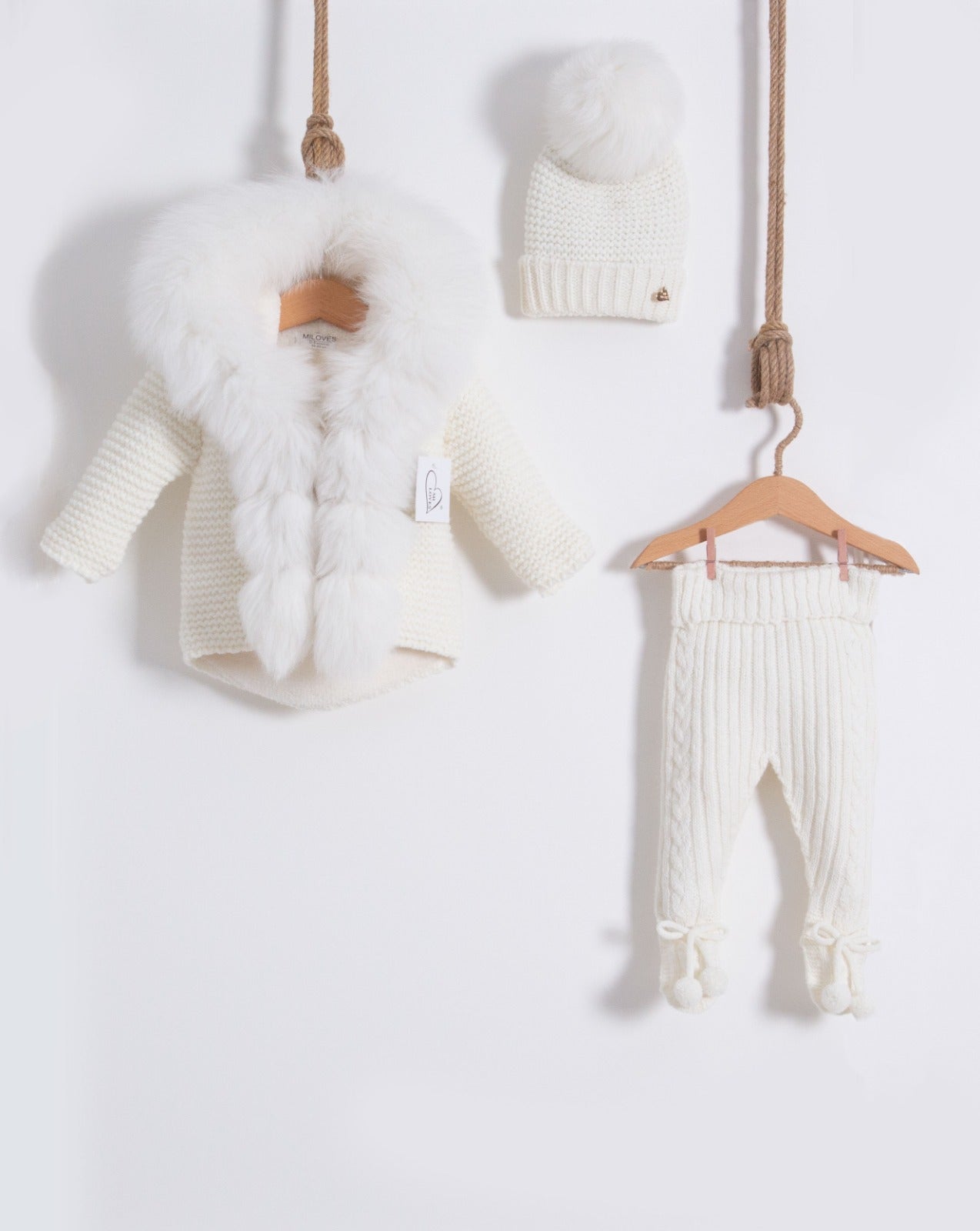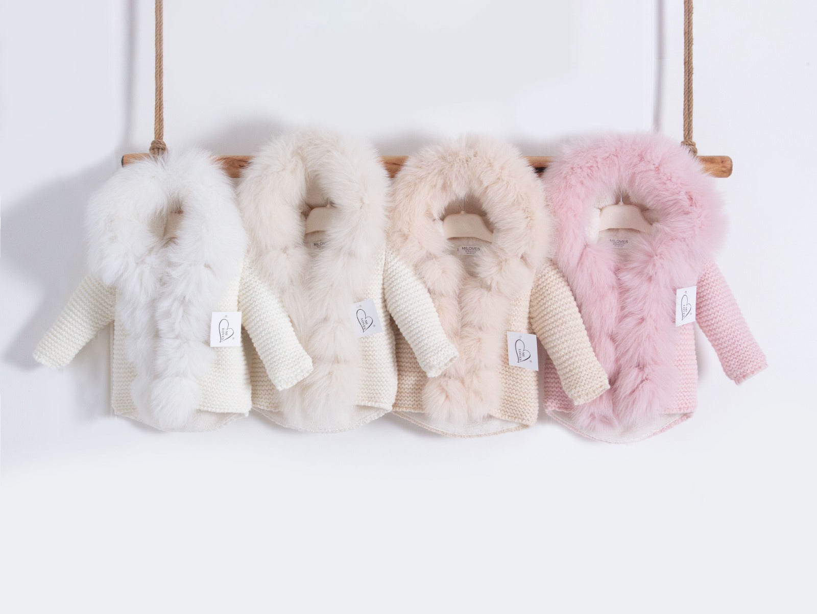 WHITE MI LOVES SIGNATURE Knitted Cardigan with Luxurious Fox fur trim.