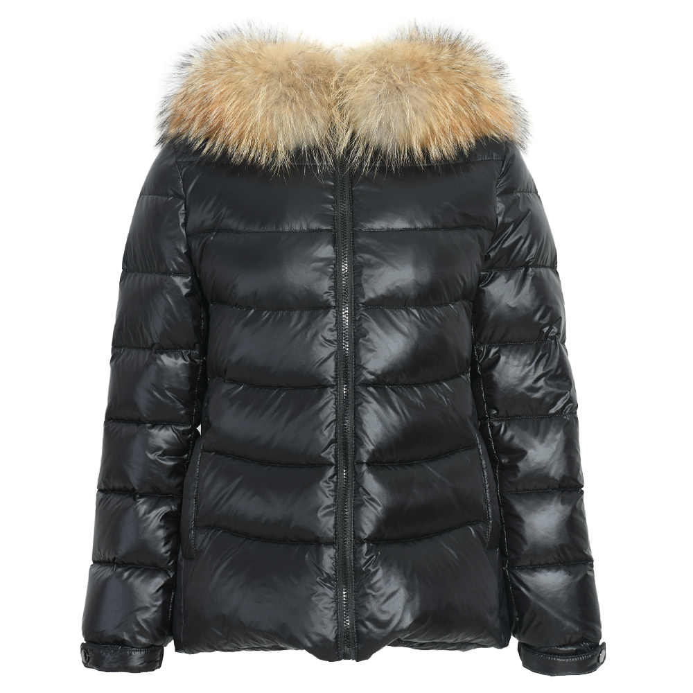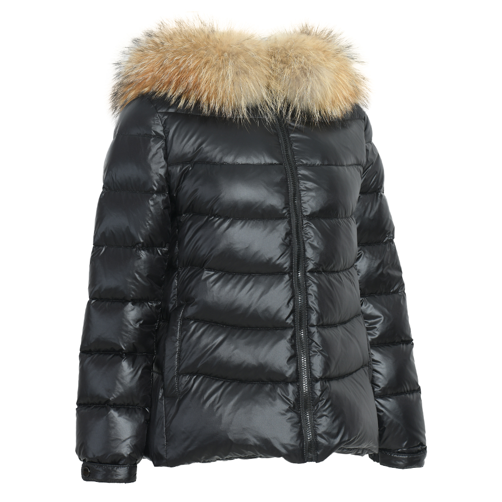 ADULTS/BIG KIDS MI LOVES SIGNATURE Luxurious Racoon Fur Trim puff jacket in Black colour .Beautiful ,warm with Detachable luxurious Racoon fur trim .