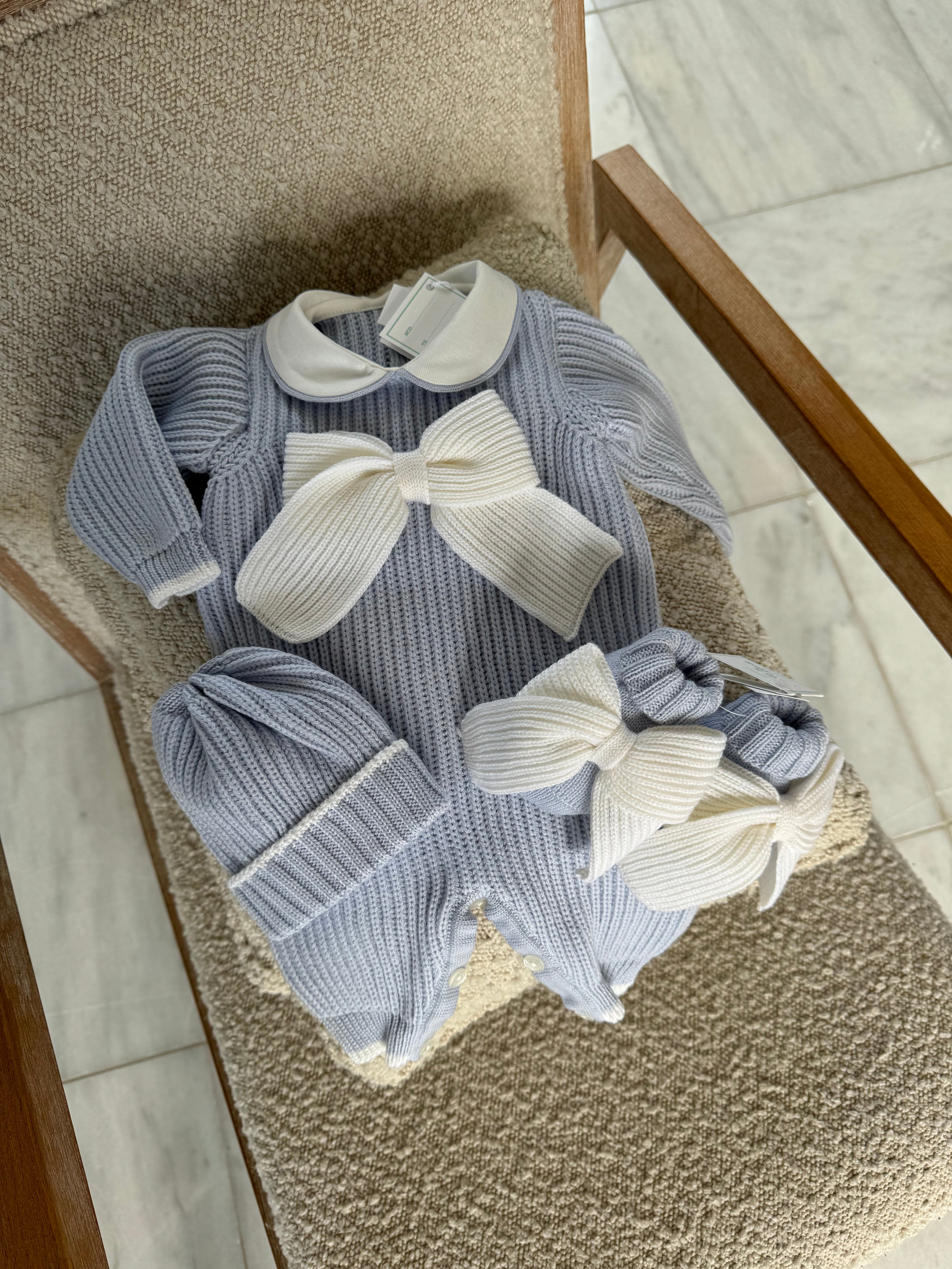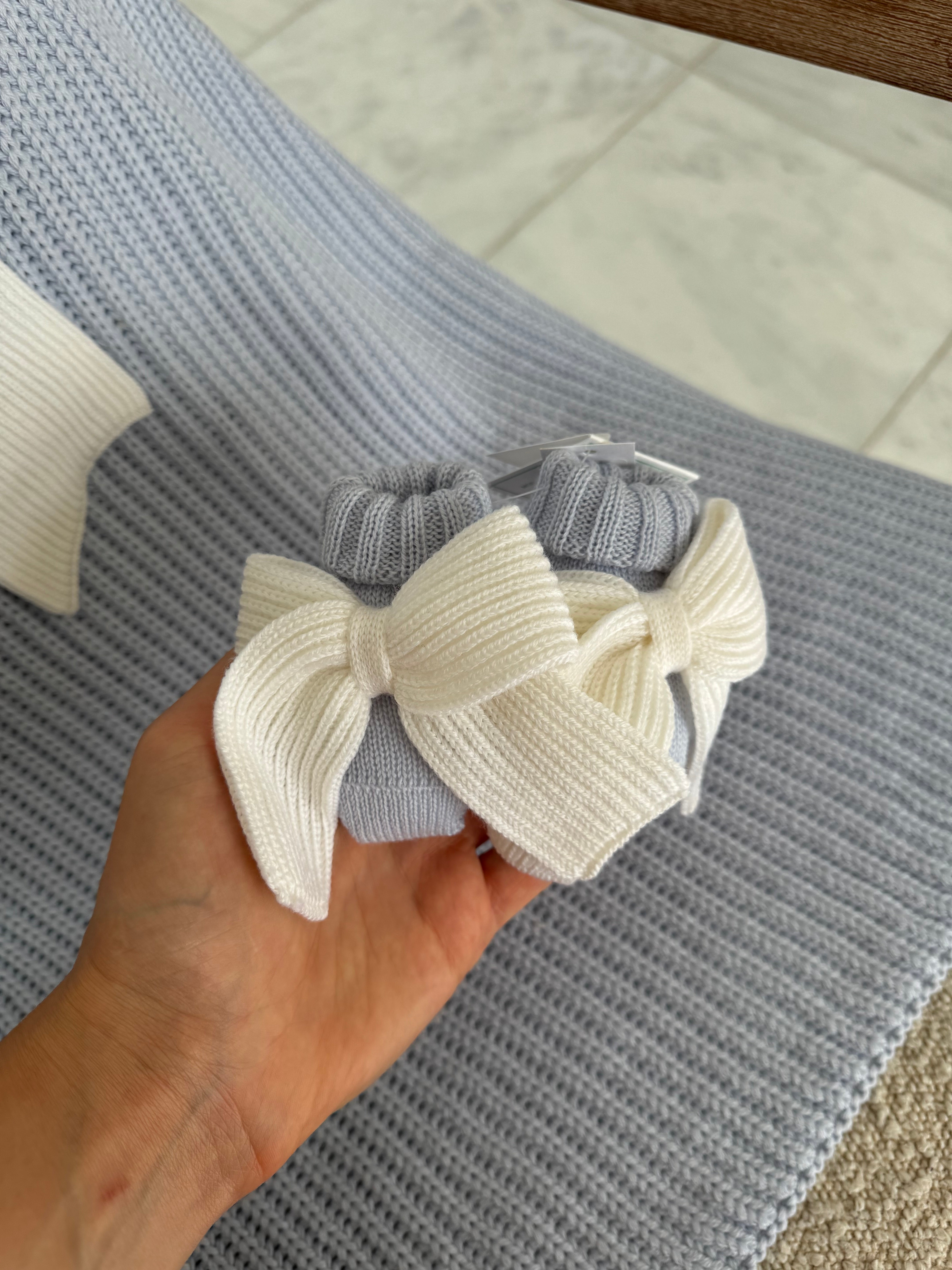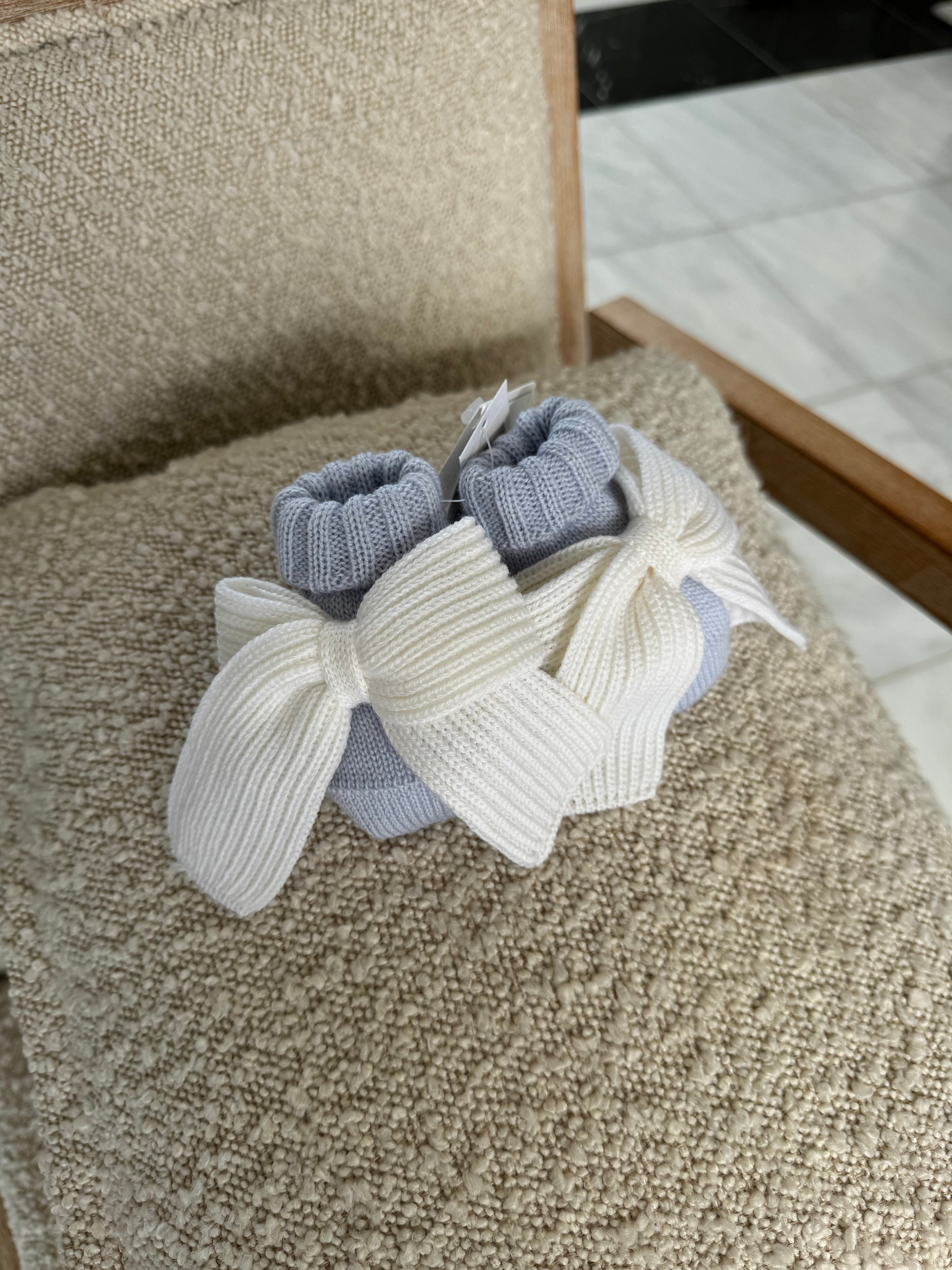 Beautiful knitted Merino Wool Blue Baby Booties with Bow details.