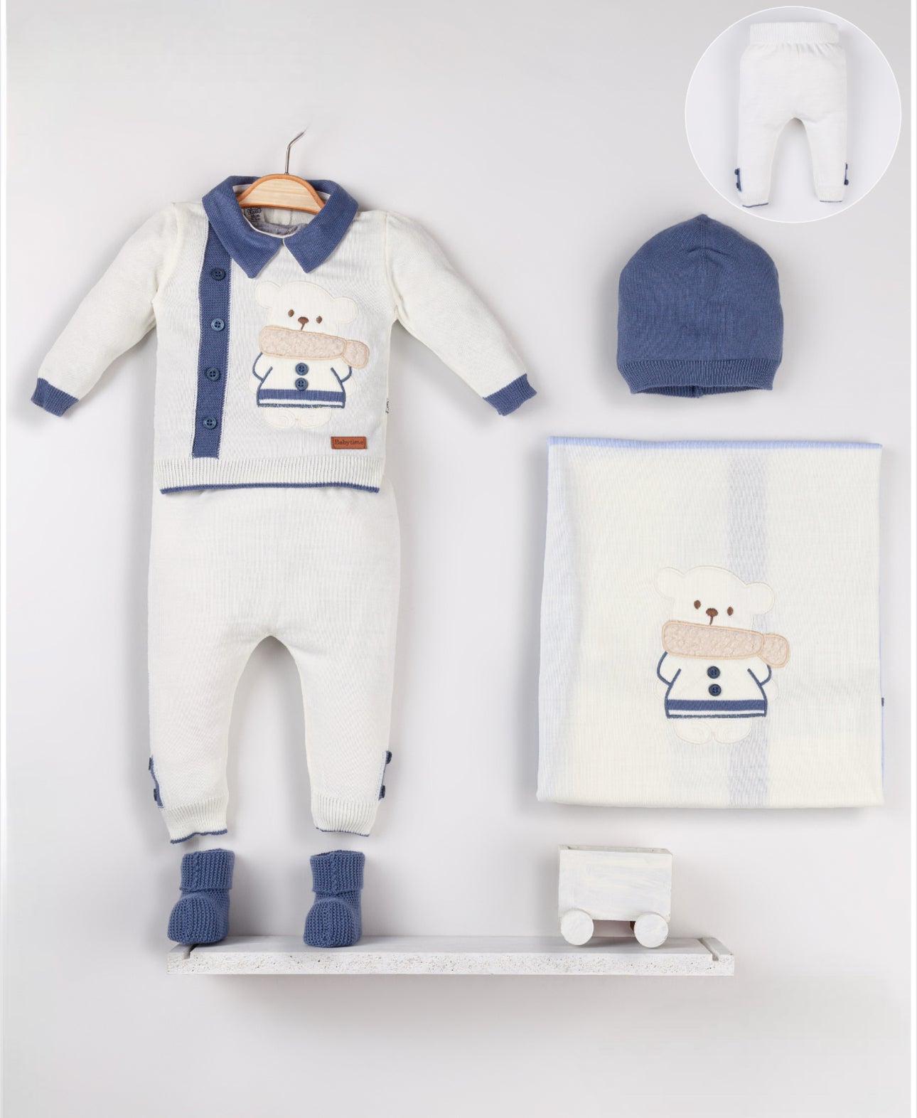 Beautiful Teddy 5 piece Hospital/Coming home set(including Blanket/Knitted top/Pants/Booties/Hat)