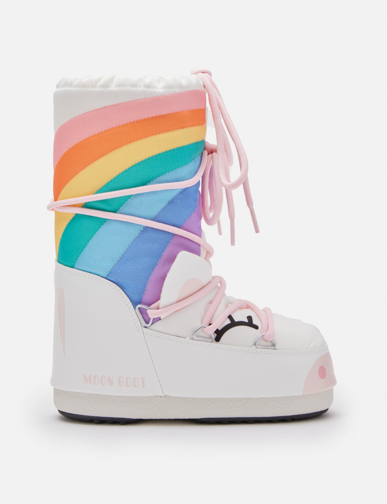 Neil Armstrong may have taken one small step for man, but the original Moon Boot took one giant leap for footwear. Inspired by the 1969 lunar landing, the inimitable Icon riffs on high-technology astronaut gear. This unicorn pair – which is complete with a rainbow upper, eyes and ears – is insulated, fitted with a lightweight mid sole and features suction pads on the rubber tread sole that offer serious ground control.