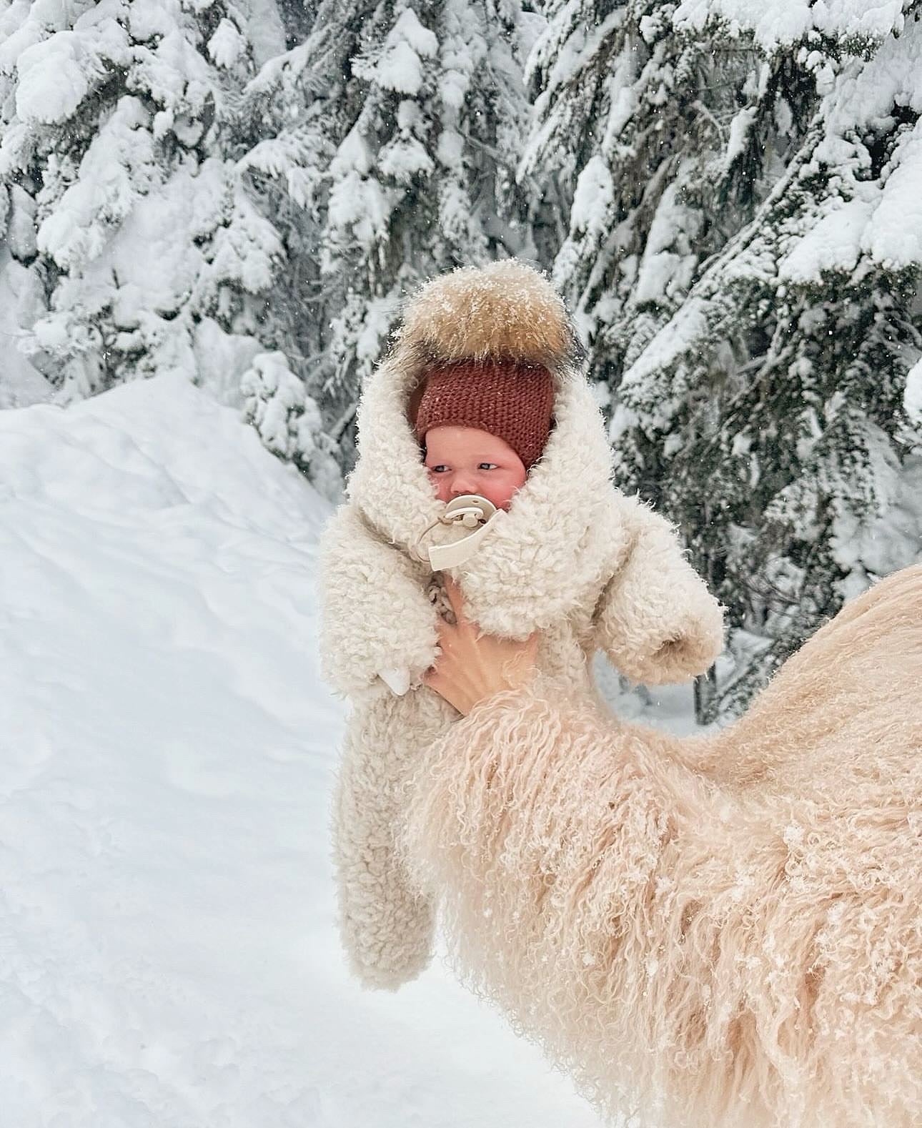 MI LOVES SIGNATURE SYNTHETIC Little Bear Pramsuit in Ivory