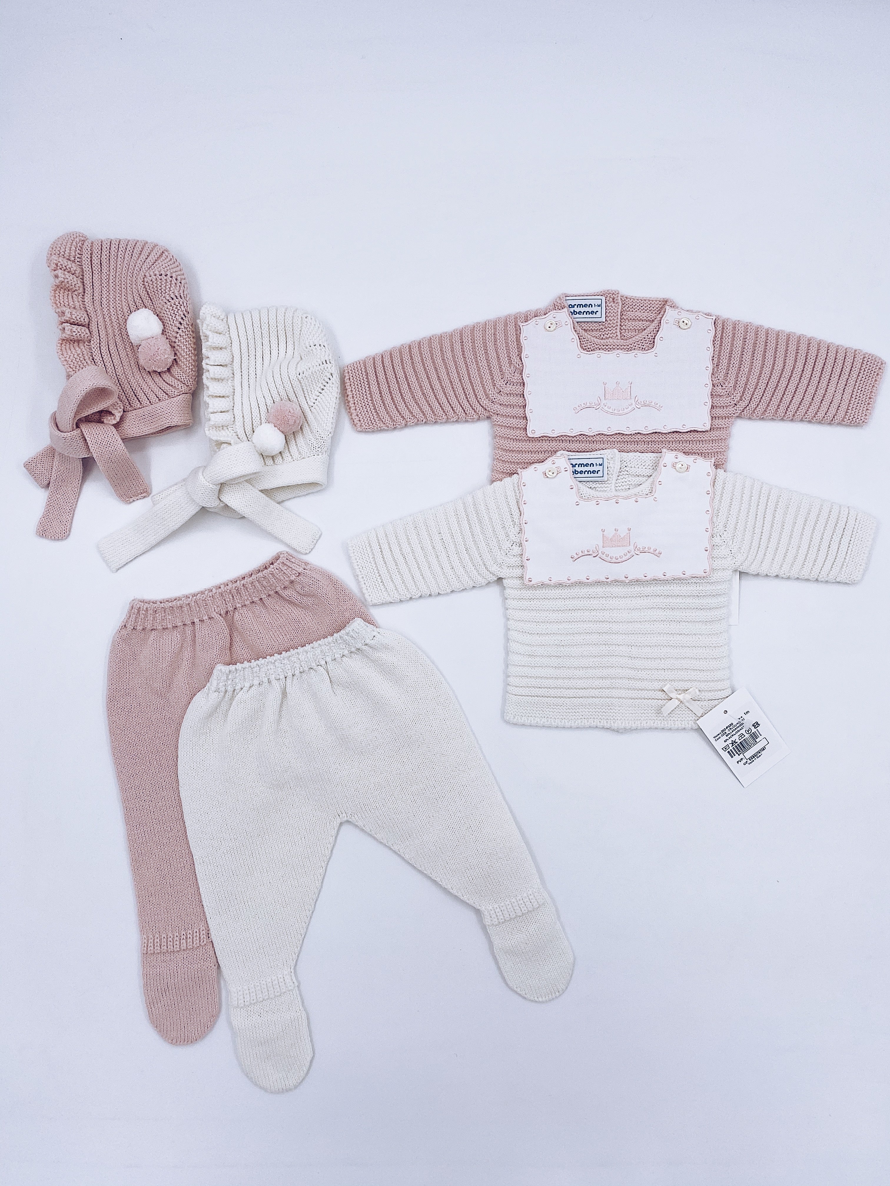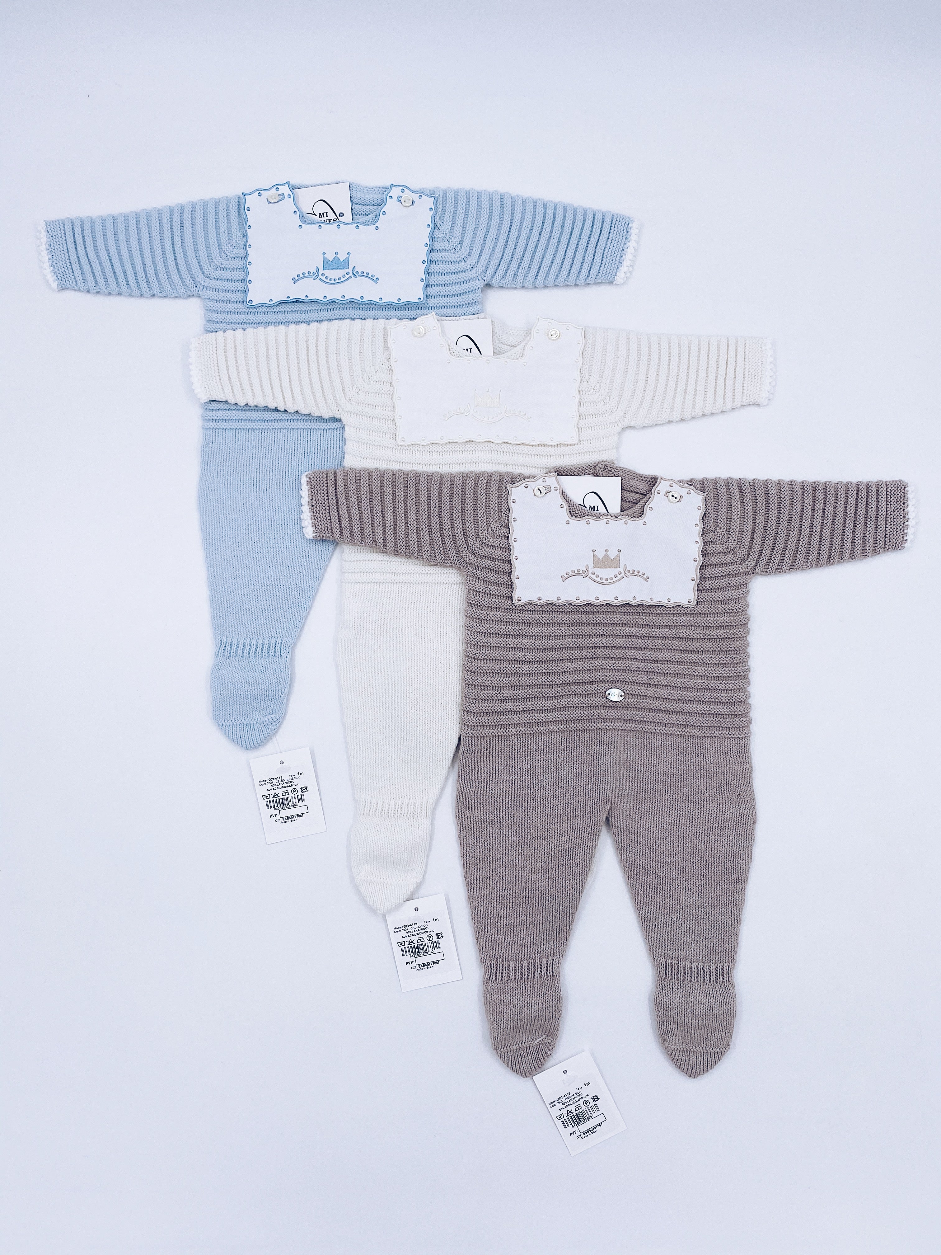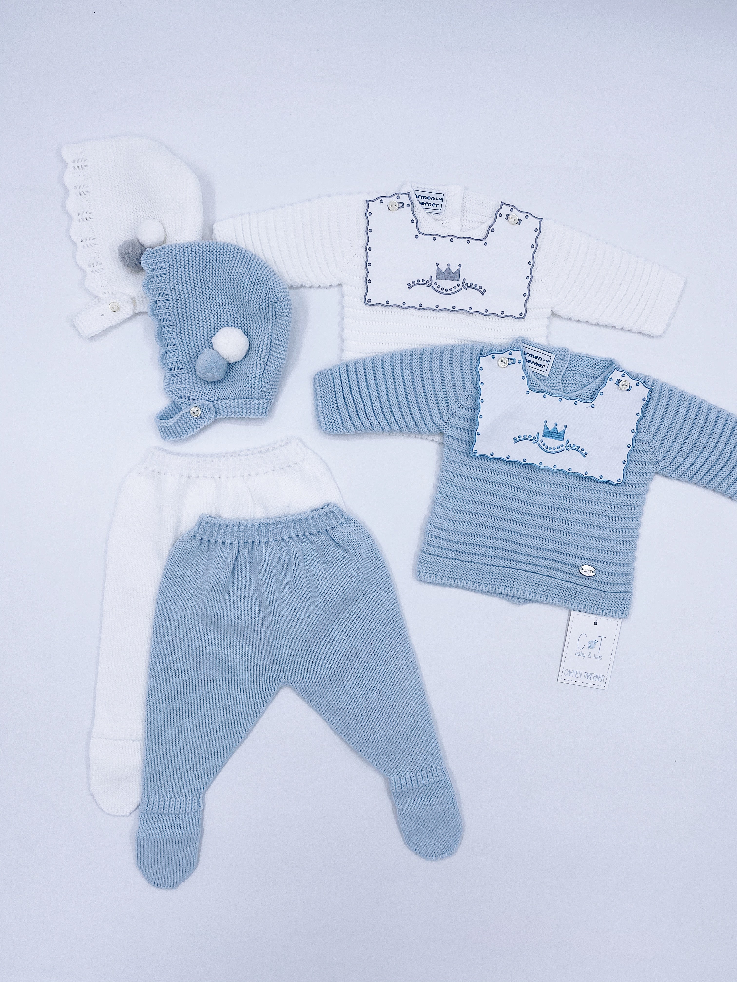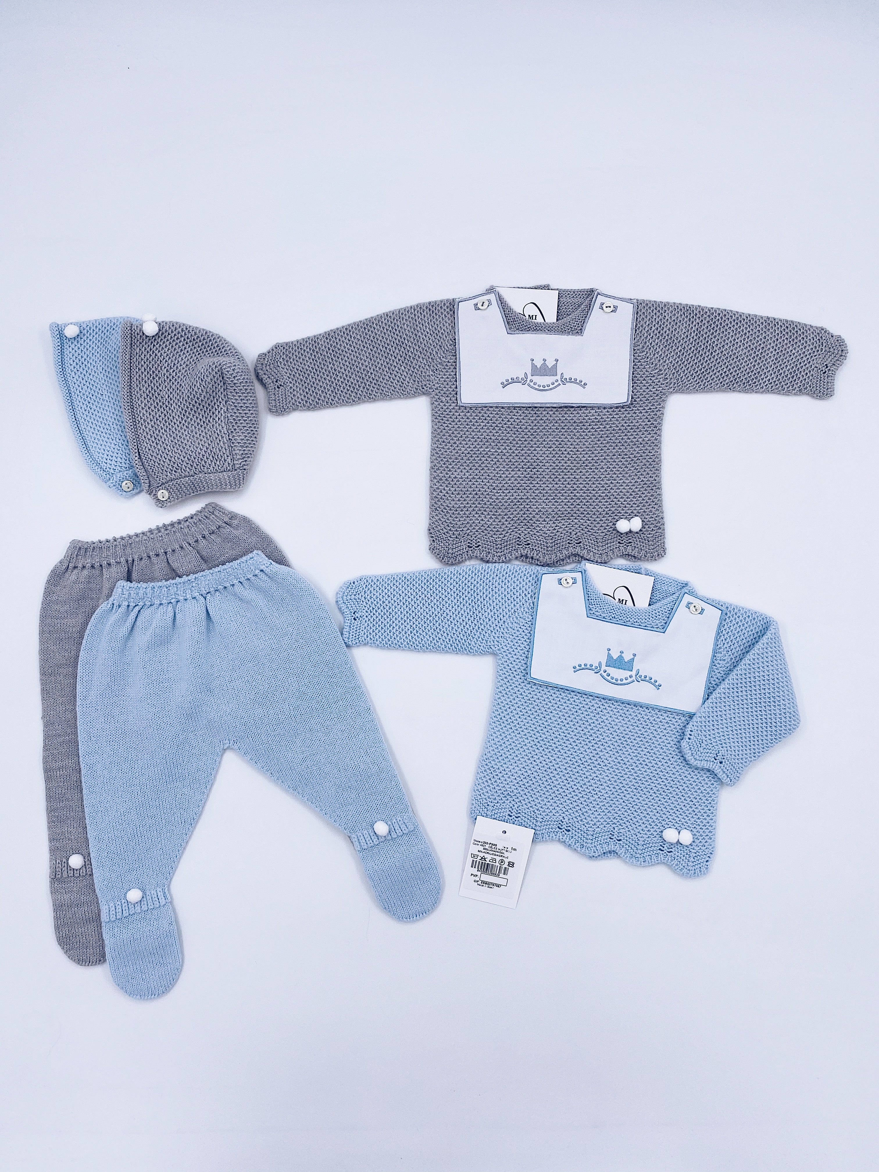 Beautiful Knitted 3 piece set with crown embroidery details.
