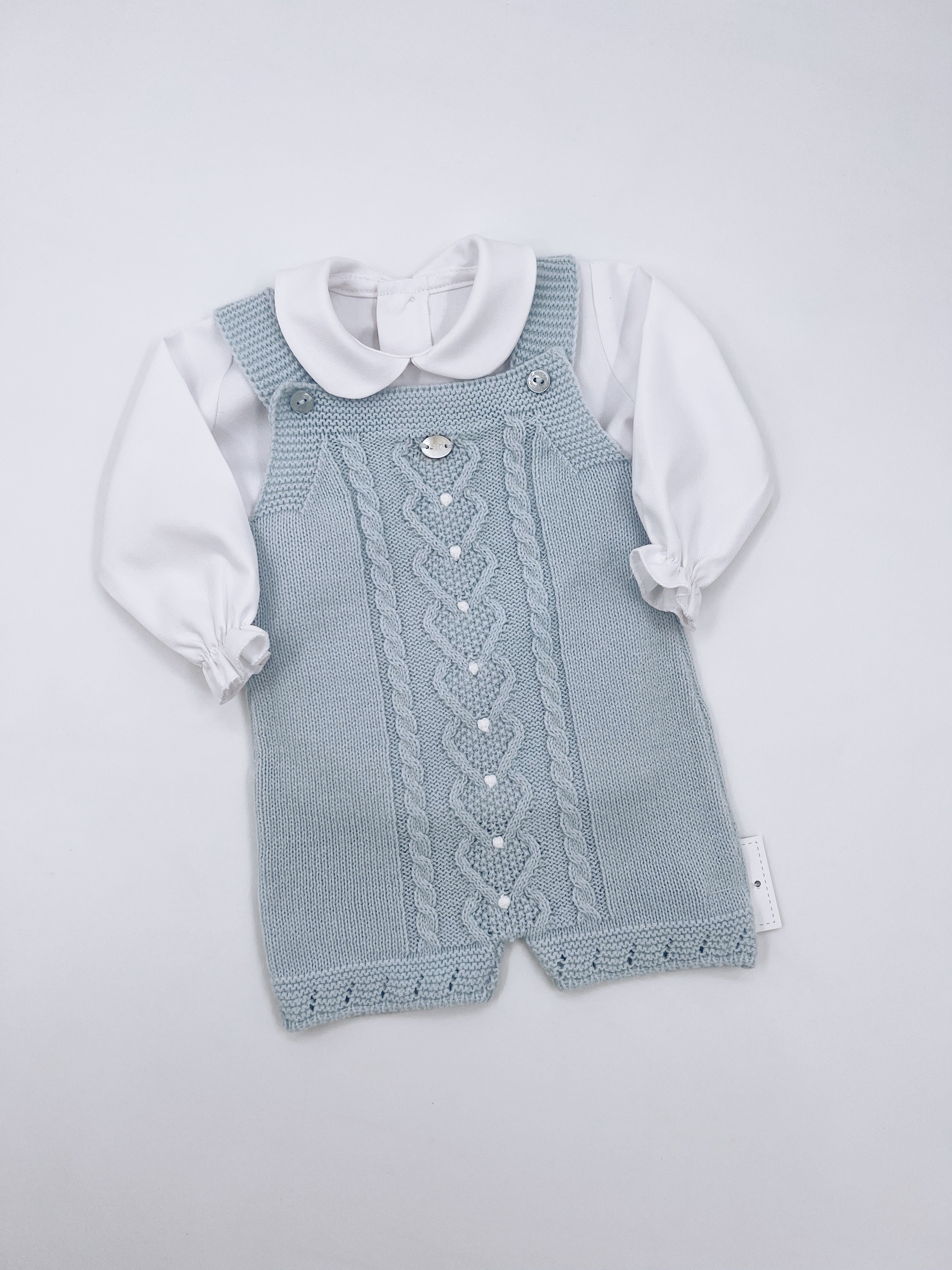 Beautiful Blue Knitted top and dungarees 2 piece set.