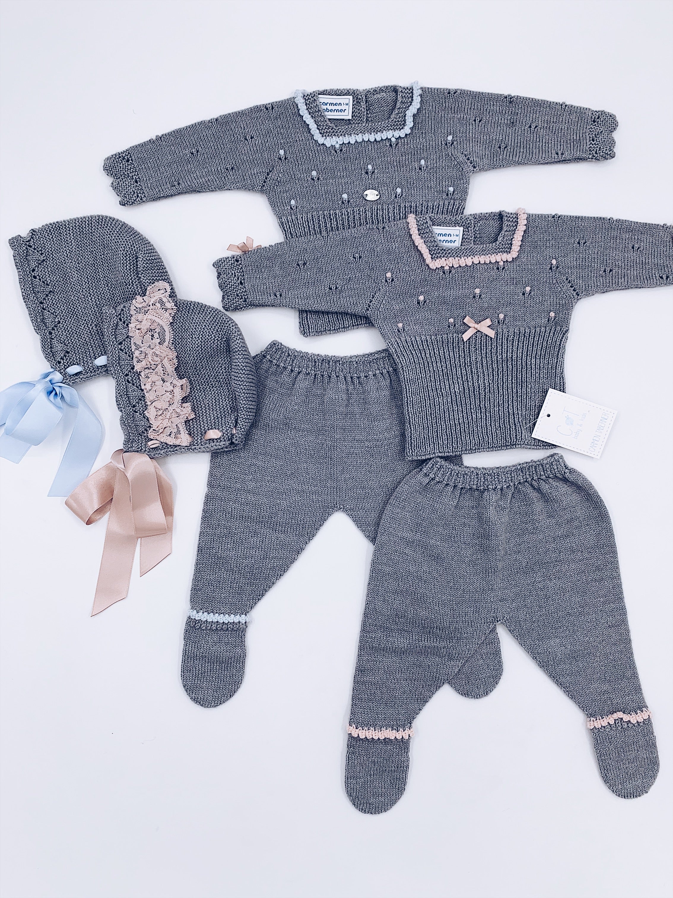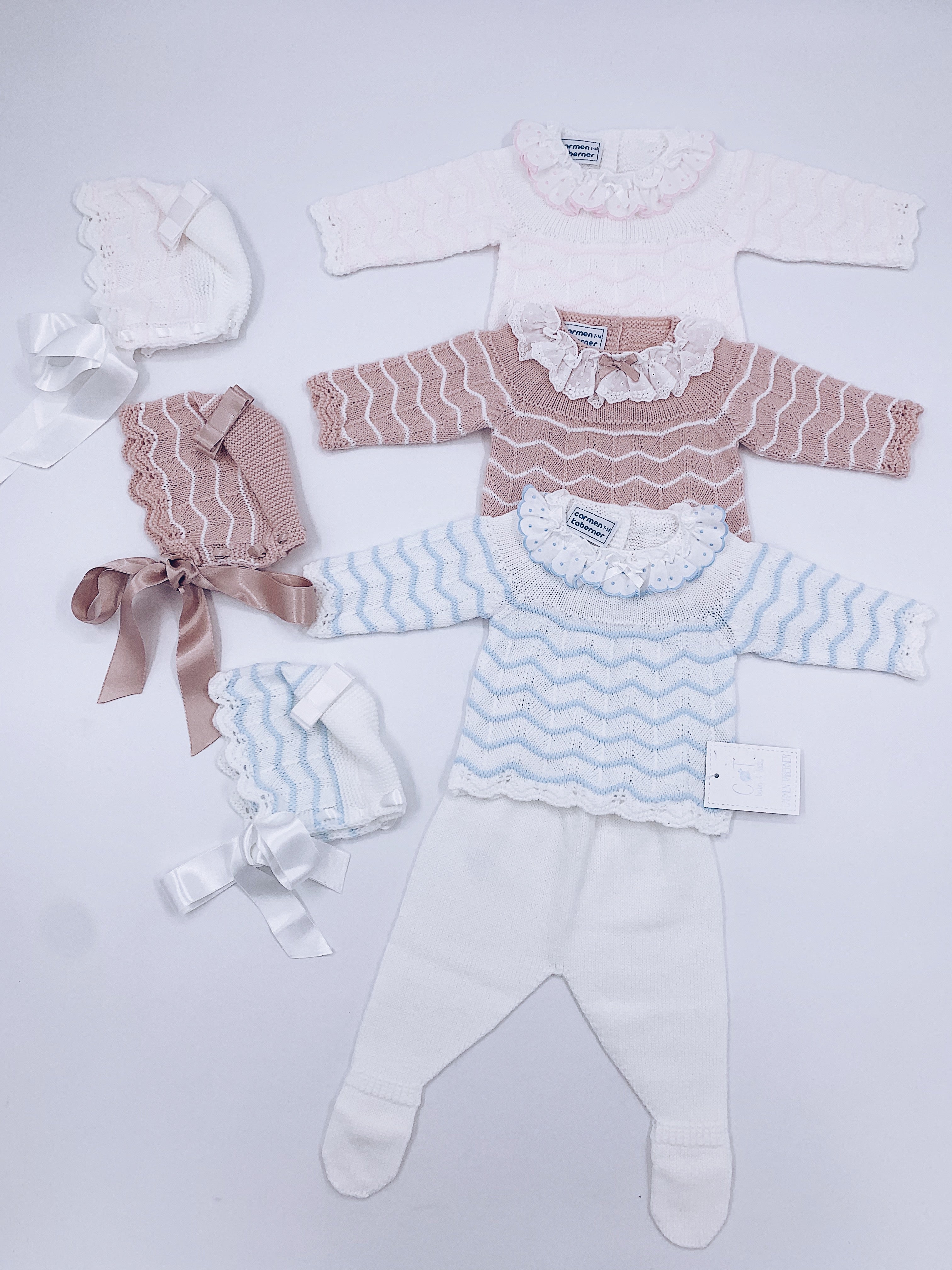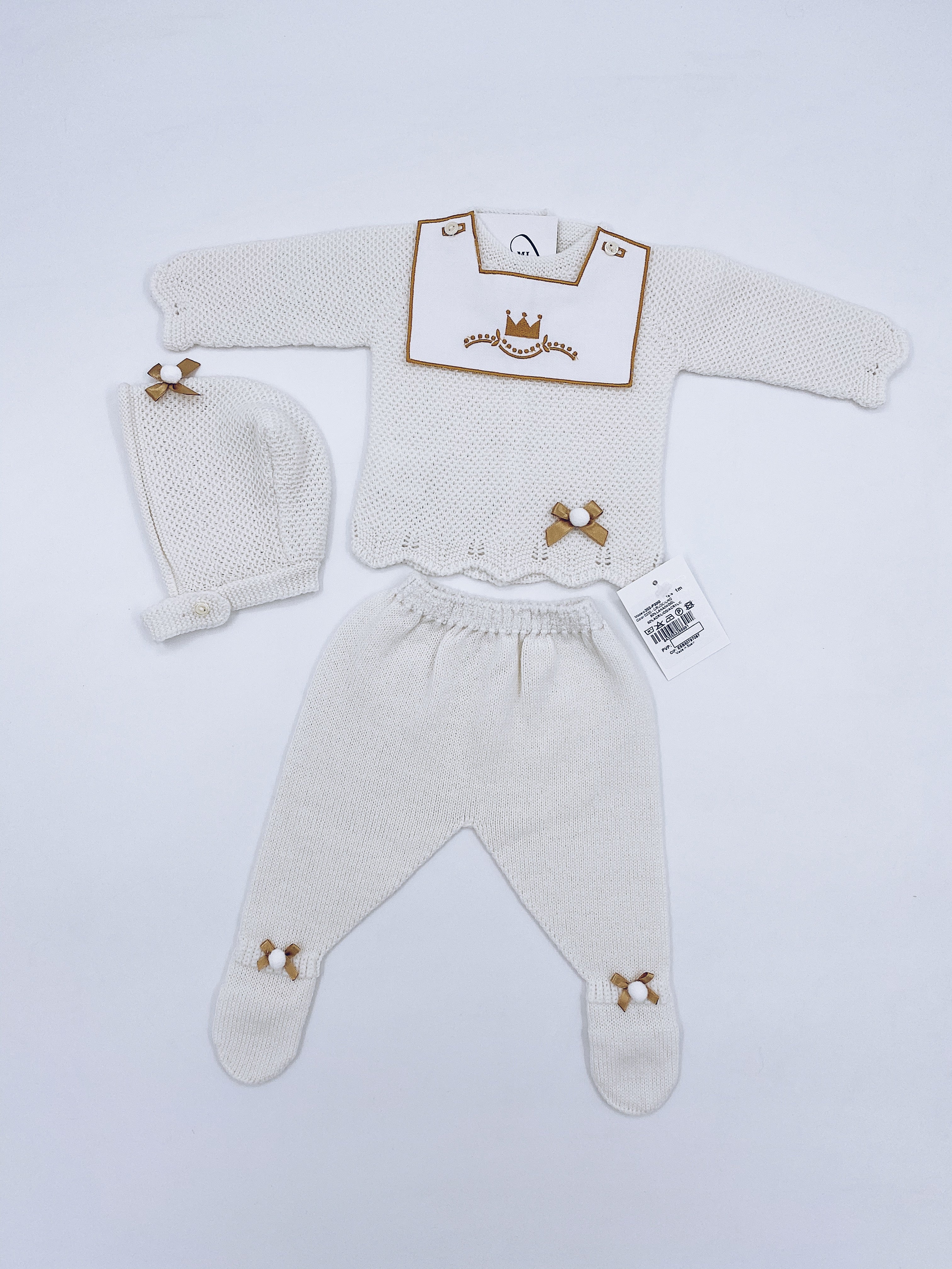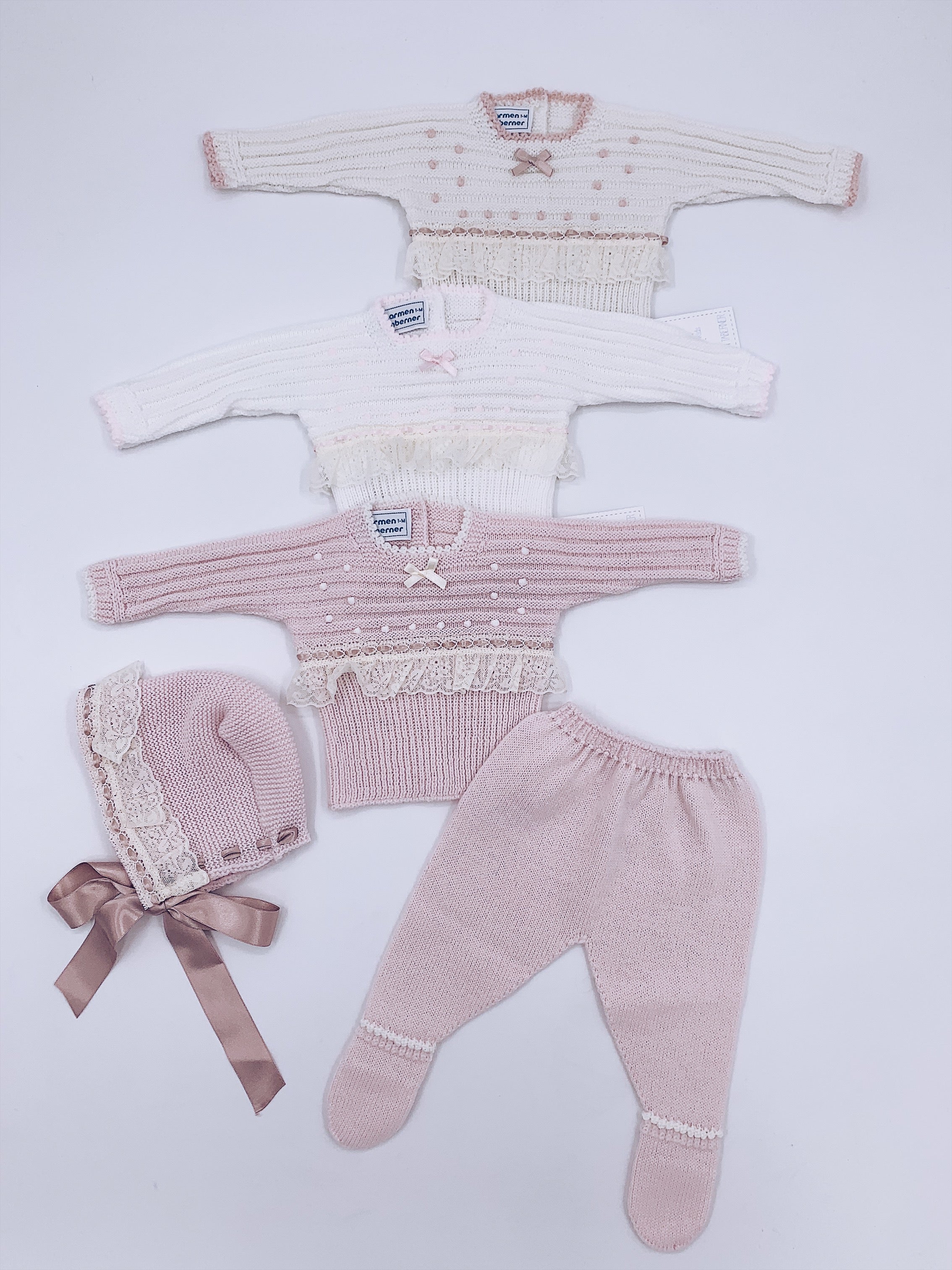 Carmen Taberner Baby Knit 3 piece set with lace/bow details