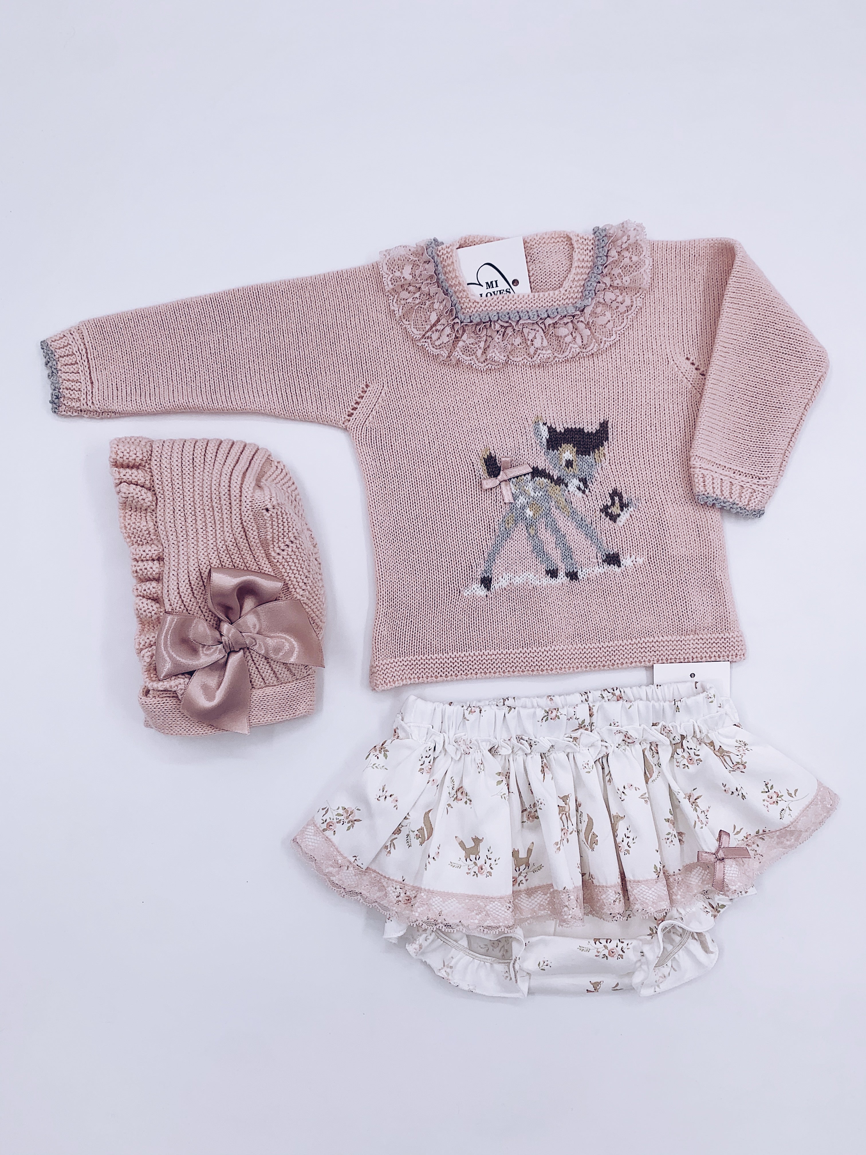 Bambi 3 piece set(Knitted top/bonnet/bloomers)