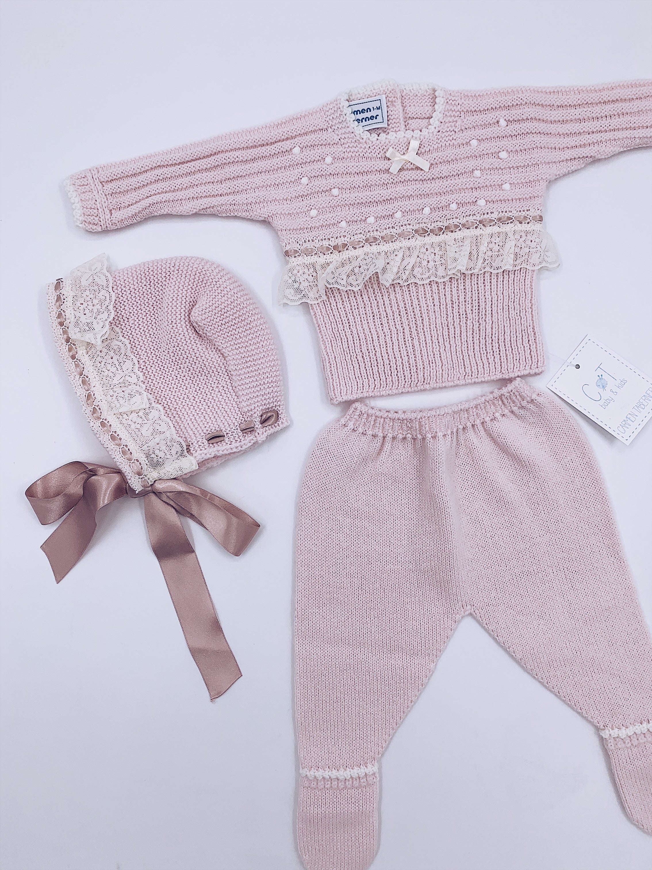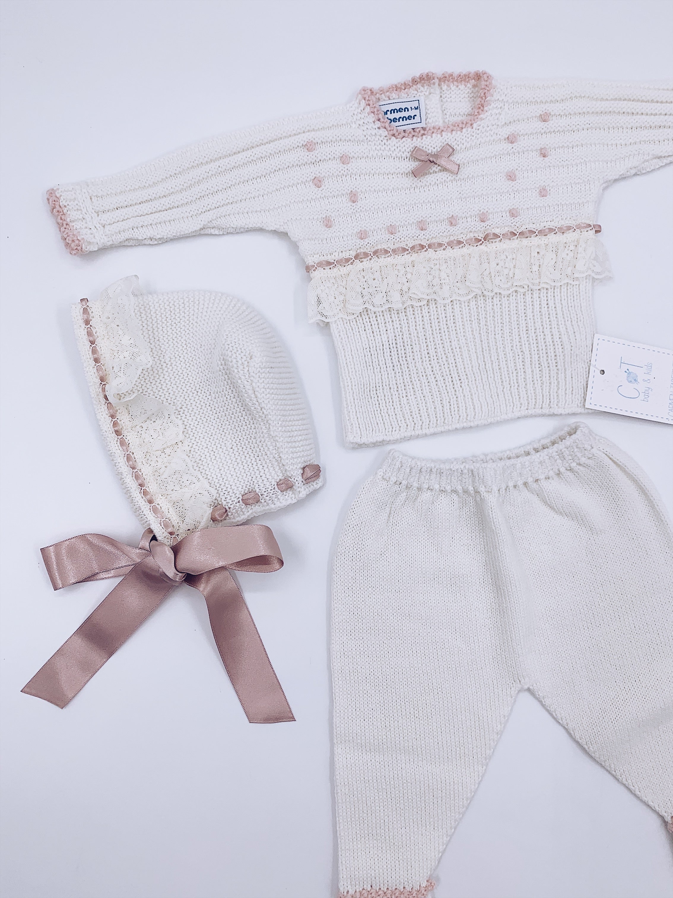 Beautiful Carmen Taberner Knitted 3 piece set with Lace details