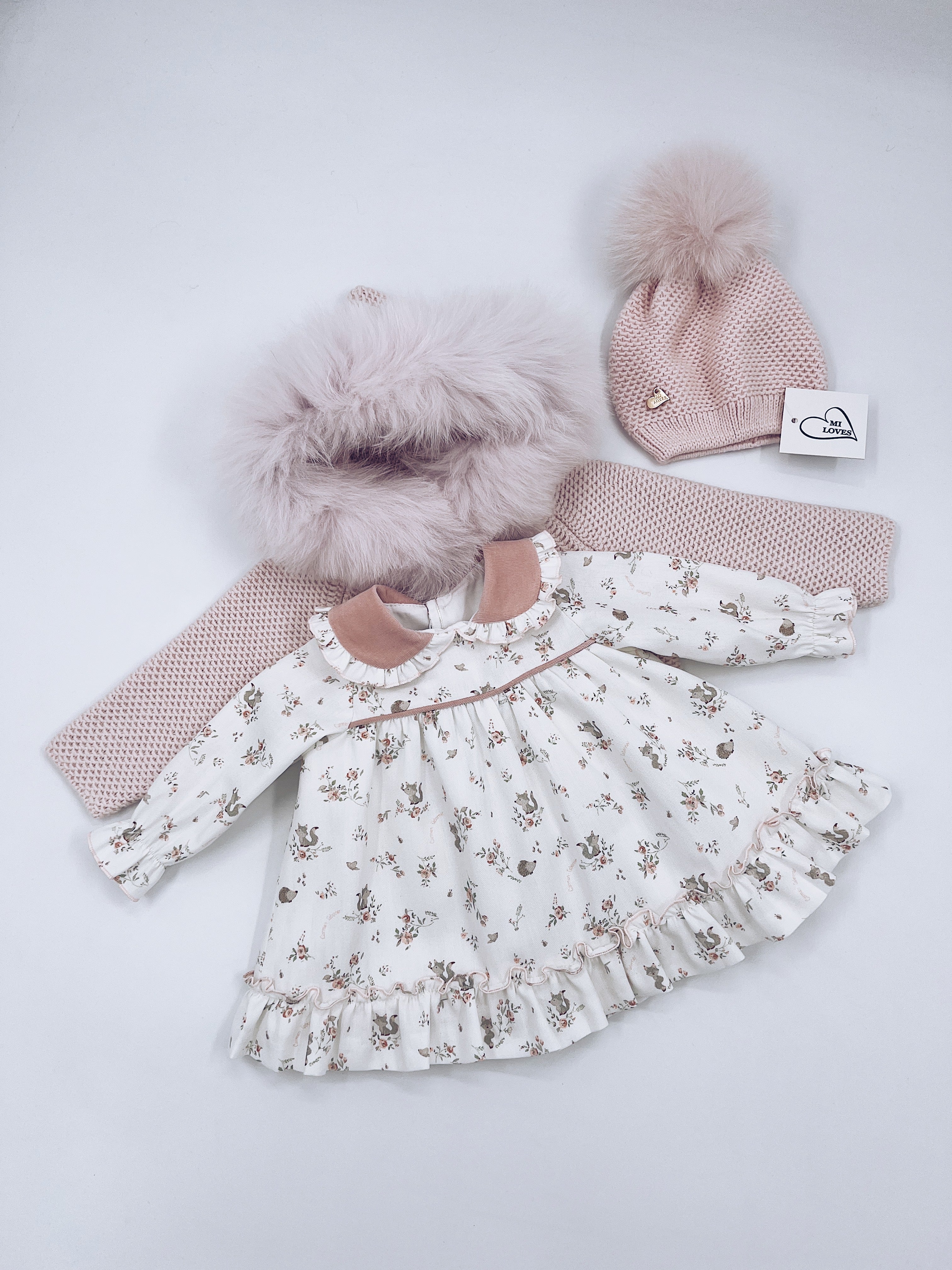 Knitted Cardigan and matching pompom hat(Sold Separately)also available on the website.