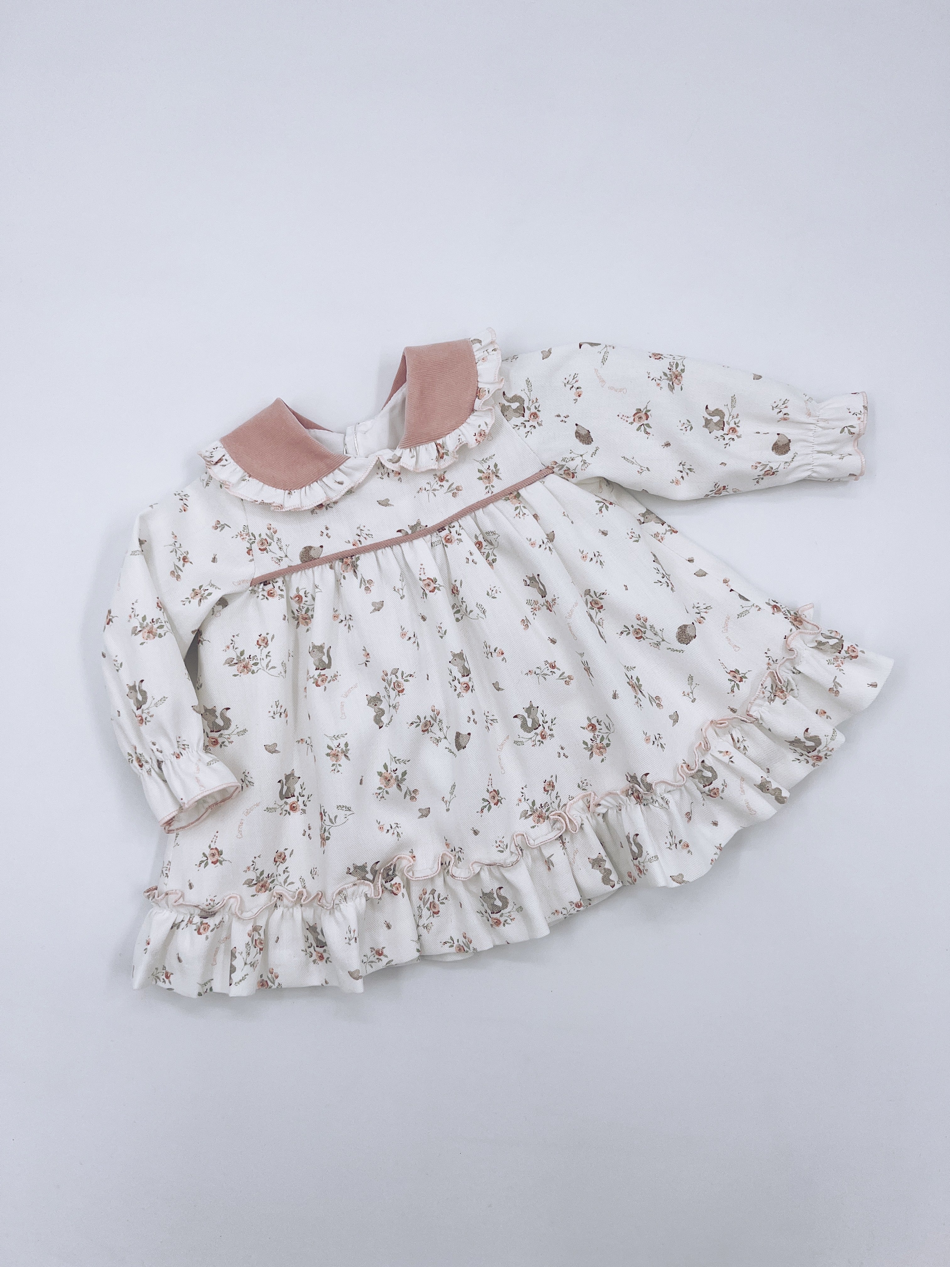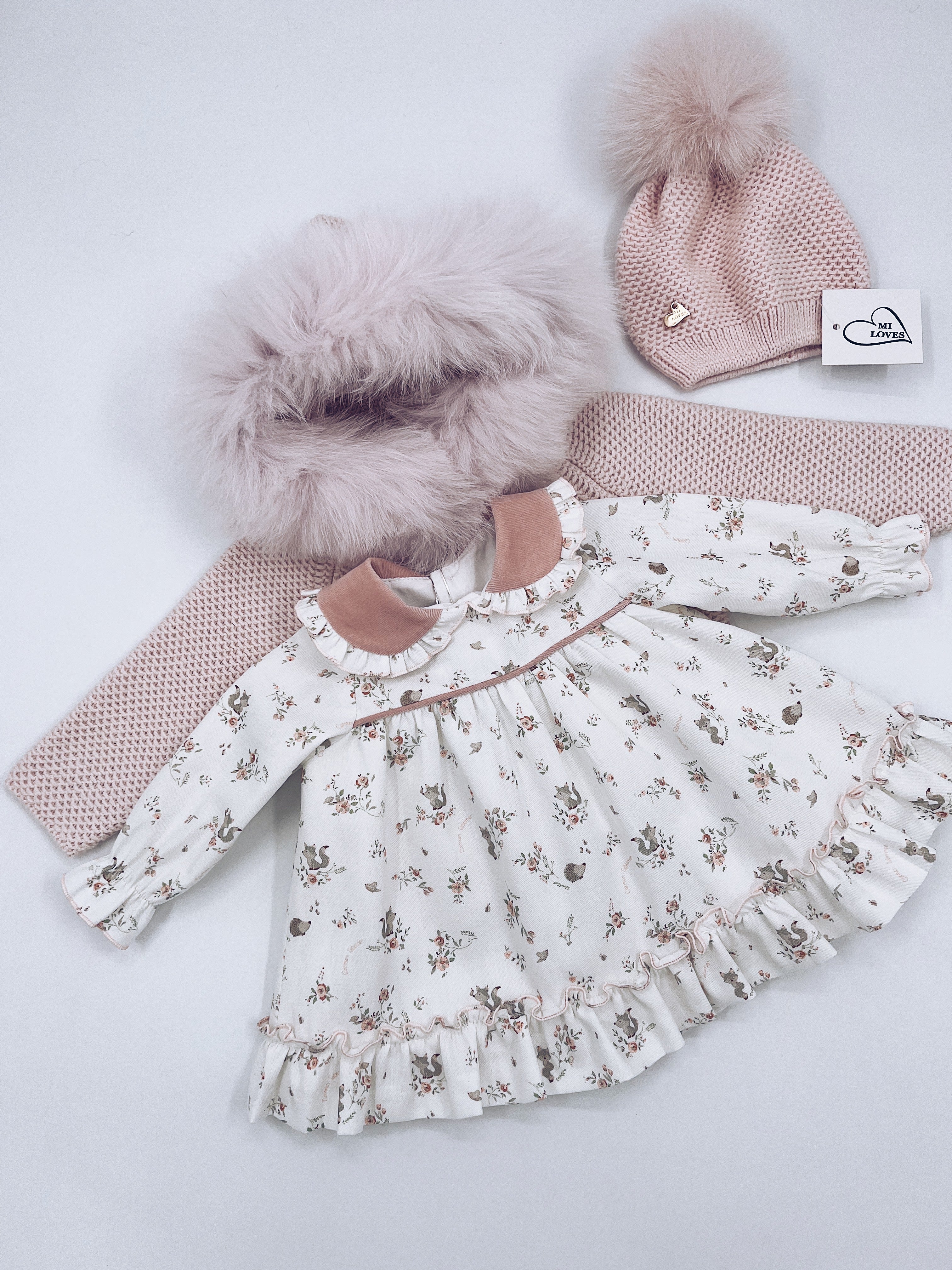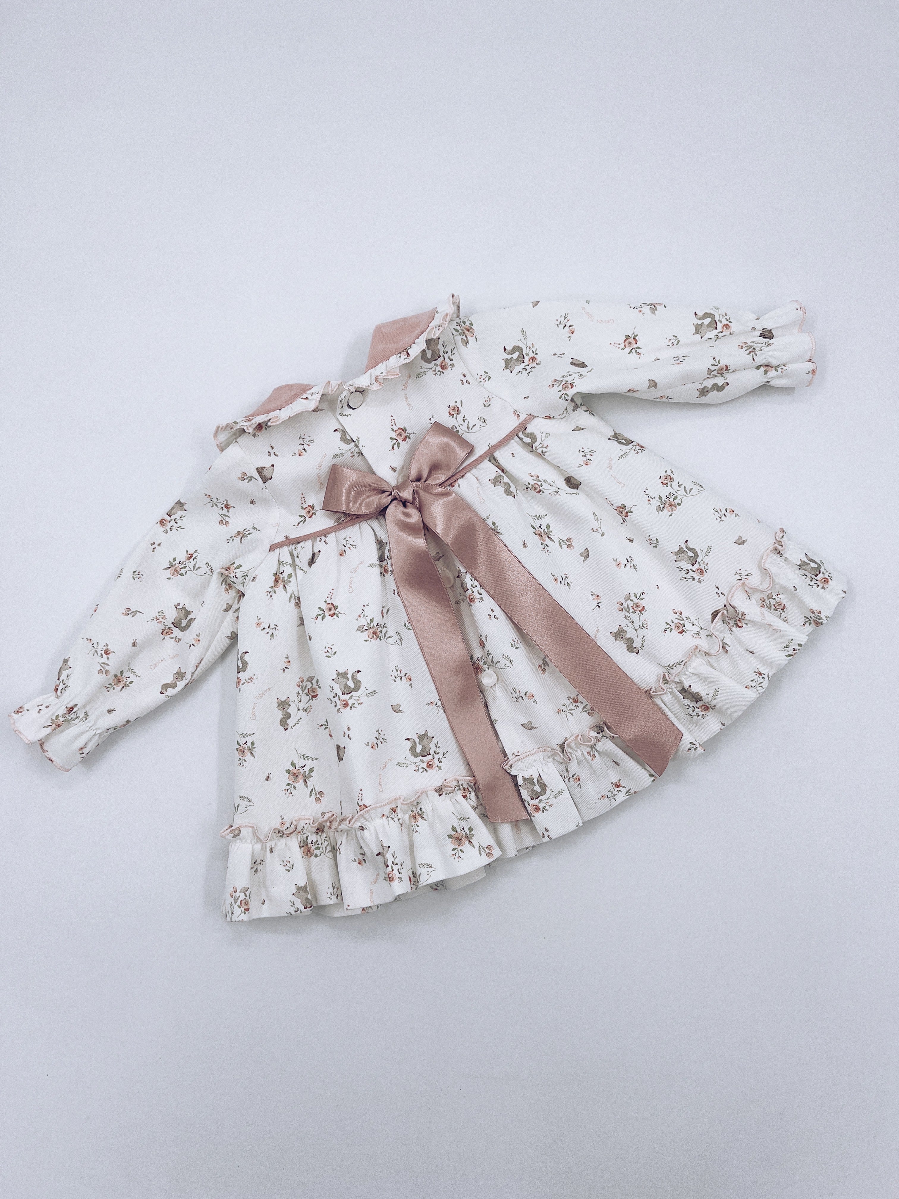 Beautiful floral print dress with Dusty Pink Bow details on the back.