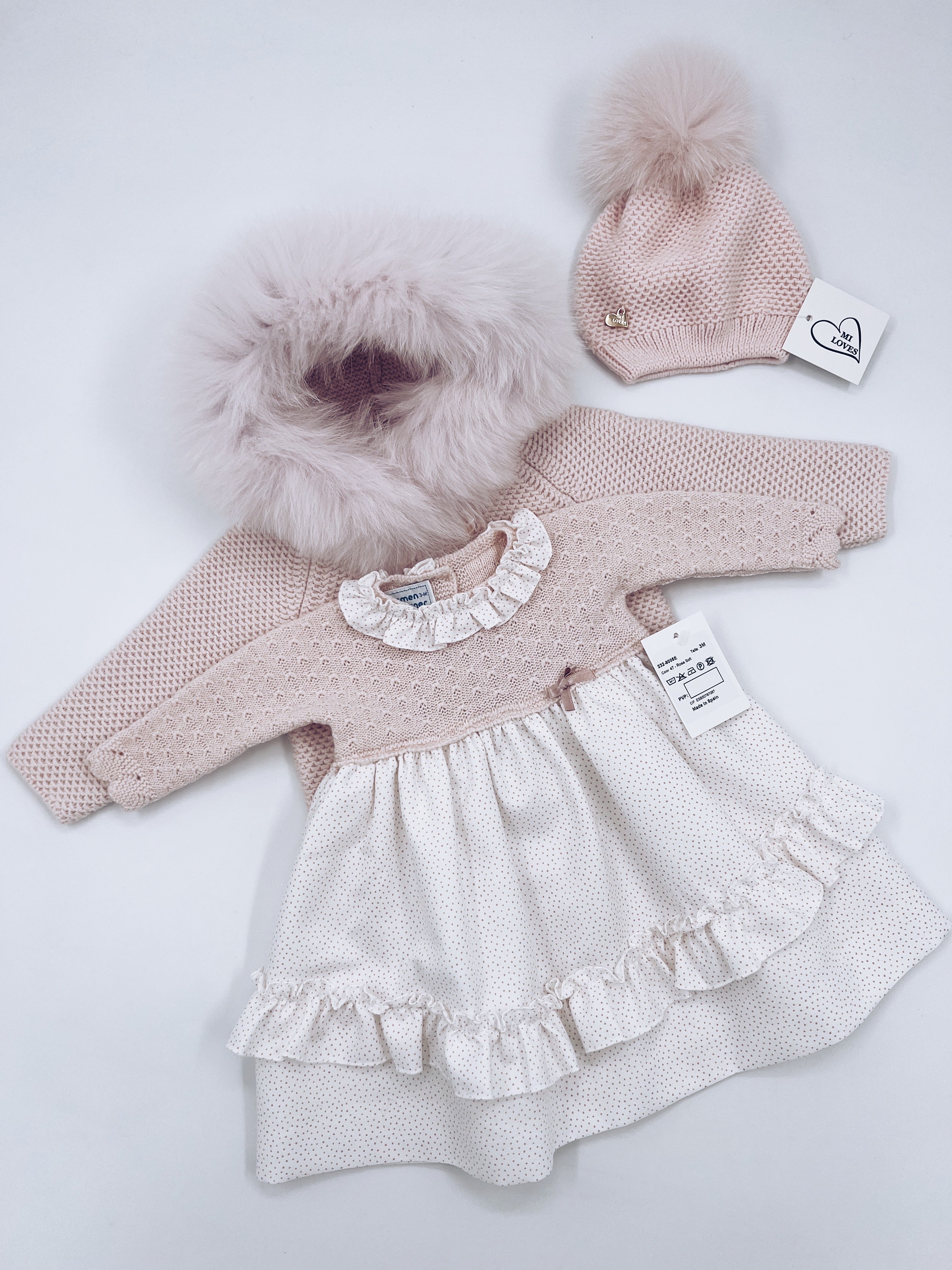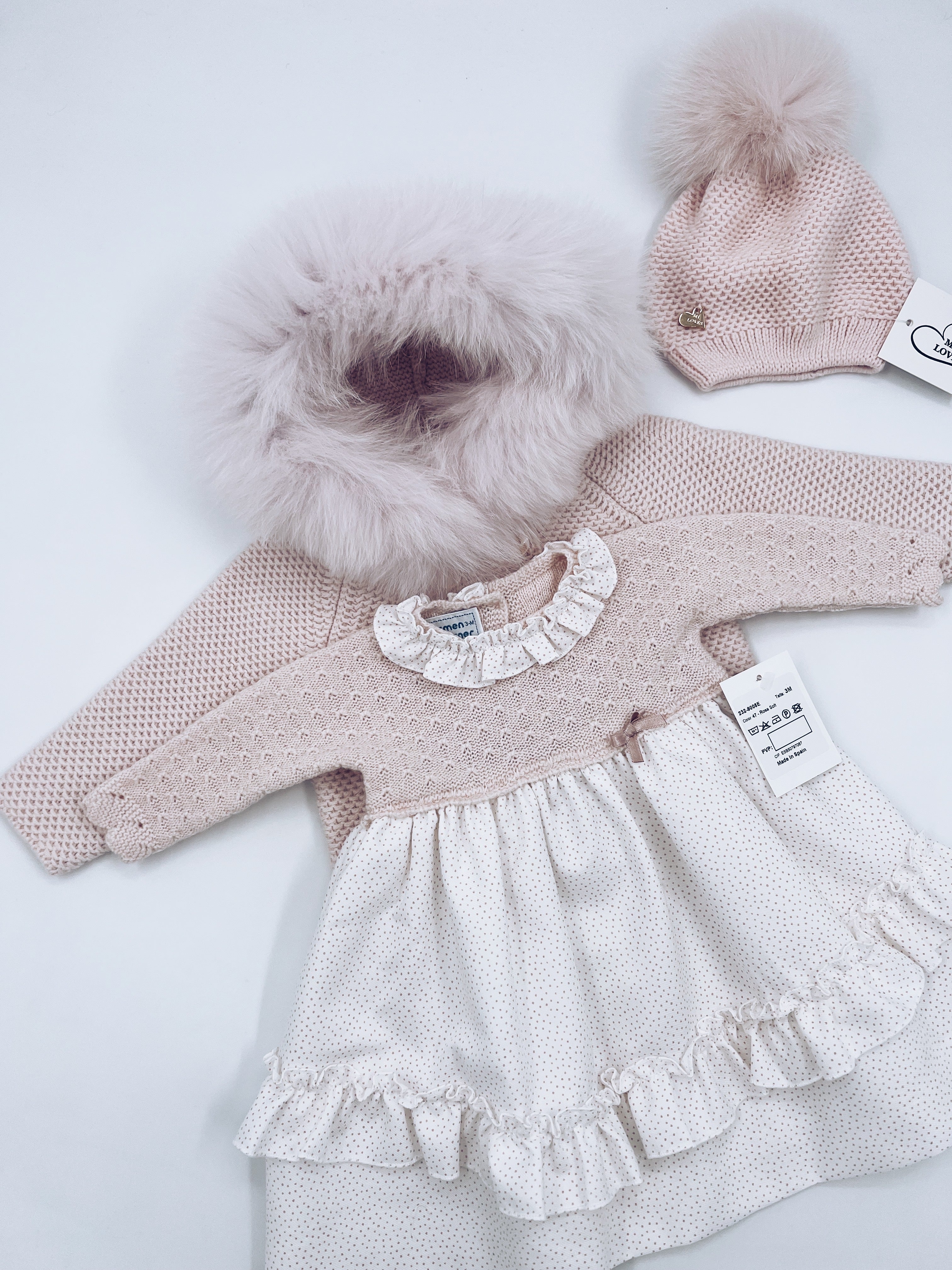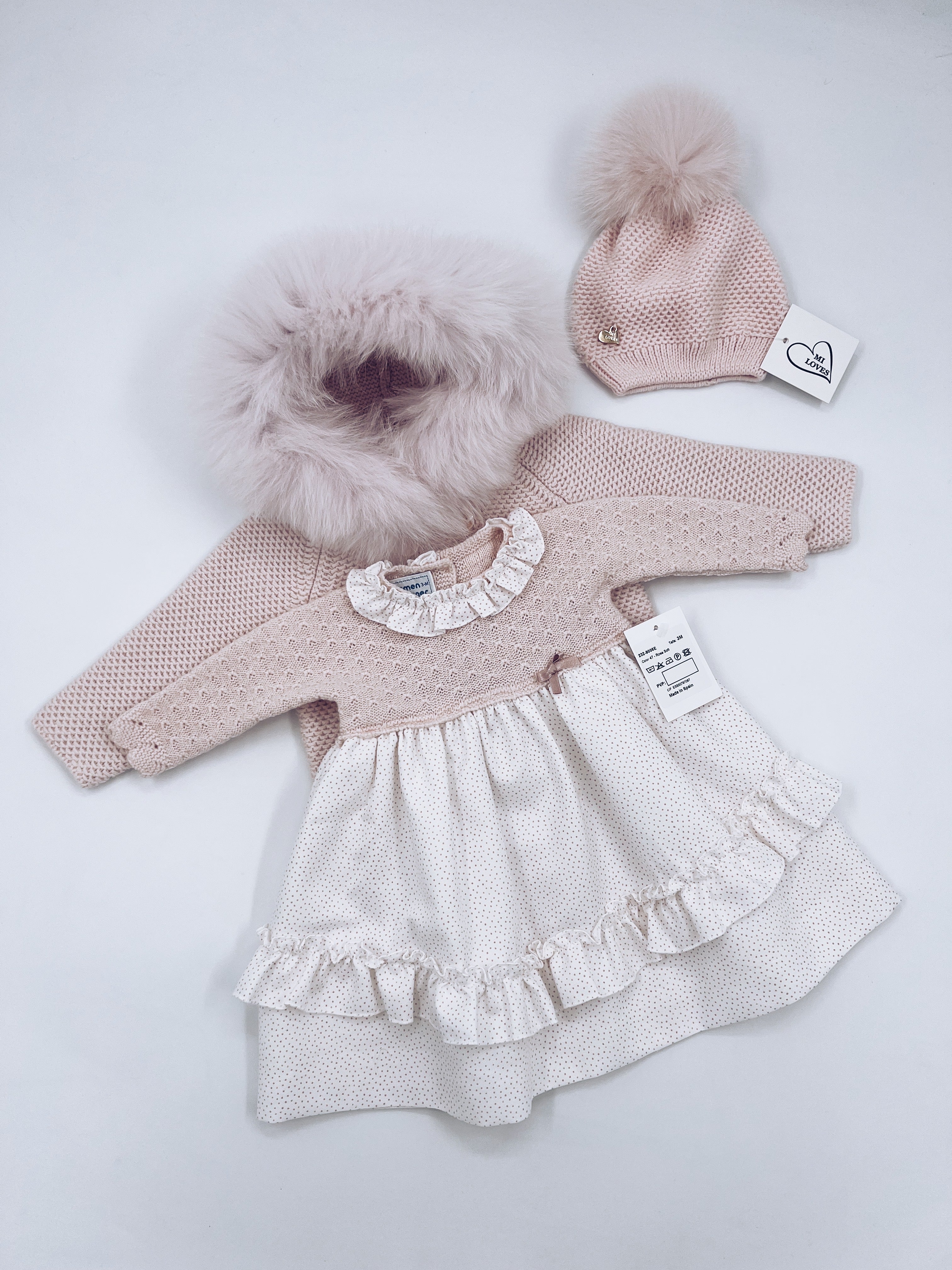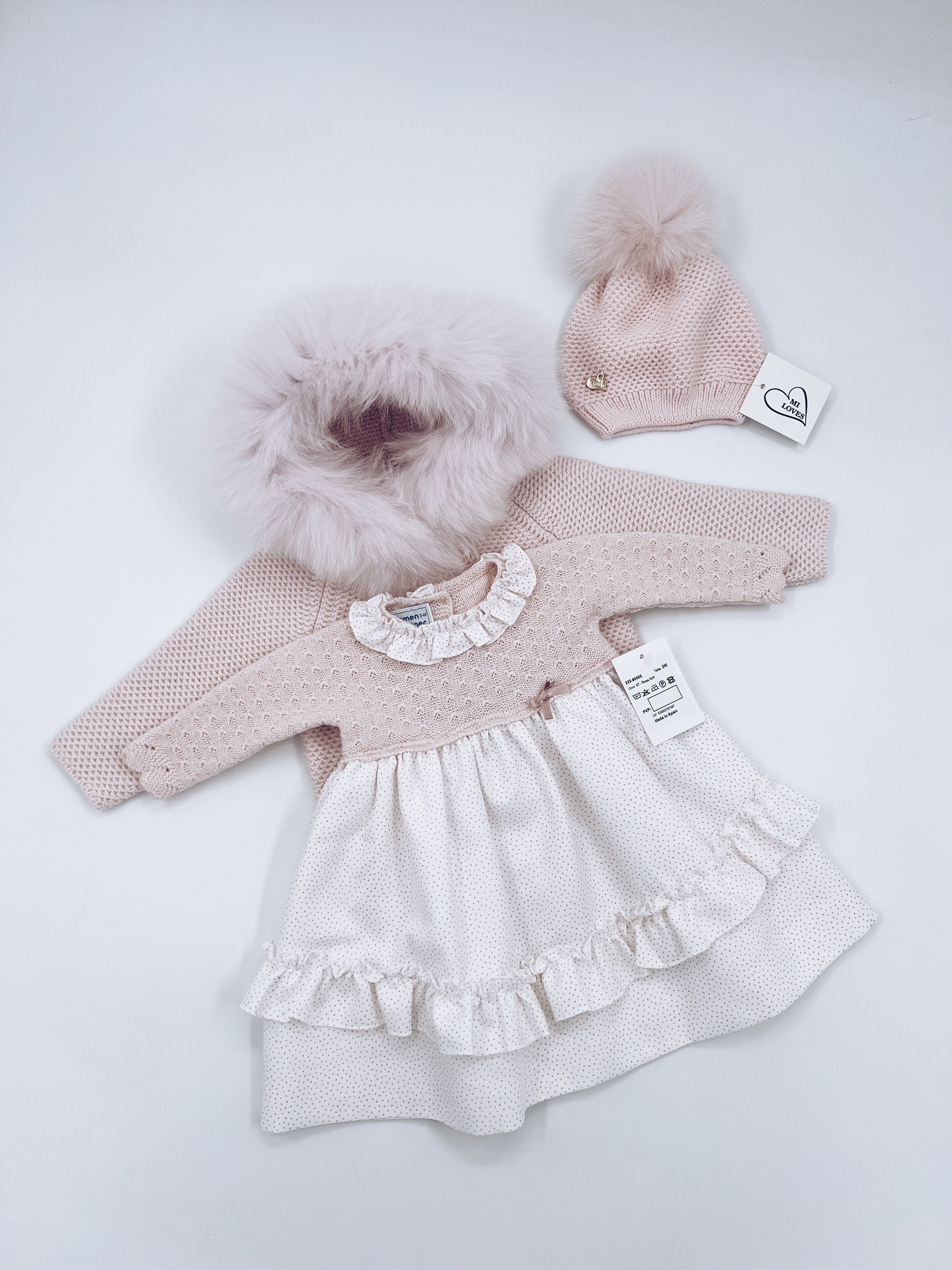 Knitted Cardigan and matching pompom hat(Sold Separately)also available on the website.