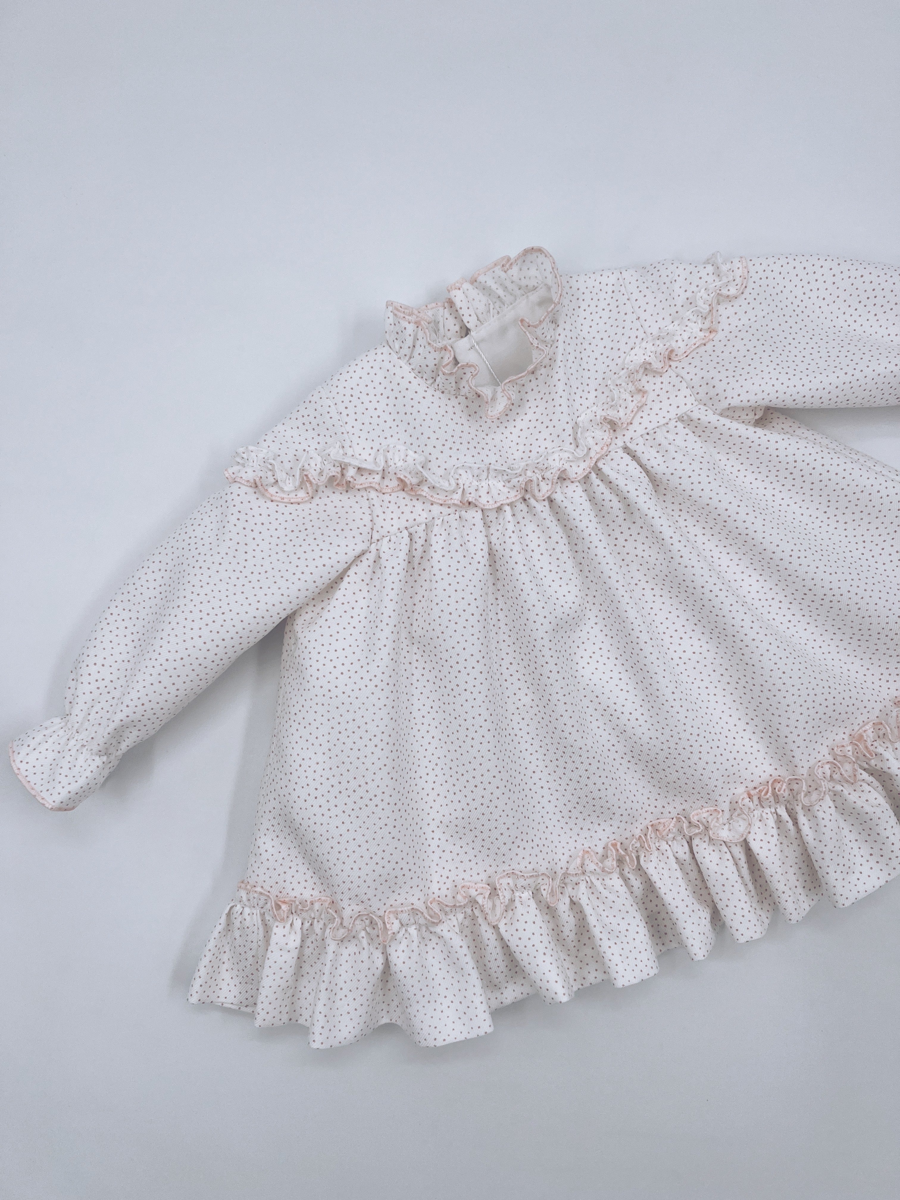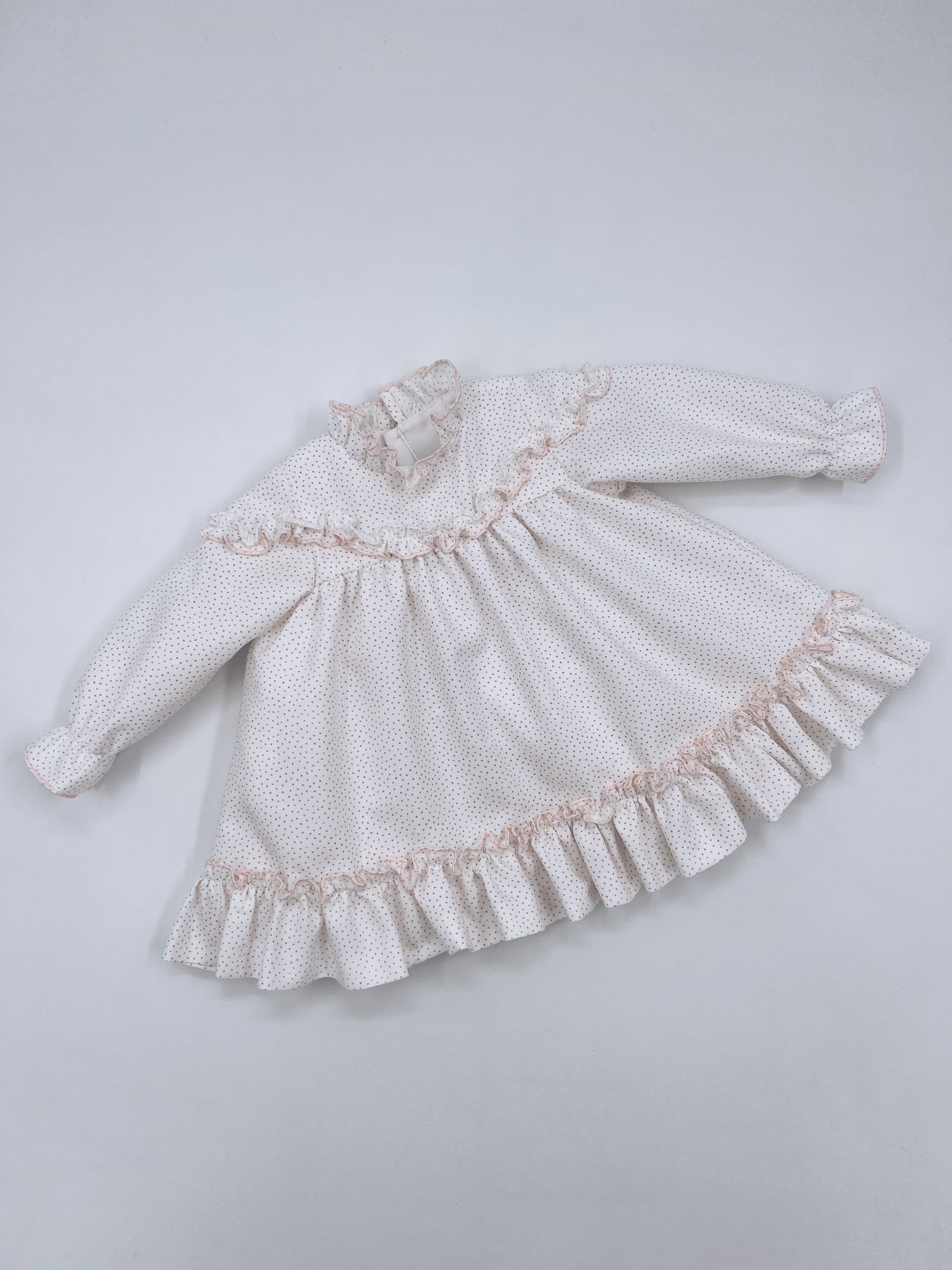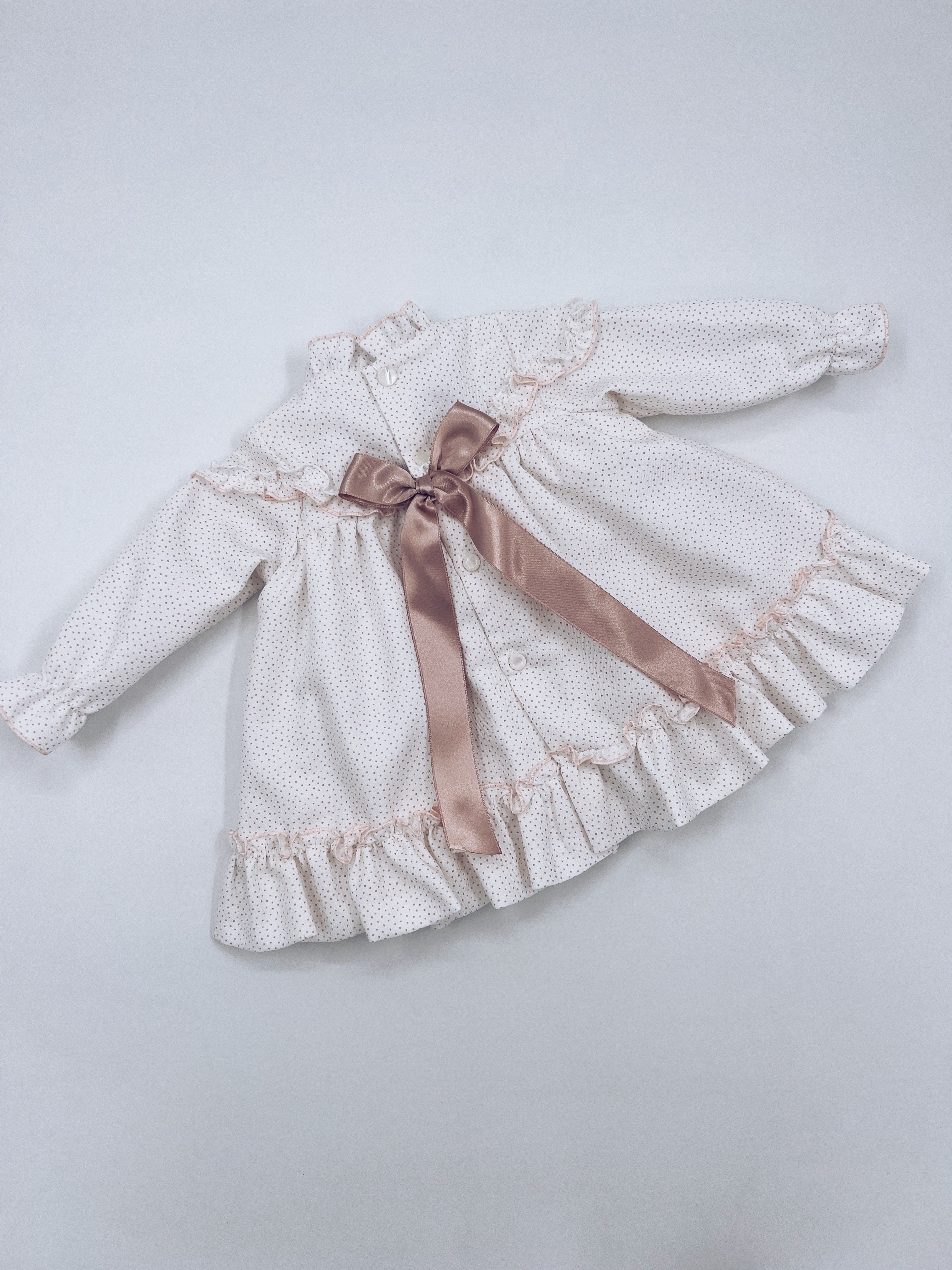 Beautiful Pink Polka dot print dress with Dusty Pink Bow details on the back.