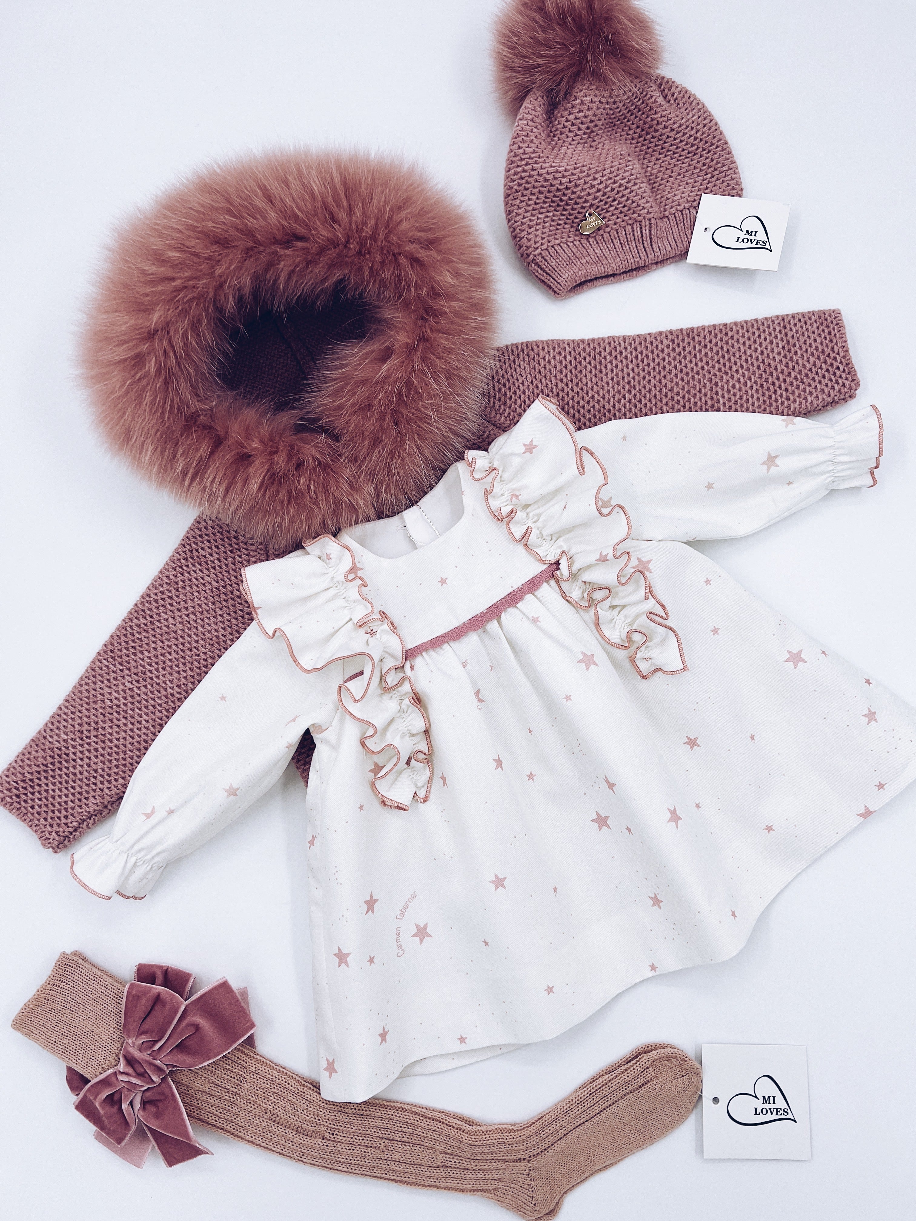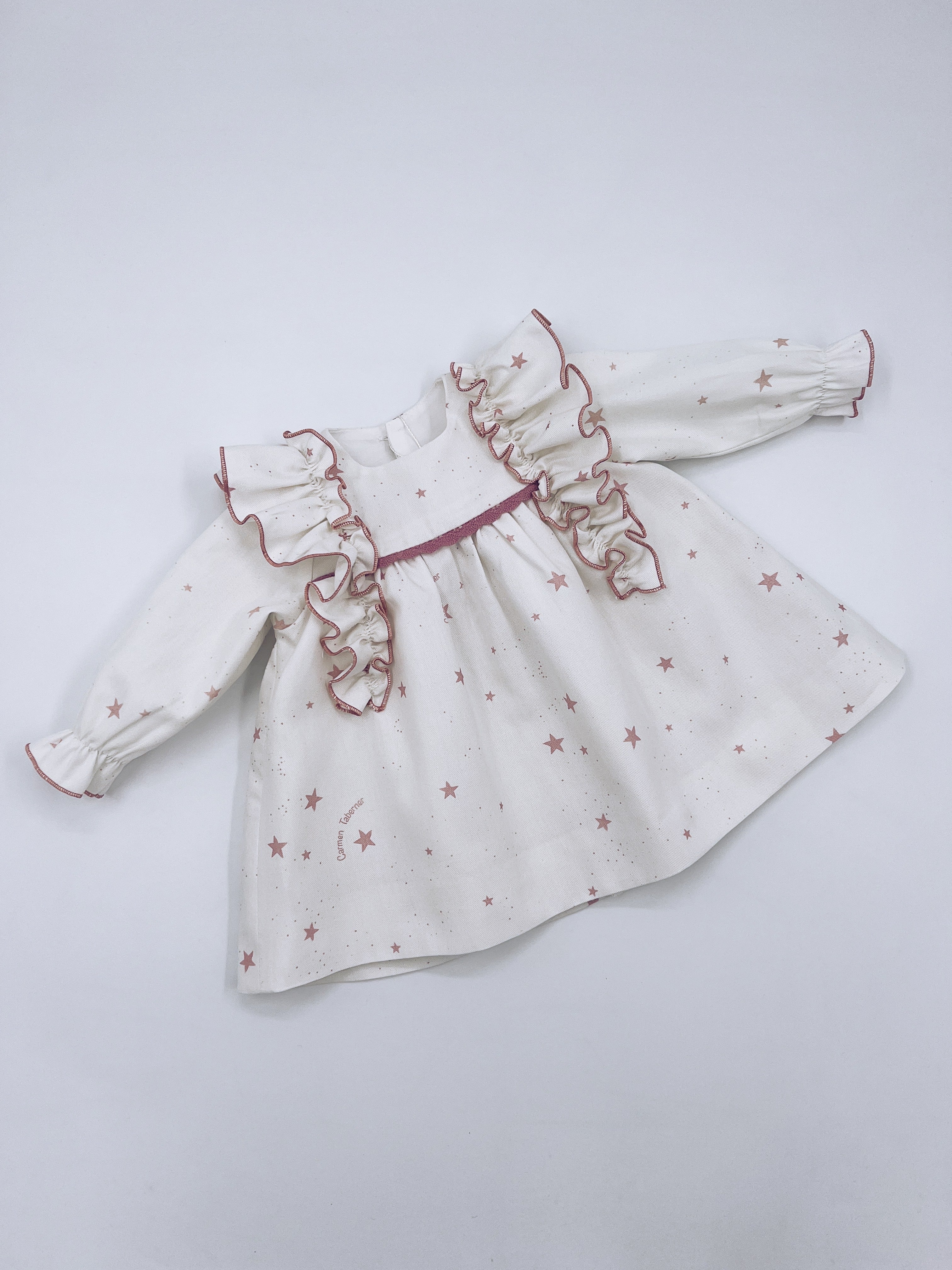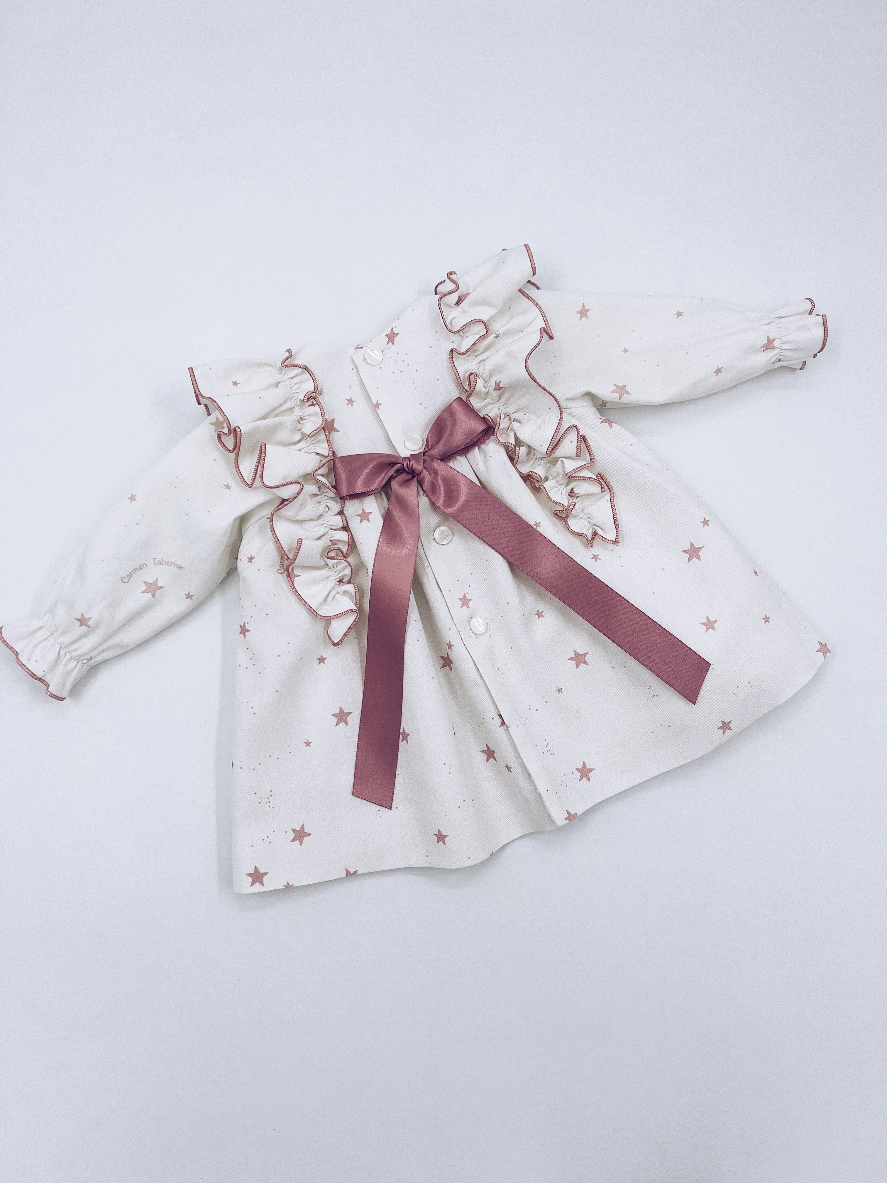 Beautiful Stars print dress with Dusty Pink Bow details on the back.