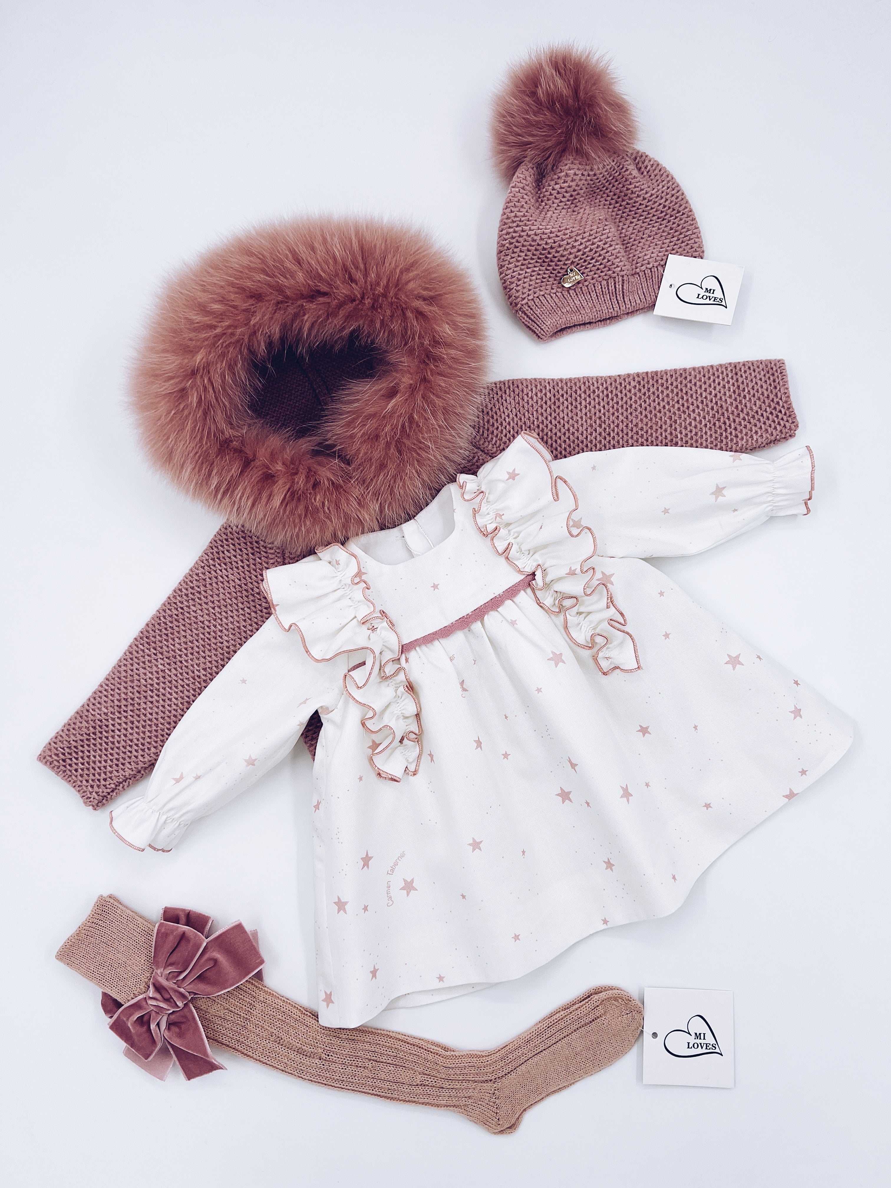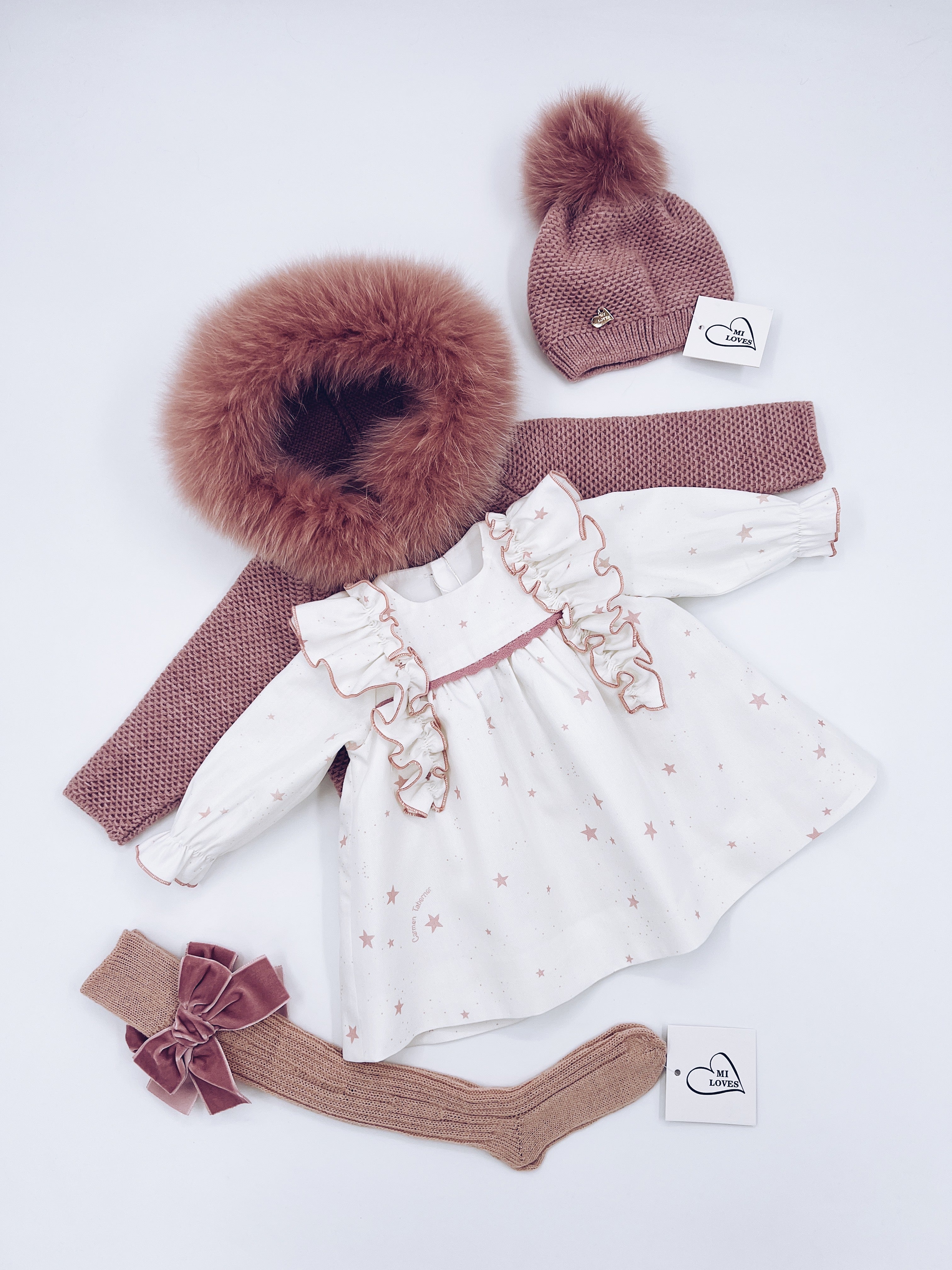 Knitted Cardigan,Knitted socks and matching pompom hat(Sold Separately)also available on the website.