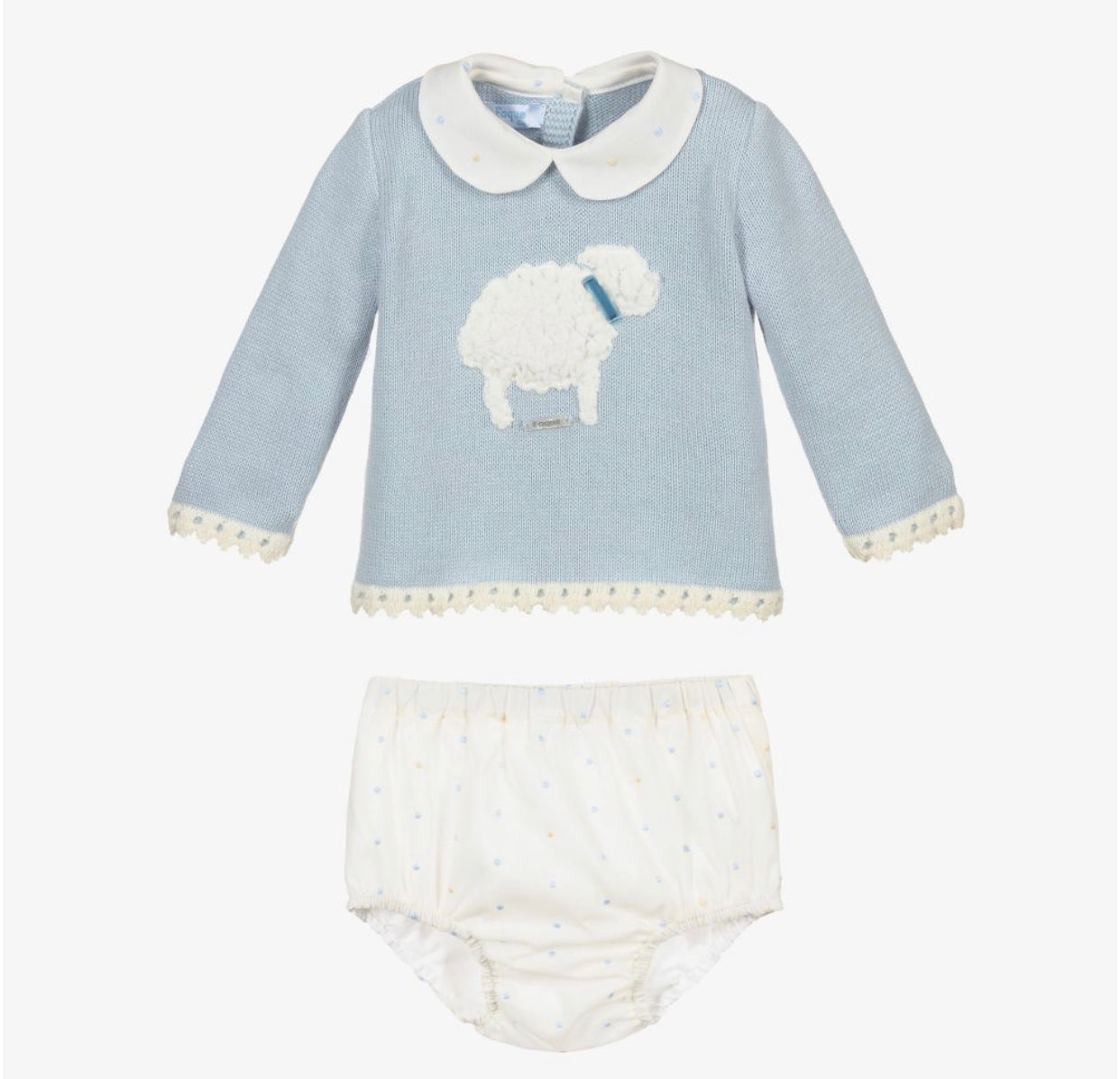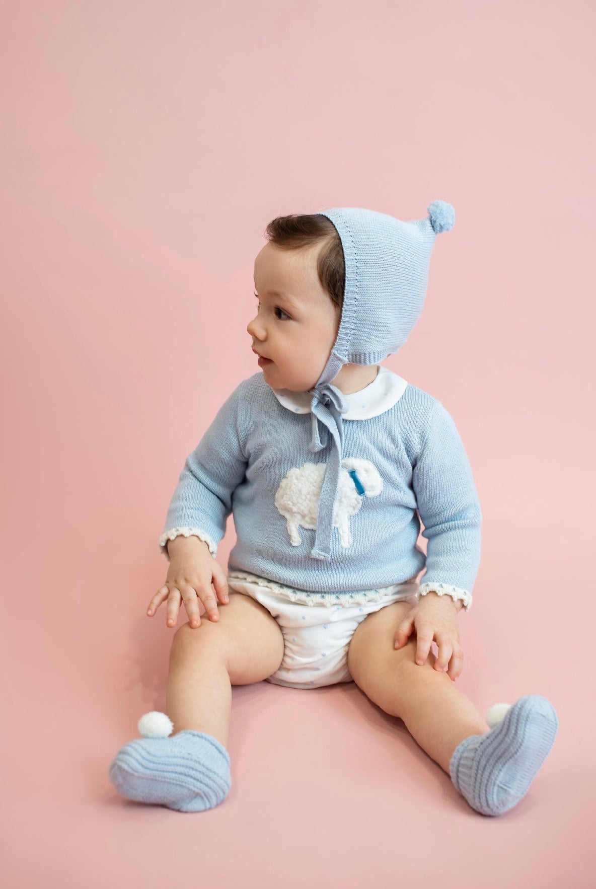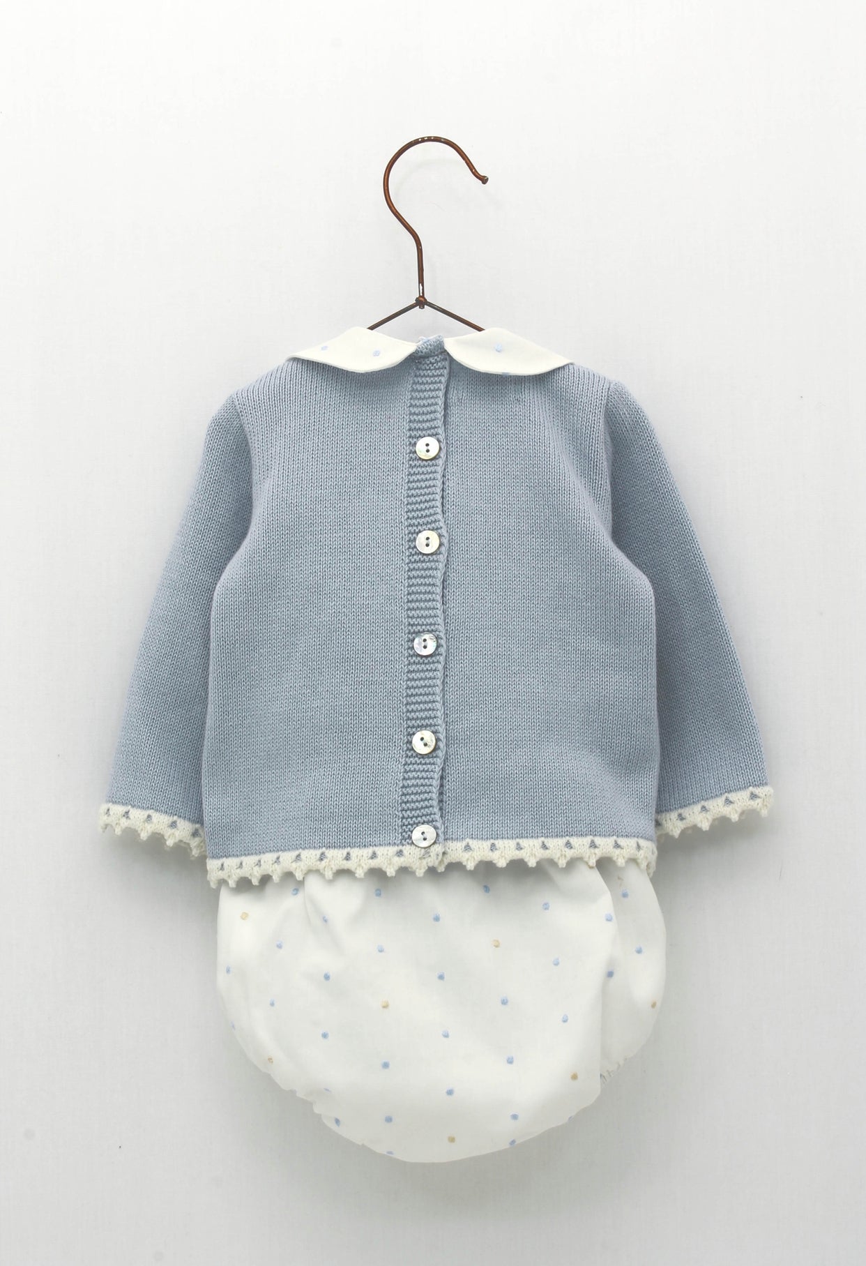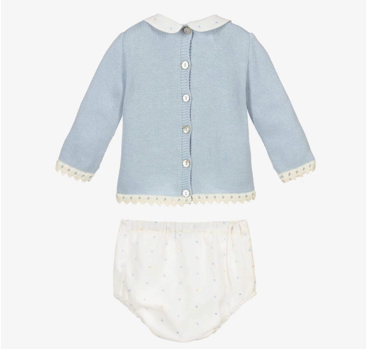 Beautiful Pale Blue sweater and bloomers fir little boys and girls.