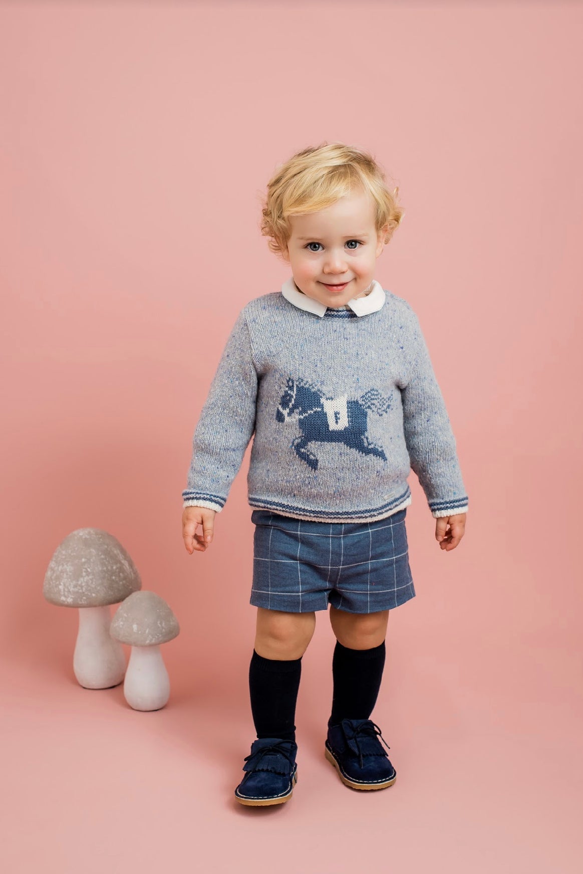 Beautiful Foque boys 3 piece shorts set with horse design on the front .