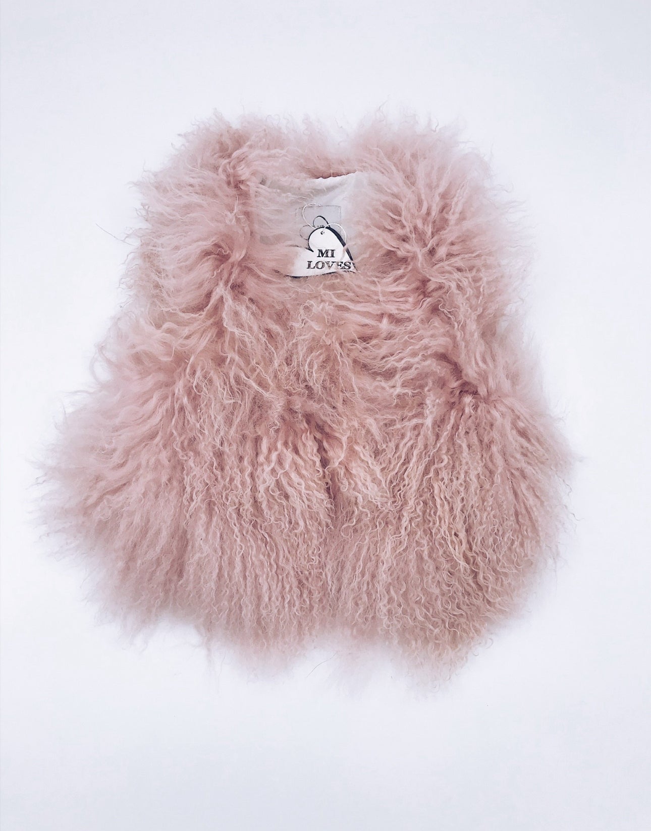 MILOVES Signature Luxurious Mongolian lamb fur kids vest in Dusty pink