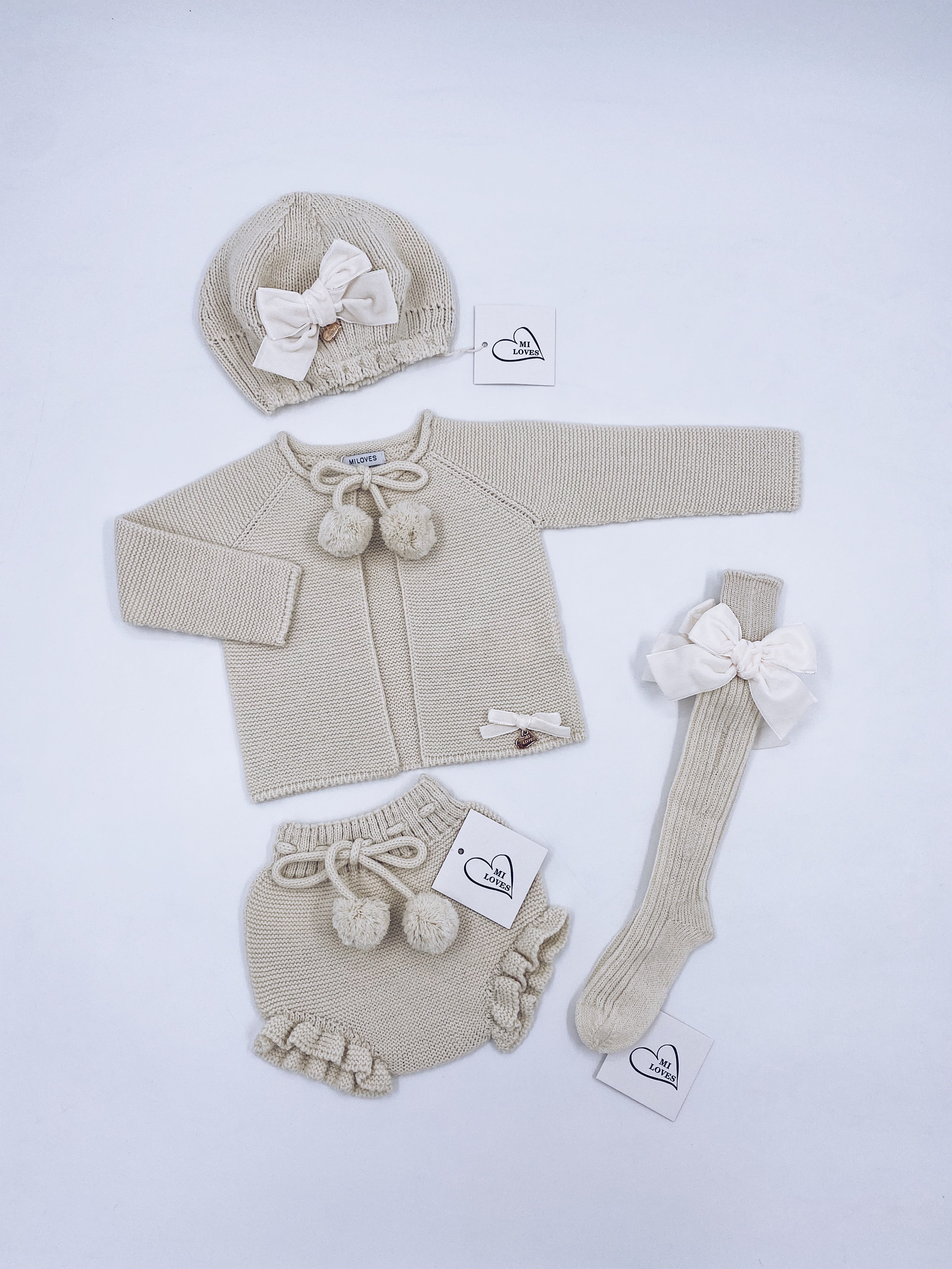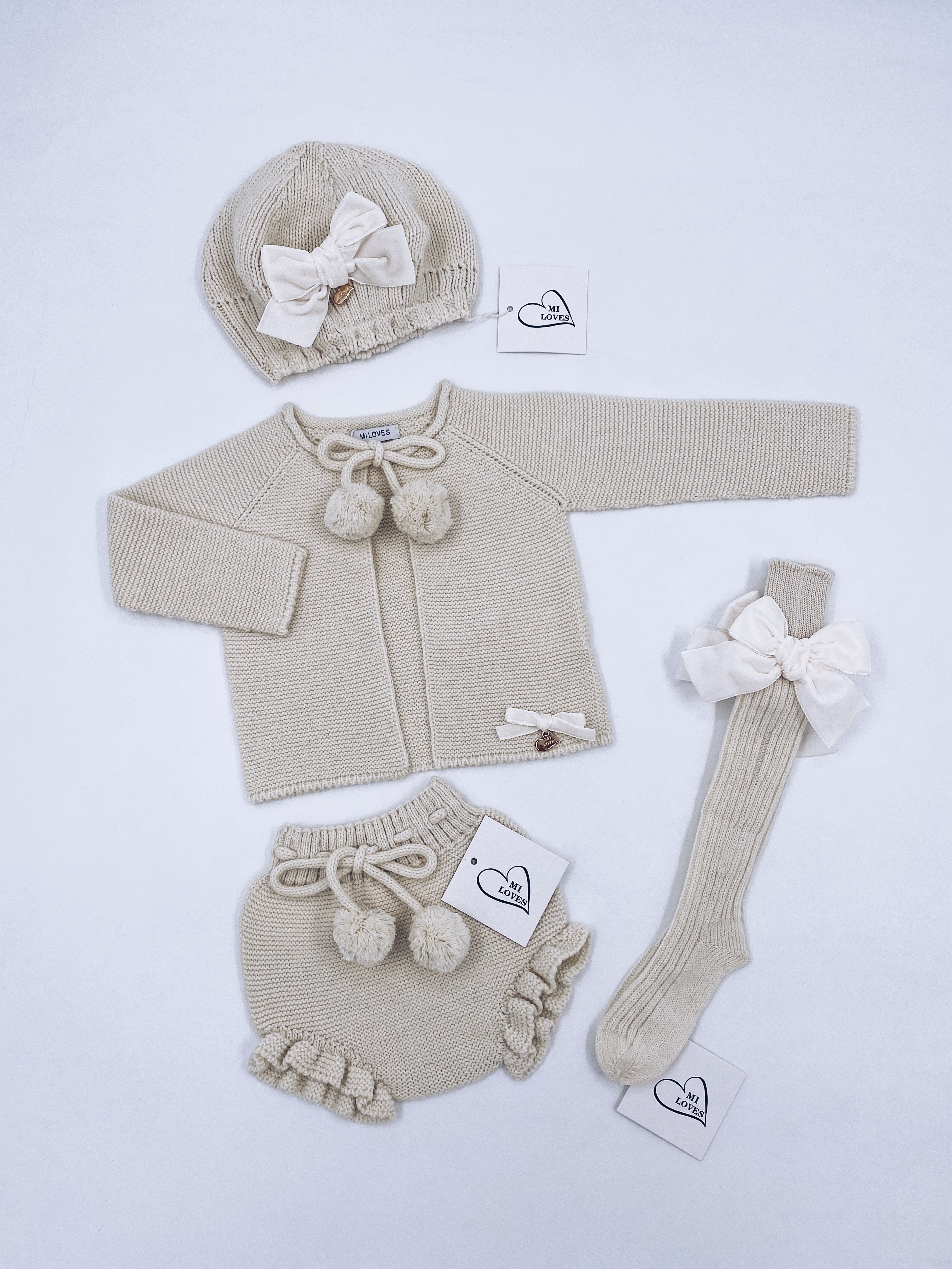 MI LOVES SIGNATURE Knitted Cardigan/short 2 piece set in Cream.